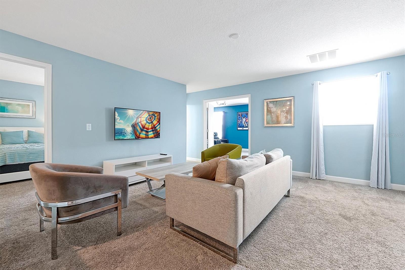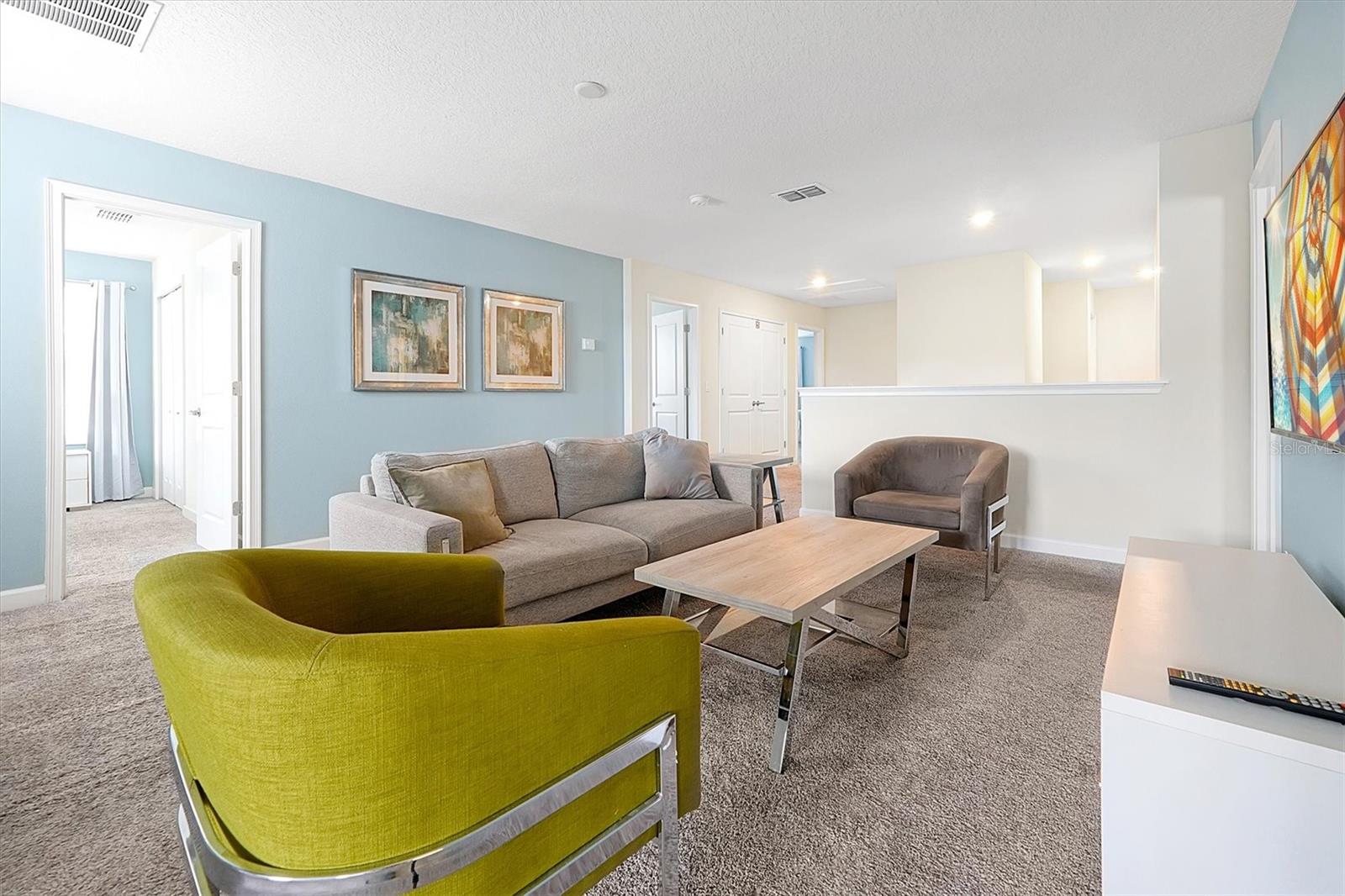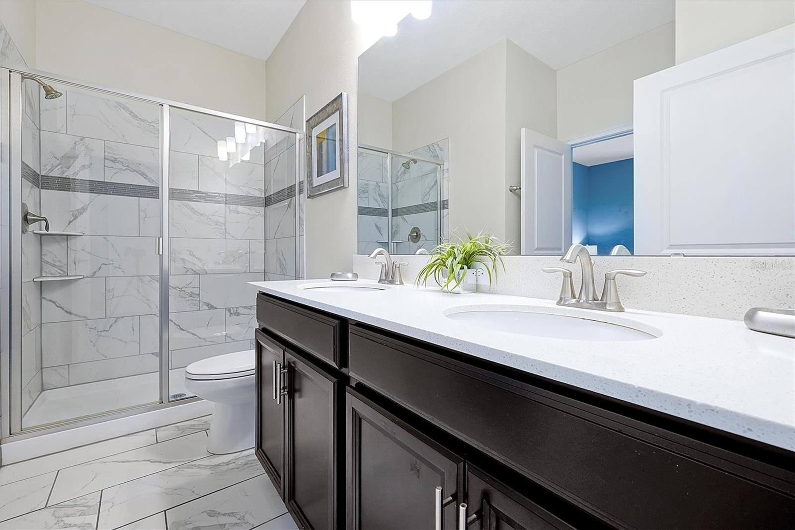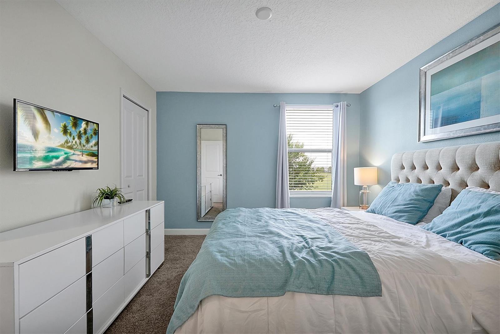 WATER VIEW! SAPCIOUS BEAUTIFUL FULLY FURNISHED RESORT STYLE POOL HOME! One of the most famous GOLF Resorts in Orlando - gated and guarded Championgate Community! Enjoy Golf on site! 8 bedrooms and Movie/Theater Room and Loft and 5 bathroom. Title roof. Open floor plan. Professional design and decorations in the whole house, costumed paintings, modern beautiful tiles, furnitures, lightings, luxury theater room, garage converted to a large game room, covered screened lanai, heated pool, water view without neighbors on the back...all are PERFECT for indoor and outdoor gathering and entertaining! Oversized master suite downstairs with garden tub and separated shower. This is an AMAZING resort community, features an over 10000 sqft clubhouse, fitness center, pools, lazy river, waterslide, theater, game room, restaurant, tiki bar, cabanas, tennis, volleyball...etc. Only a few mins to shoppings, eatings. Closed and easy access to Disney World, Universal, Sea World, Premium Outlets. HOA includes Internet/Cable and Lawn maintenance and Daily Trash and Community amenties access. Schedule a showing TODAY!