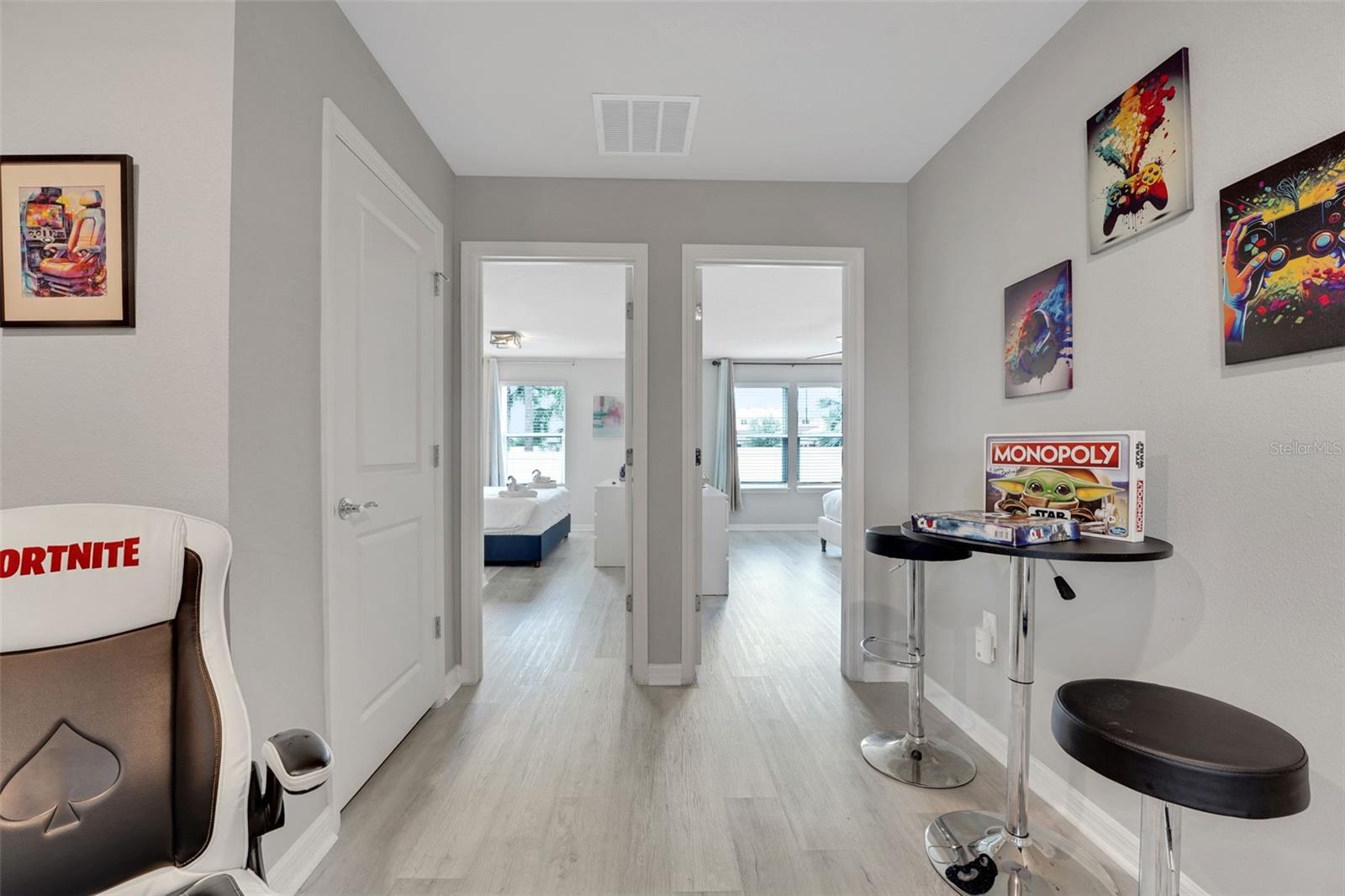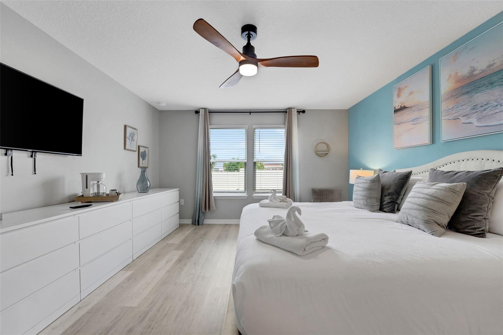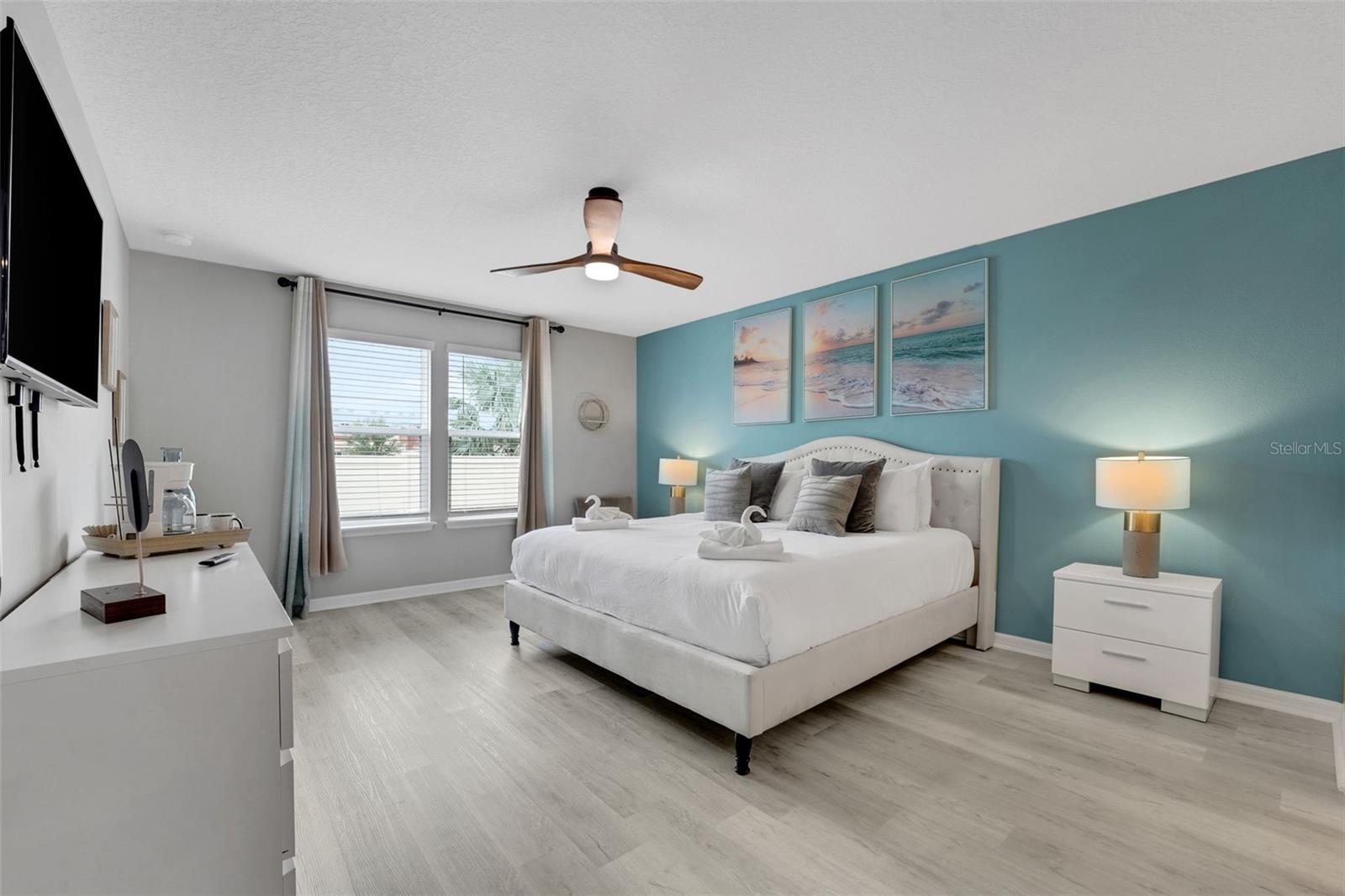 Experience the perfect fusion of comfort, style, and resort living in this 5-bedroom, 4.5-bathroom upscale townhome offering 2,283 square feet of thoughtfully designed space. Located in the iconic Hawaiian-themed Windsor Island Resort in Davenport, FL—just a few miles from world-famous Walt Disney World—this fully furnished, turn-key retreat is ideal for personal vacation enjoyment or as a high-performing short-term rental investment. Every detail of this beautifully finished townhome has been curated for modern living and unforgettable guest experiences. Elegant builder-selected upgrades include white shaker-style cabinetry, granite countertops, stainless steel appliances, and a spacious open-concept layout that brings everyone together with ease. Recent enhancements—most notably the installation of luxury vinyl plank flooring throughout all bedrooms, the staircase, and the upstairs loft—create a sleek, cohesive, low-maintenance interior perfect for vacation living. The second-floor loft has been reimagined as a vibrant entertainment zone, complete with wall-mounted TV, comfortable seating, and Fortnite-themed gaming chairs, offering an inviting space for relaxation between park days. Outside, the private south-facing heated pool captures maximum sunlight throughout the day, delivering a tranquil and refreshing setting that guests consistently seek in a luxury vacation rental. From the front door, enjoy a direct view of the resort’s signature clubhouse—placing world-class amenities and vibrant resort energy just a short stroll away. Windsor Island Resort continues to set a new standard for vacation communities in the Disney tourist corridor. Its extraordinary amenities include a grand clubhouse with concierge, lounge, sundry shop, fitness center, interactive arcade, and the popular Blue Marlin Grille Bar and Restaurant. Outdoor recreation is equally impressive, featuring a playground, pickleball court, mini golf, firepit with Disney fireworks views, heated zero-entry resort pool, lazy river, dual water slides, splash pad, poolside cabanas, and abundant sun loungers—making this one of Central Florida’s most desirable destinations for owners and guests alike. Windsor Island Resort is designed to deliver unforgettable vacations—Aloha! Whether you’re searching for your own personal getaway or seeking an investment positioned for strong demand in one of Central Florida’s premier resort communities, 720 Gardenia Lane offers an exceptional opportunity in a truly world-class setting. CHECK OUT THE LIFESTYLE VIDEO INCLUDED WITH THIS LISTING. All information provided, including room sizes, is deemed reliable but not guaranteed. Buyers and their agents are encouraged to independently verify all details.