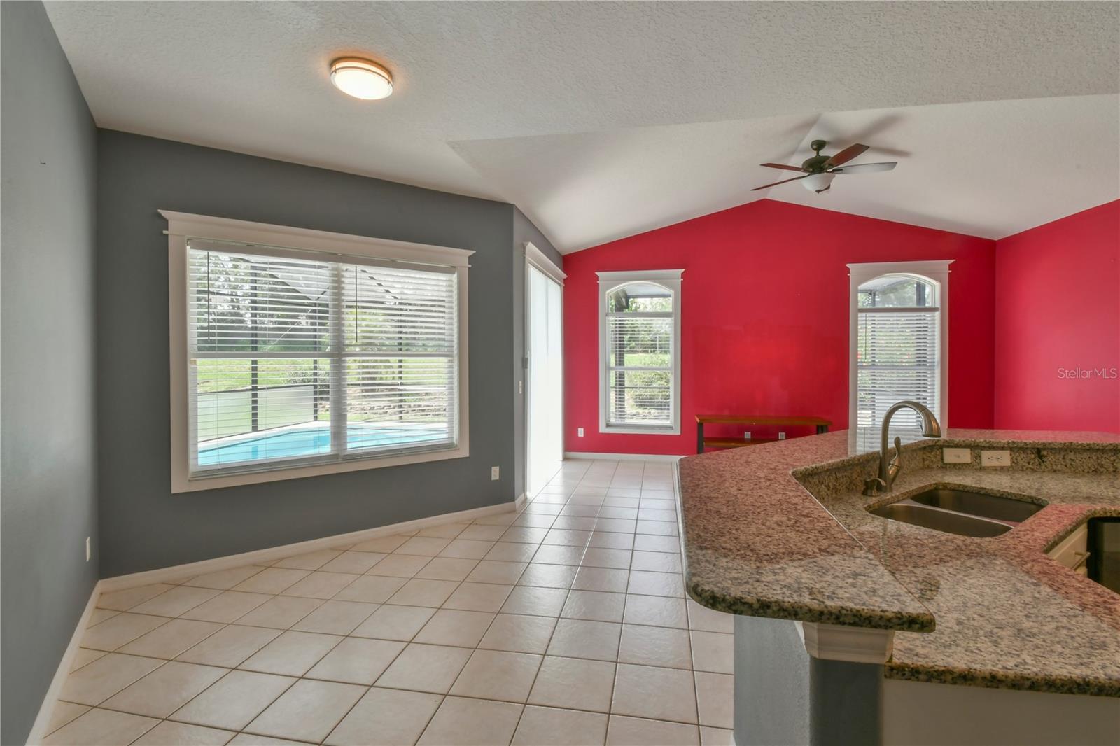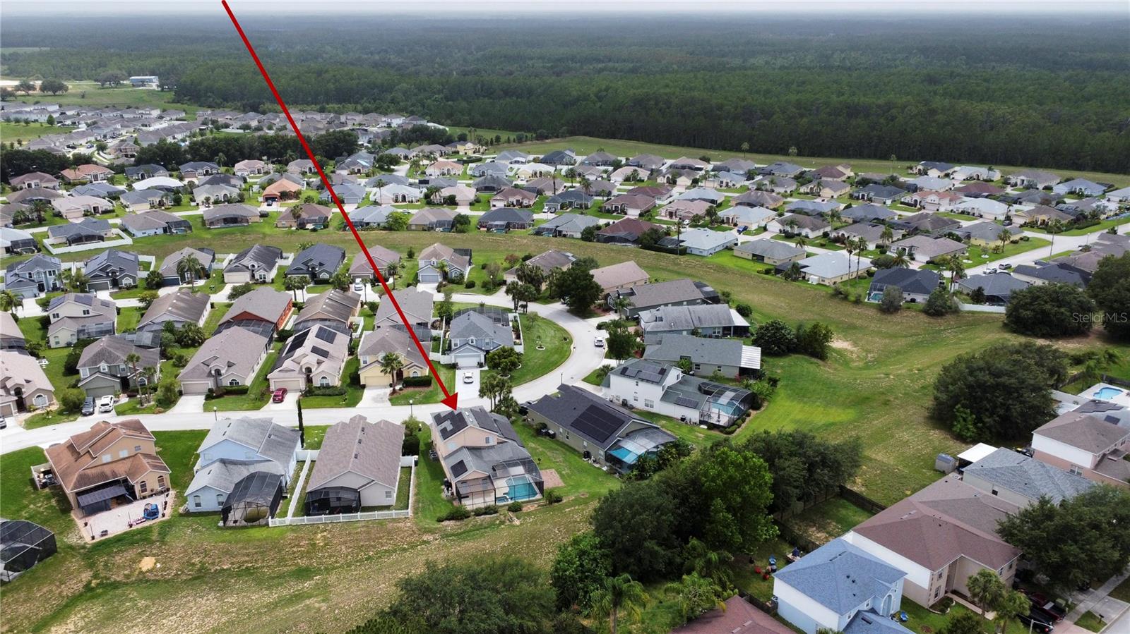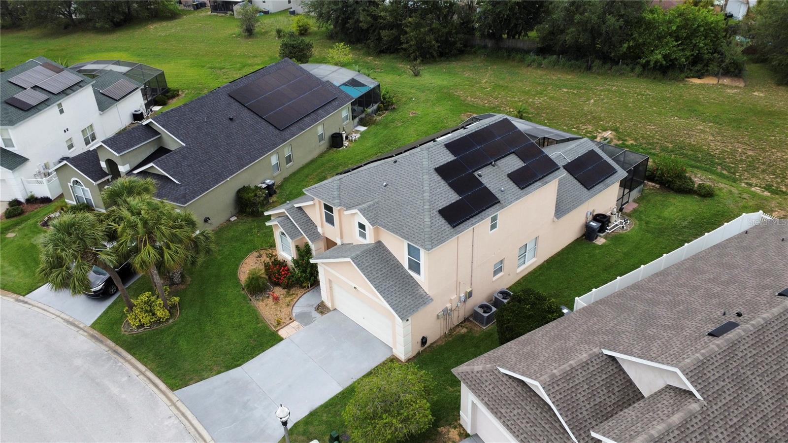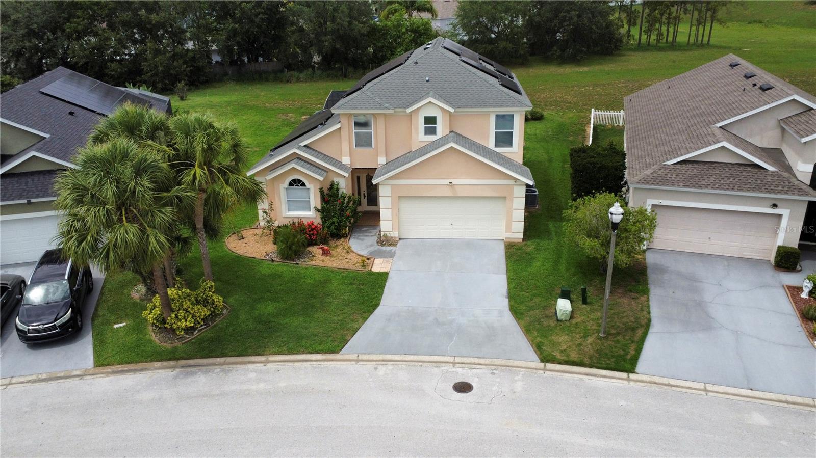 Welcome to this spacious 5 bedroom, 3.5 bathroom pool home located in the desirable Tuscan Ridge community in the Davenport area, just minutes from Disney and Championsgate. This beautifully maintained residence features an open floor plan with the master bedroom conveniently located on the first floor. All bedrooms boast brand new laminate flooring, while the updated kitchen and bathrooms are finished with elegant granite countertops and durable ceramic tile. The home is equipped with solar panels that will be fully paid off by the seller at closing, providing significant savings on electric bills. Step outside to enjoy the screened-in heated pool and spa, offering the perfect space for relaxation and entertaining year-round. Whether you're looking for a primary residence, vacation home, or investment property, this home checks all the boxes in both style and location.