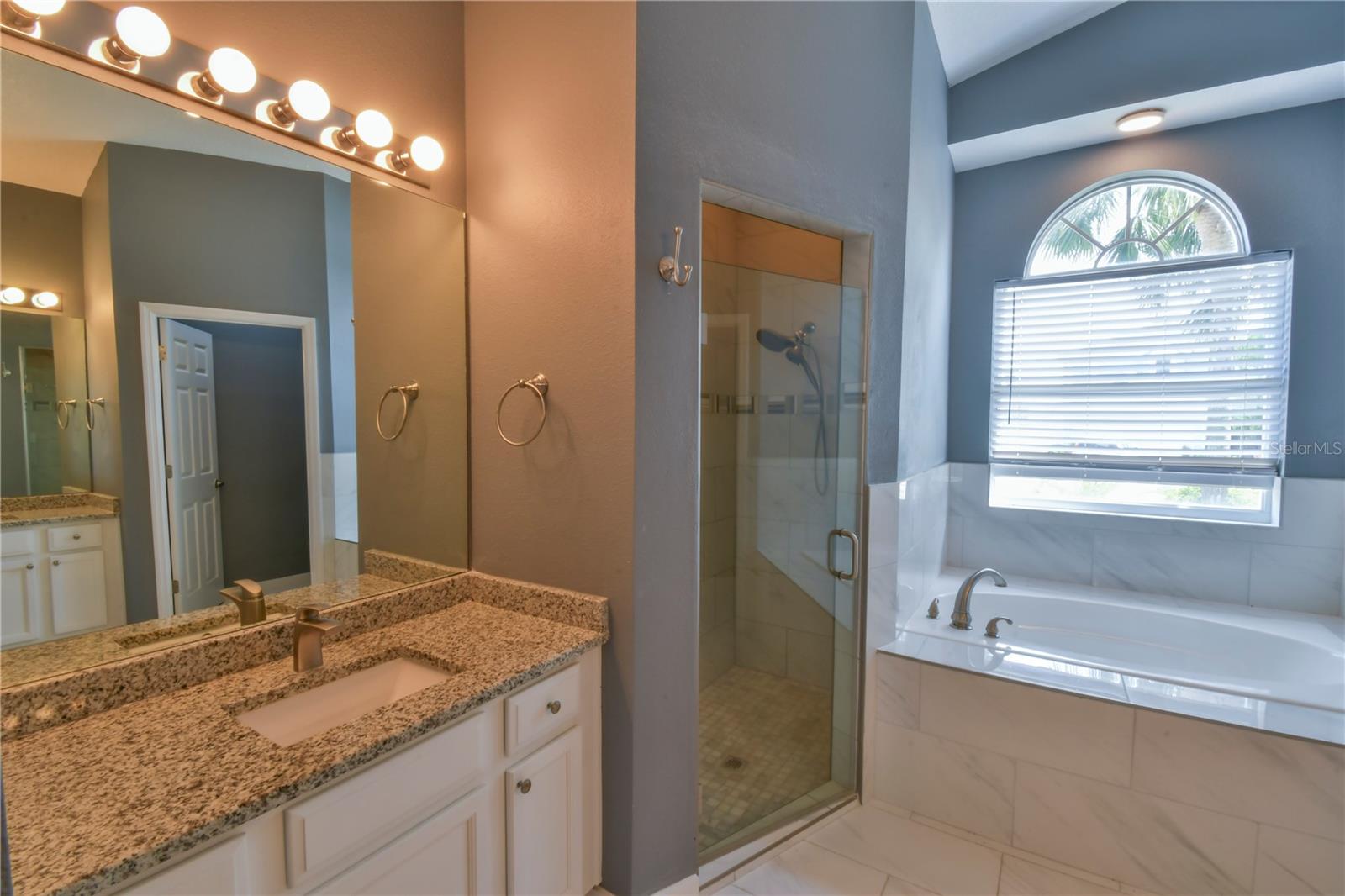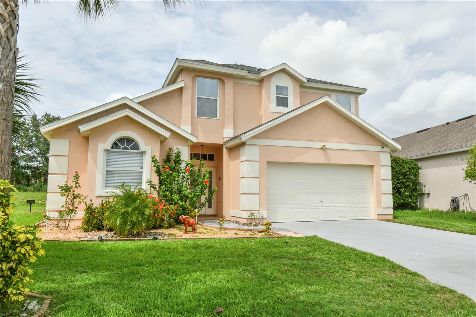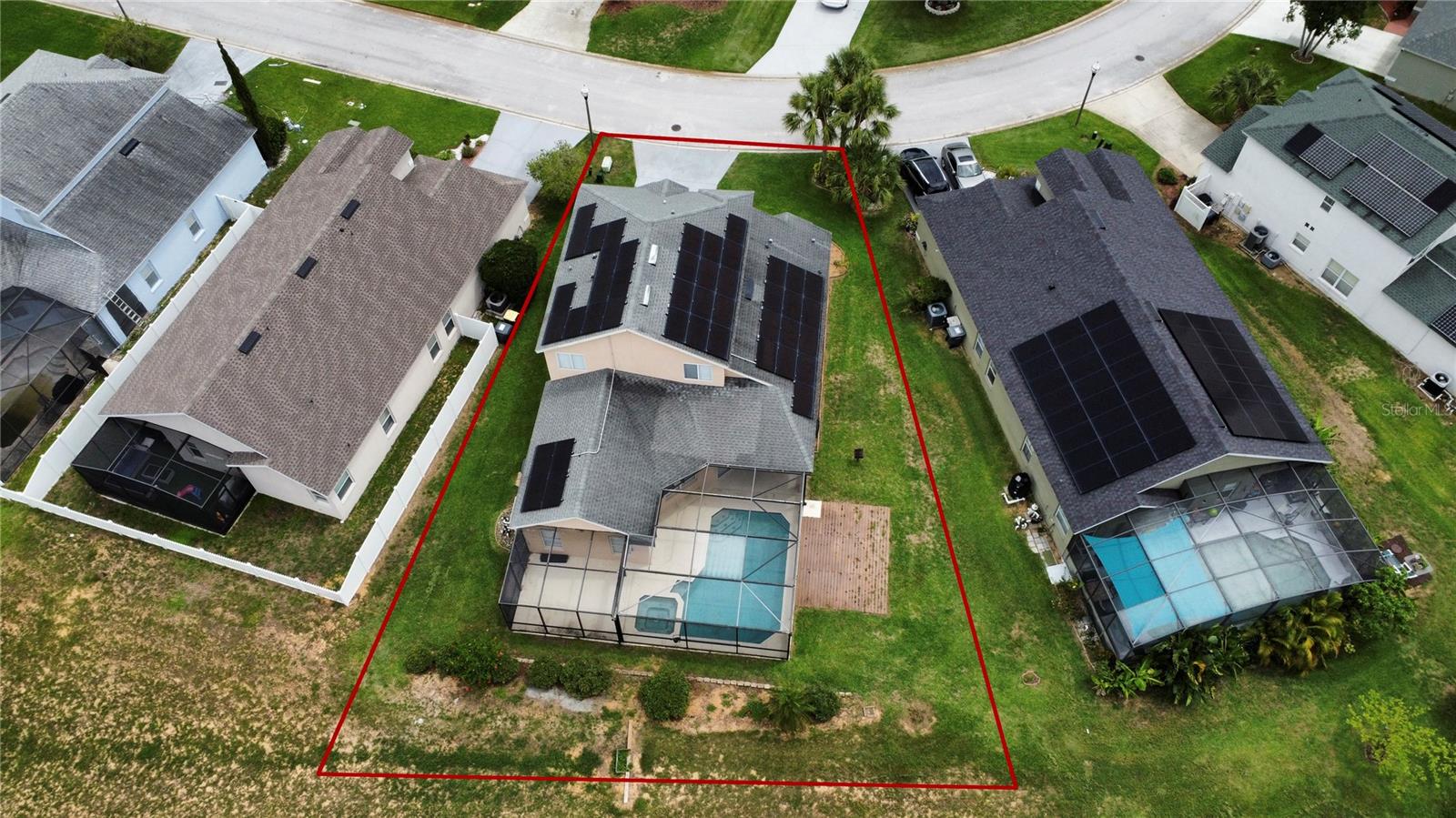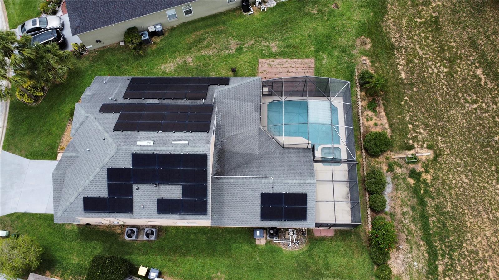 Welcome to this spacious 5 bedroom, 3.5 bathroom pool home located in the desirable Tuscan Ridge community in the Davenport area, just minutes from Disney and Championsgate. This beautifully maintained residence features an open floor plan with the master bedroom conveniently located on the first floor. All bedrooms boast brand new laminate flooring, while the updated kitchen and bathrooms are finished with elegant granite countertops and durable ceramic tile. The home is equipped with solar panels that will be fully paid off by the seller at closing, providing significant savings on electric bills. Step outside to enjoy the screened-in heated pool and spa, offering the perfect space for relaxation and entertaining year-round. Whether you're looking for a primary residence, vacation home, or investment property, this home checks all the boxes in both style and location.