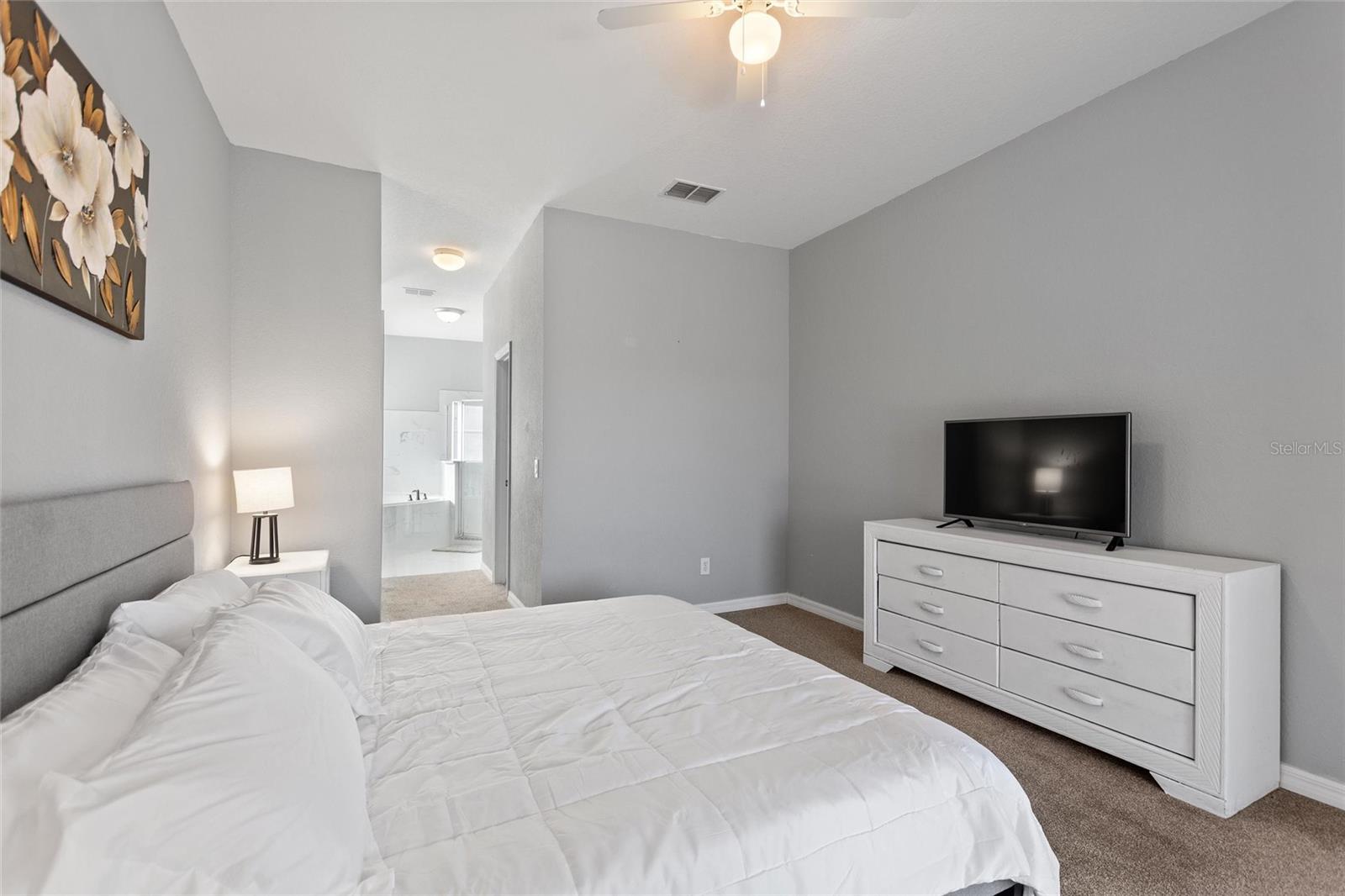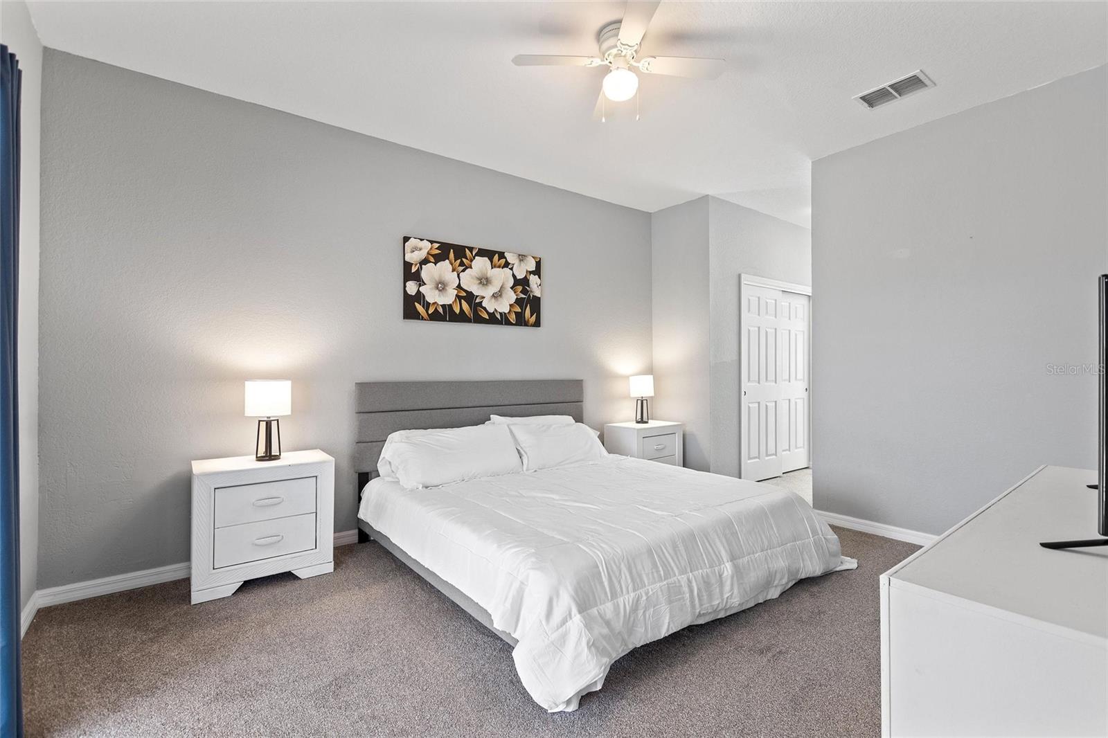 Welcome to The Abbey at West Haven! Step into this beautifully refreshed and newly staged, fully furnished 5-bedroom, 4-full-bath, 2-half-bath pool and spa home located on a private cul-de-sac in the highly sought-after gated community near ChampionsGate. The owner recently enhanced the property with upgraded furnishings and light staging—giving the home a brighter, cleaner, and more updated feel throughout. This residence is ideal as a primary home, vacation home, or income-producing short-term rental or long-term rental. With no CDD, strong rental potential, and a long list of recent upgrades, this home delivers exceptional value. The home features a modern, updated kitchen with white cabinetry, quartz countertops, and new microwave, dishwasher, and refrigerator—a stylish refresh that pairs perfectly with the bright and open layout. Enjoy two primary suites, including a first-floor primary with a fully renovated en-suite offering a separate tub and shower, dual vanities, and bidet. A second primary suite awaits upstairs along with spacious guest bedrooms and two full bathrooms, each with dual sinks and tub/shower combinations. Tile flooring flows through the main and wet areas, while the bedrooms feature plush carpet installed just two years ago. The upstairs loft/flex space is perfect for a home office, media room, or game room. Recent Upgrades Include: Fresh interior paint (within last 2 years) Updated lighting fixtures (2023) Smart thermostat Renovated pool bath (approx. 2 years old) New roof (approx. 2 years old) New pool screens Full-size washer & dryer Two car garage with stone paver driveway Step outside to your private screened-in pool and spa with no rear neighbors, extended pool deck, and outdoor half bath—perfect for entertaining. The HOA includes basic cable, internet, lawn care, exterior pest control, gated security, community pool, fitness center, and tennis courts—delivering convenience and peace of mind. Located only 20 minutes from Walt Disney World, with quick access to I-4, US-27, shopping, restaurants, golf courses, and all that Central Florida has to offer. This refreshed, fully furnished home blends comfort, style, and strong investment potential in one of the area’s premier gated communities. Don’t miss your opportunity to own in The Abbey at West Haven!