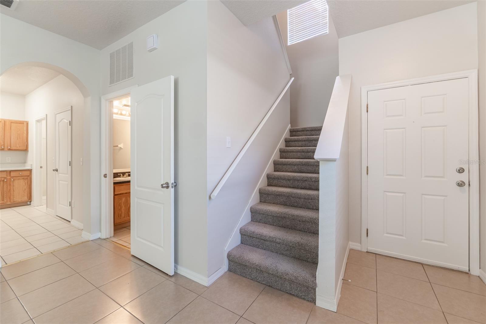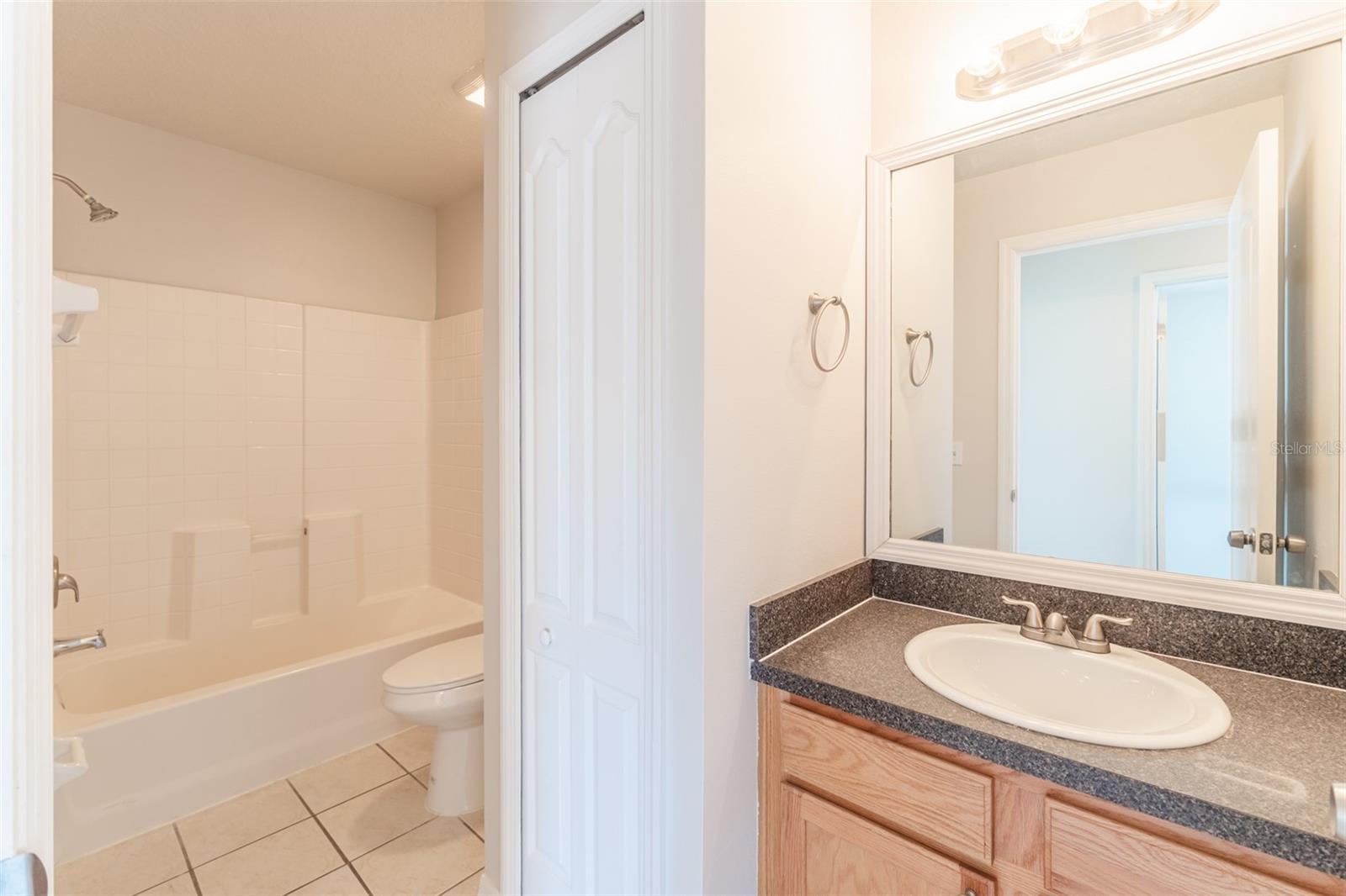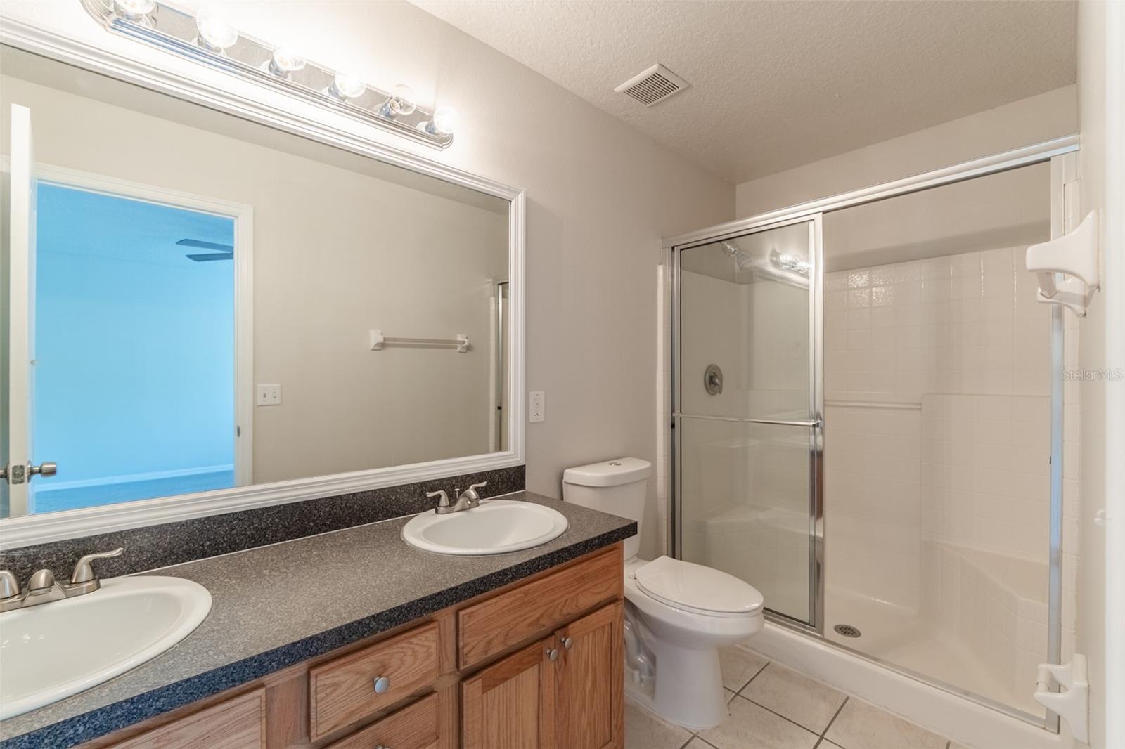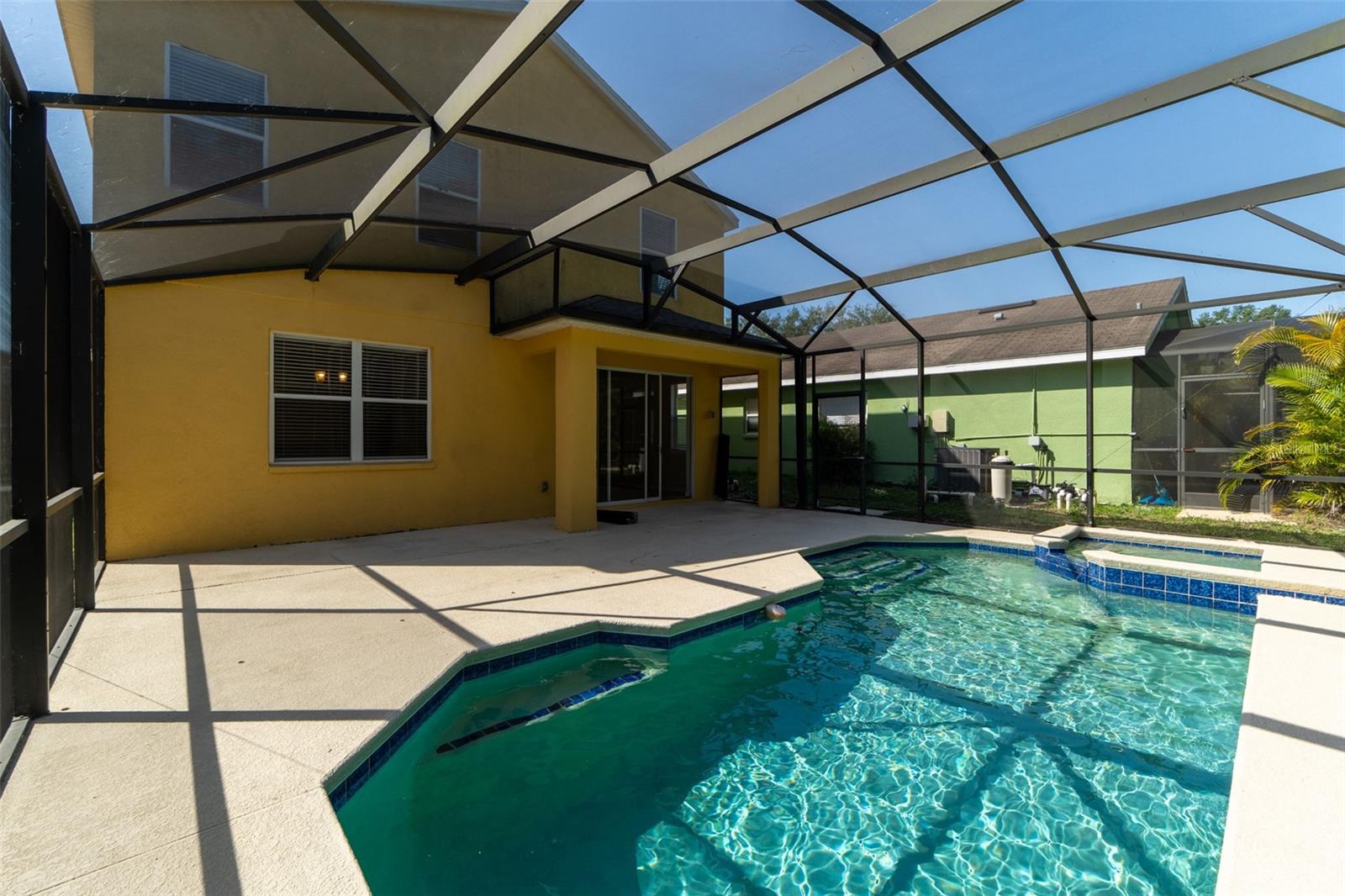 This move in ready 4-bedroom, 3.5-bath, 2 car garage POOL home in Royal Ridge offers convenience and comfort, just minutes from I-4, ChampionsGate, Posner Park, golf courses, medical facilities, and Disney attractions. The open floor plan features a spacious living area flowing into a bright kitchen with modern appliances and breakfast bar seating. Enjoy year-round outdoor living with your private screened-in pool, spa, and covered patio. The first floor includes a primary suite with a walk-in closet, dual vanities, garden tub, and separate shower, plus a guest suite with its own bath. Upstairs, two additional bedrooms share a Jack-and-Jill bathroom. Low HOA fees include access to community amenities such as a community pool, playground, basketball half-court, cable infrastructure, and landscaping. The HVAC system was installed in 2020, providing added peace of mind.
