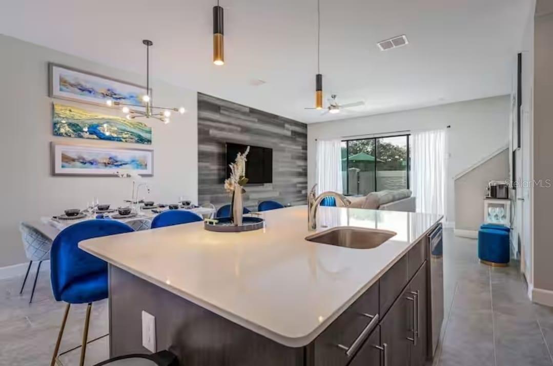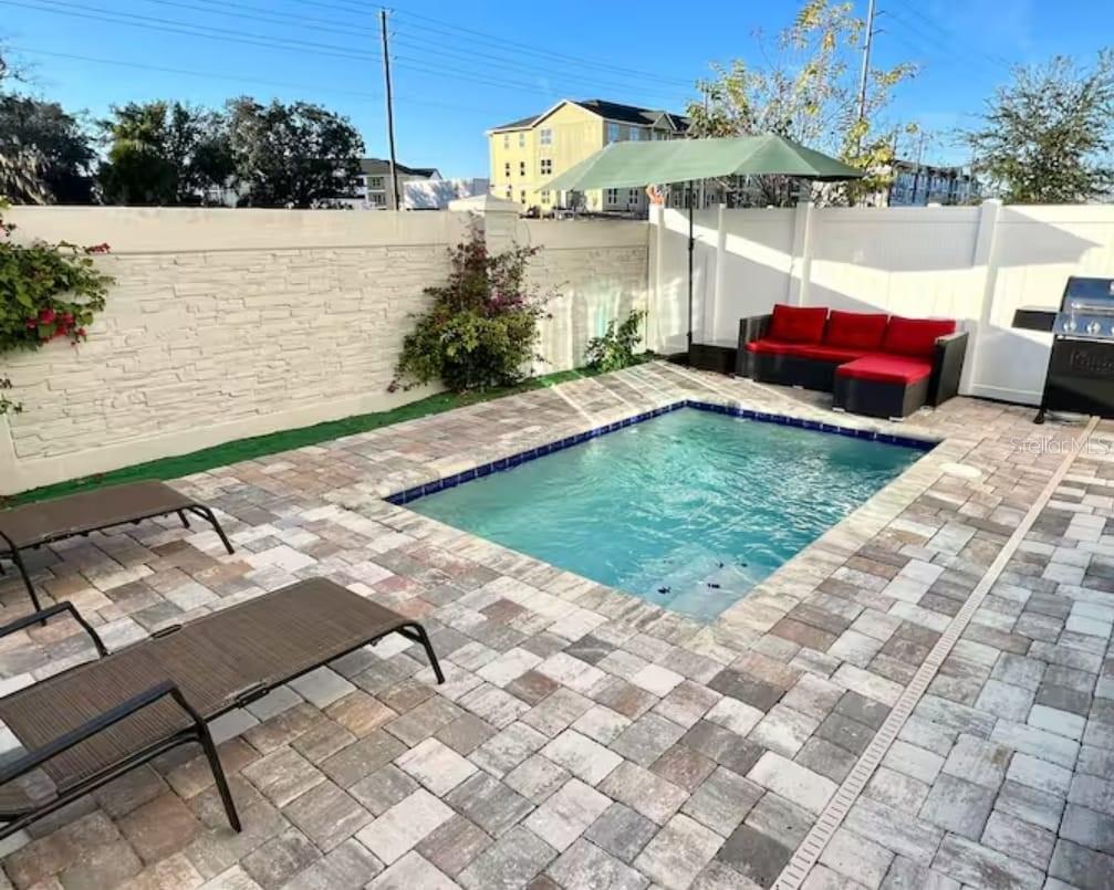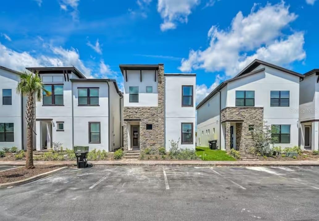 Welcome to Villa Domani—an exclusive boutique resort community with only 63 homes, centered around a peaceful pond and offering resort-style amenities including a pool and playground. This stunning, light-filled, fully furnished contemporary townhome is the perfect opportunity for a SHORT TERM RENTAL OR investment, second home, or full-time residence. turnkey vacation home. Located just minutes from Central Florida attractions and the Orlando International Airport, this property features a private plunge pool, a gourmet chef’s kitchen, soaring high ceilings, and double sliding doors that open to a private courtyard. The main floor includes a spacious primary suite, with a second master suite upstairs, plus two additional bedrooms for guests or family. Enjoy relaxing on the cozy, covered front porch or entertaining in your stylish open-concept living area. Every detail in this home has been thoughtfully designed for comfort and convenience. Don’t miss your chance to own a piece of paradise in Champions Gate. Contact us today to schedule your private showing and experience this exceptional home for yourself!