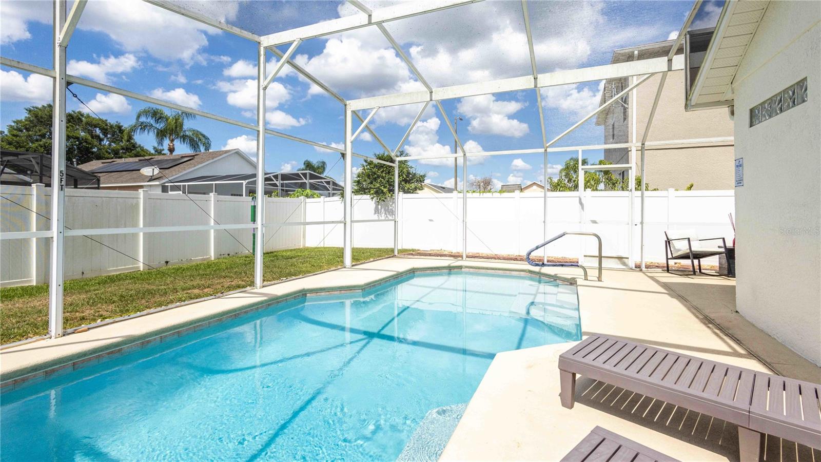 *CHECK OUT THE ZILLOW 3D TOUR AND WALK-THROUGH VIDEO** Welcome to your dream oasis nestled in the heart of Davenport’s lovely Santa Cruz subdivision! This very well maintained home can be utilized as an INVESTMENT OPPORTUNITY, SECOND HOME, OR EVEN A PERFECT PLACE TO CALL YOUR VERY OWN! This exquisite three-bedroom, two-bathroom home boasts more than 1,100 square feet of well-designed living space. As you enter, you’ll be captivated by the soaring vaulted ceilings that create an airy and bright ambience throughout. The heart of the home is undoubtedly the SPECTACULAR KITCHEN, featuring an OVER-SIZED GRANITE COUNTERTOP ISLAND, perfect for culinary adventures and entertaining guests. With charming accent walls enriching the interiors, all modern fixtures throughout, and NO CARPET in the entertaining areas, this home embodies a blend of style and practicality. Enjoy the comfort of modern living with a NEWER HVAC system, NEWER ROOF and WATER HEATER, alongside fresh exterior paint that enhances the curb appeal. Step outside into your fully fenced-in backyard, where a HEATED, FULLY ENCLOSED, PRIVATE POOL awaits you for endless relaxation and fun. A thoughtfully designed paved walkway leads from the front of the house all the way to the backyard, connecting all of your outdoor space. For your convenience, the property includes a fully working outdoor pool shower, ensuring ultimate enjoyment in this exquisite retreat. Located minutes from central Florida's WORLD-REKNOWN AMUSEMENT PARKS, beaches, entertainment districts, dining and shopping options, this home is located in the heart of it all! Whether you’re seeking an investment opportunity, a second home, or a vibrant lifestyle in central Florida, this enchanting property offers everything you need and more! Contact your Realtor today to schedule a private showing!