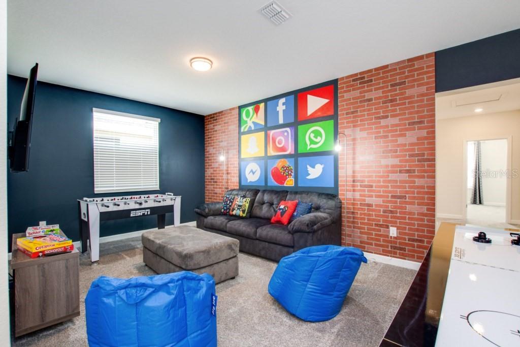 Come see this Beautiful and well-maintained home. Enjoy all the space with 6-bedrooms, 5-bathrooms, and plenty of seating areas. This unique home is perfect for a large family or short-term rental home. Attention to detail design with tile flooring, granite countertops, updated light fixtures, themed bedrooms, a game room and more! When you walk into this home you will notice the spacious feeling with high ceilings, a large kitchen island, modern appliances, and an open floor plan. Enjoy relaxing in the private heated pool from your lanai (no rear neighbors) with a spectacular pond view. Move-In or rental ready with all the well-designed furnishings. Master bedroom includes a large walk-in shower, bathtub, dual sinks, and large closet. There's room for the entire family and plenty of space for guest. Champions Gate is a sought-after area for investors and renters. It's known for its wonderful amenities and high occupancy throughout the year. The HOA includes the clubhouse, fitness center, on-site restaurant spa, cabanas, park, game room, pool, tiki bar, fitness center, movie theater, Volleyball courts, lazy river, splash pad water, playground, basketball courts, and a jungle gym. Close to shopping centers, restaurants, theme parks, golf courses, and major highways. It's time to invest in relaxation with resort style living.