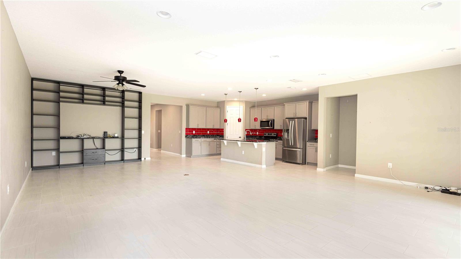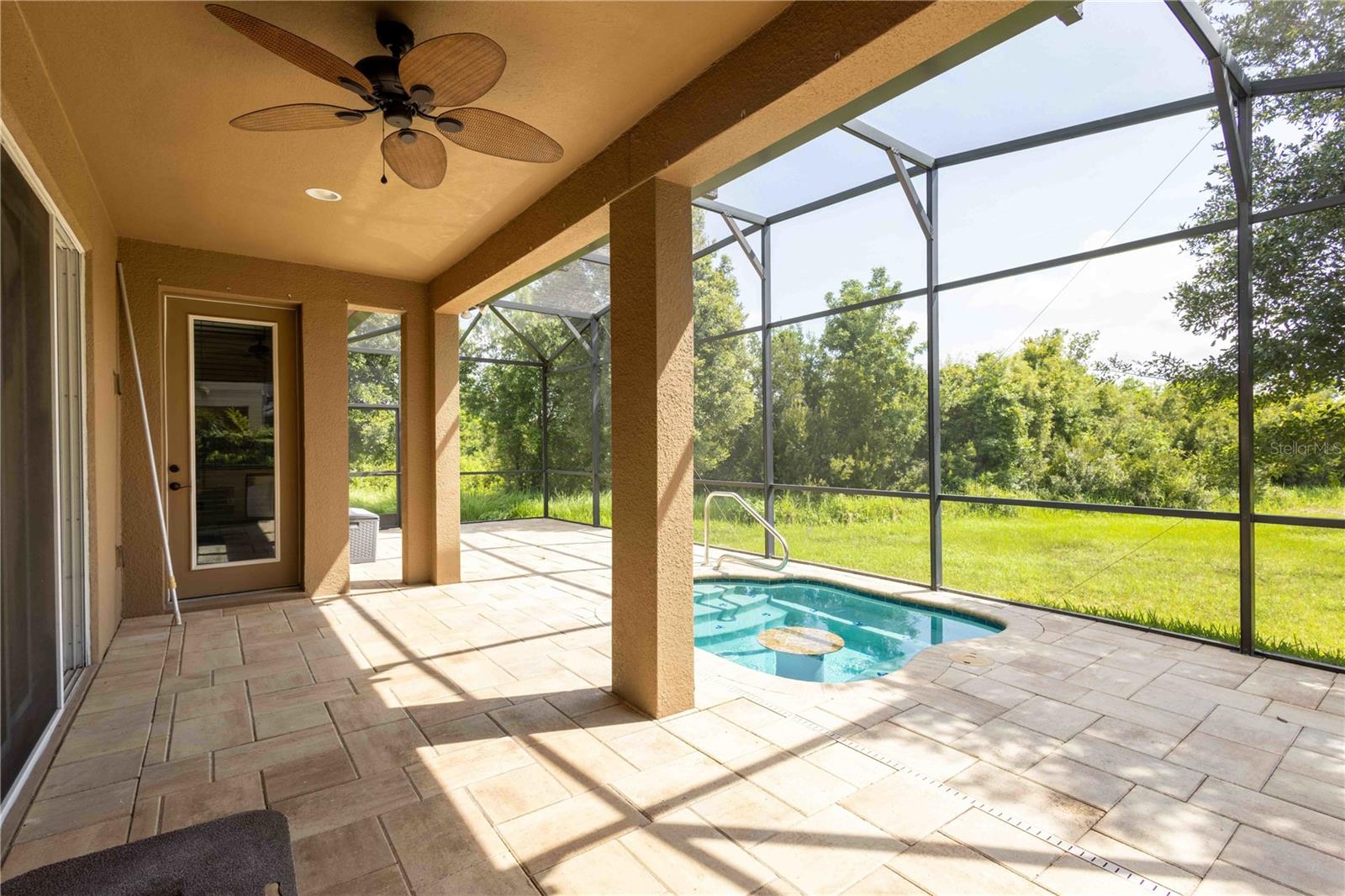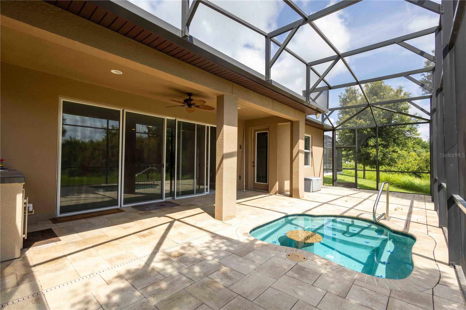 Live the Florida lifestyle in this beautifully upgraded 3-bedroom, 2-bath home located in The Shire at West Haven, a peaceful and secure gated community in Davenport, Florida. With no rear neighbors and serene greenery as your backdrop, this home offers unmatched privacy and tranquility. Inside, enjoy the spacious kitchen with cosmic-style granite counters, tile flooring throughout, and a luxurious walk-in shower in the master suite, which also features a huge custom built-in closet offering stylish organization and ample storage. The open-concept living area includes a sleek custom-made entertainment center. One of the bedrooms has been converted into a stylish home office, perfect for remote work or creative pursuits, while the third bedroom currently features a Murphy bed that offers flexible space for guests or multi-use living. (Murphy bed not included but can be purchased.) Step outside to your private retreat: a custom large spa with a built-in table and multi-level seating, plus an outdoor fridge and sink make it perfect for entertaining. The home has an extended driveway and oversized garage providing ample parking and storage. The Shire offers resort-style amenities including a clubhouse with fitness center, pool, tennis courts, and volleyball court. HOA dues cover cable, internet, phone, lawn service, and 24/7 gated entrance—delivering both luxury and peace of mind. With easy access to I-4 and proximity to top-rated hospitals, restaurants, entertainment, and the magic of Disney, you’ll enjoy the perfect balance of serenity and convenience.