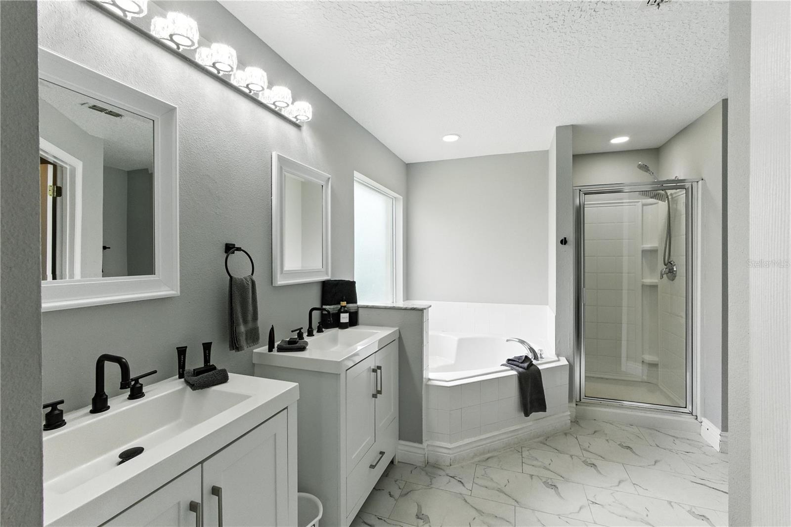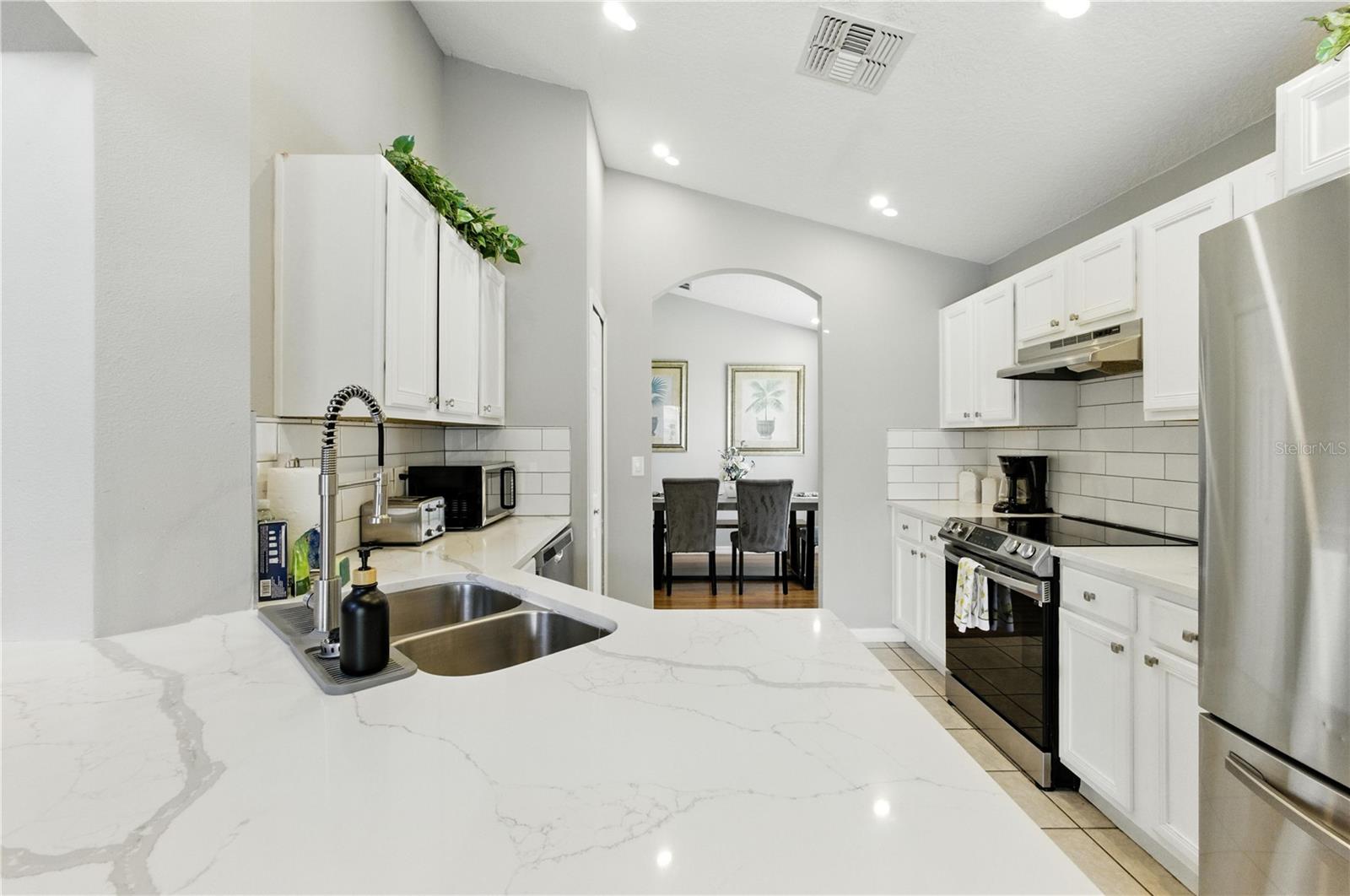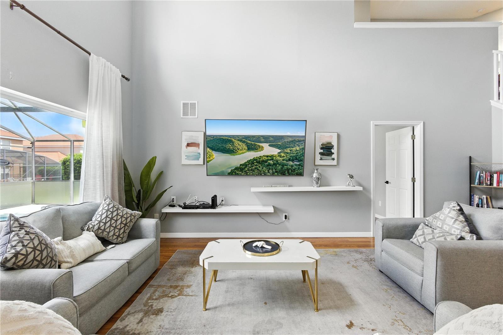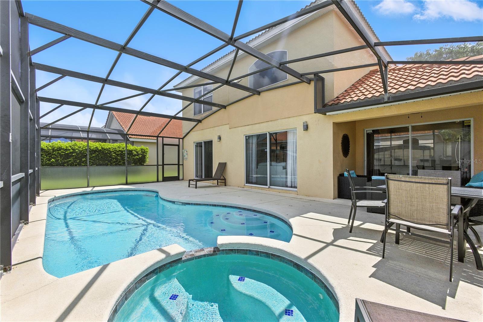 This light, bright and airy two-story home sits on a large corner lot in the sought after Solana subdivision. The amenities in Solana are second to none with playground, pool, club house, mini golf and more. This guard gated community is kept immaculate. With five bedrooms and four bathrooms this home space for it all. The large primary suite is on the main floor, with sliding glass doors for direct pool access. Sold fully furnished this home is practical and presentable and has flexibility to welcome residents or investors alike.
