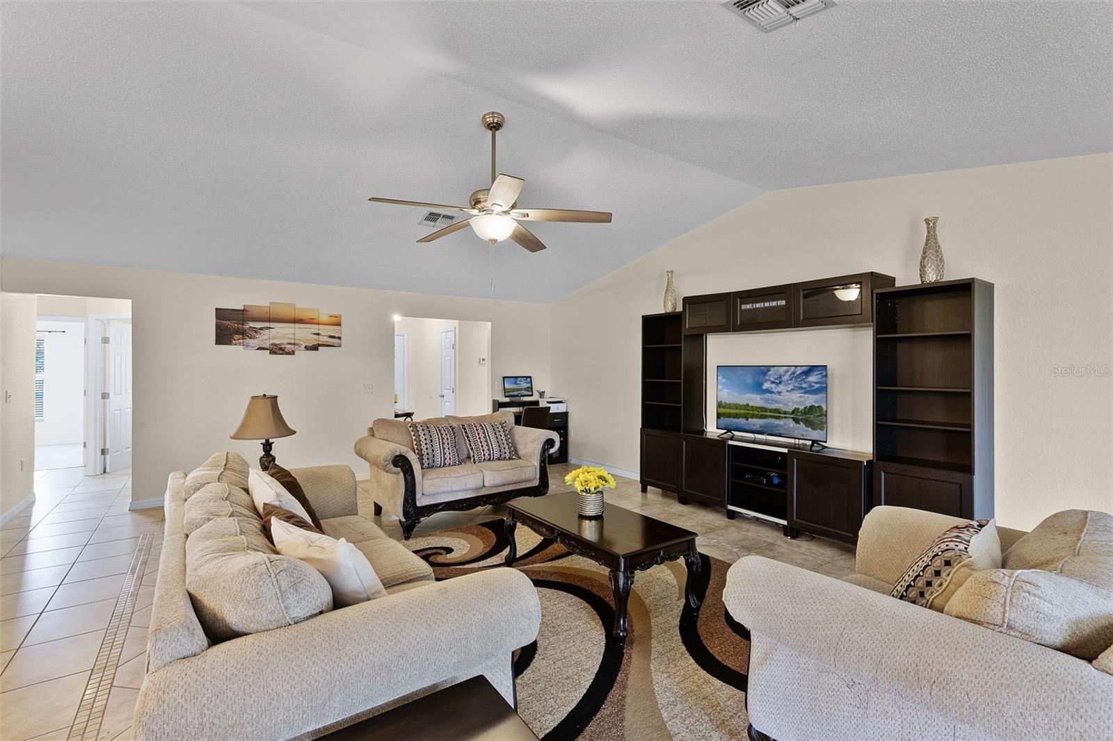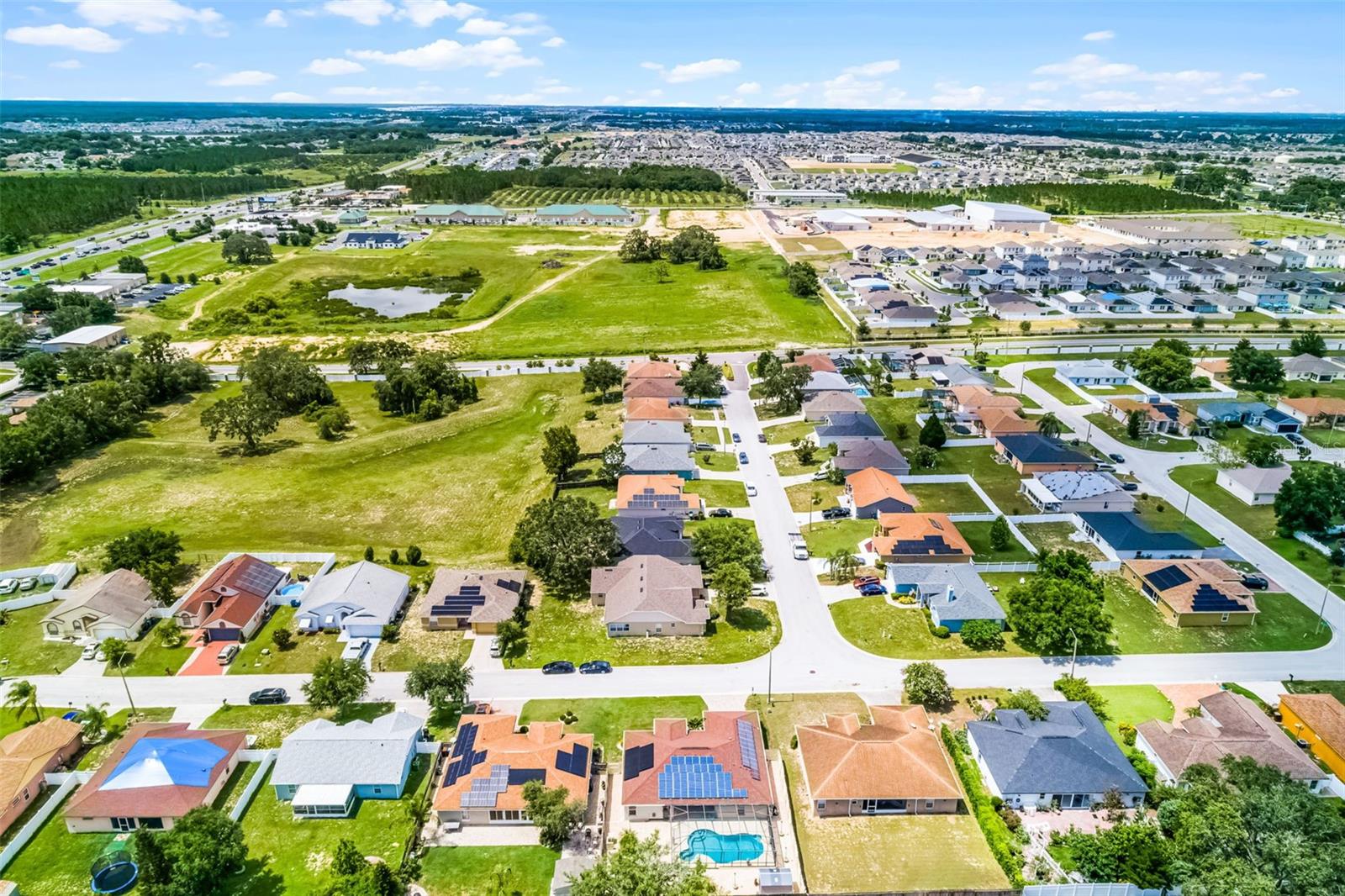 Welcome to this beautifully maintained split-plan home featuring a newer roof (2022), plus fresh interior paint. Enjoy a bright, open floor plan with soaring ceilings in the main living area, flooding the space with natural light and offering a seamless view of the oversized screened patio and private, fenced backyard with no rear neighbors. The kitchen is light and functional, with ample counter space, matching appliances, and a walk-in pantry. The owner’s suite, located privately off the main entry, includes dual walk-in closets, a garden tub, separate walk-in shower, double vanity, and a private water closet. The split floor plan places the additional three bedrooms on the opposite side of the home, sharing a spacious full guest bath. Highland Square offers a convenient location just off Hwy 27, with quick access to I-4 at Posner Park, plus nearby schools, shopping, restaurants, and medical facilities. Schedule your private showing today—this home has it all!