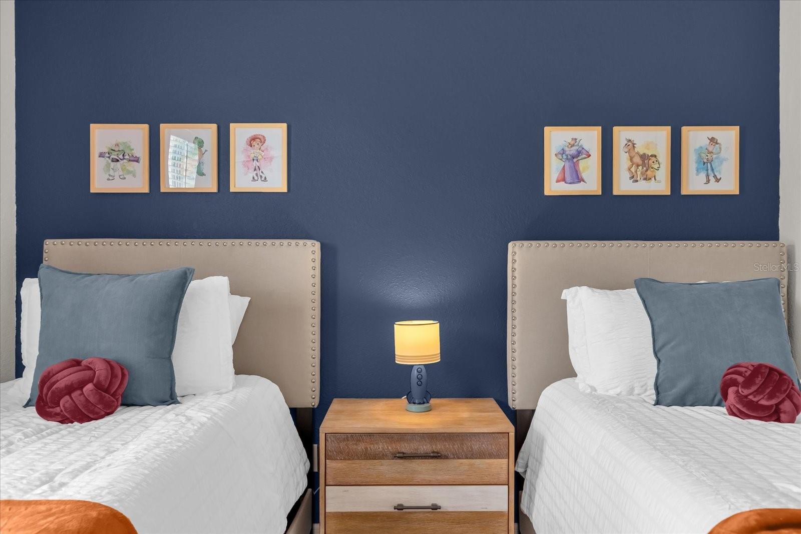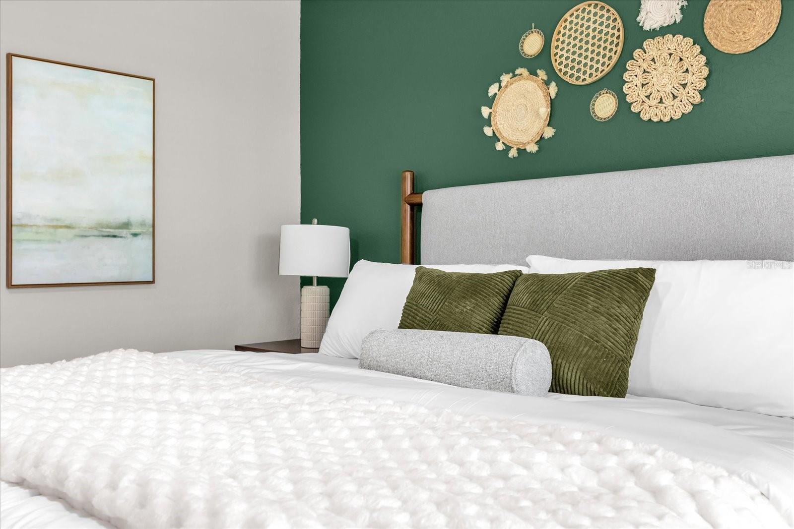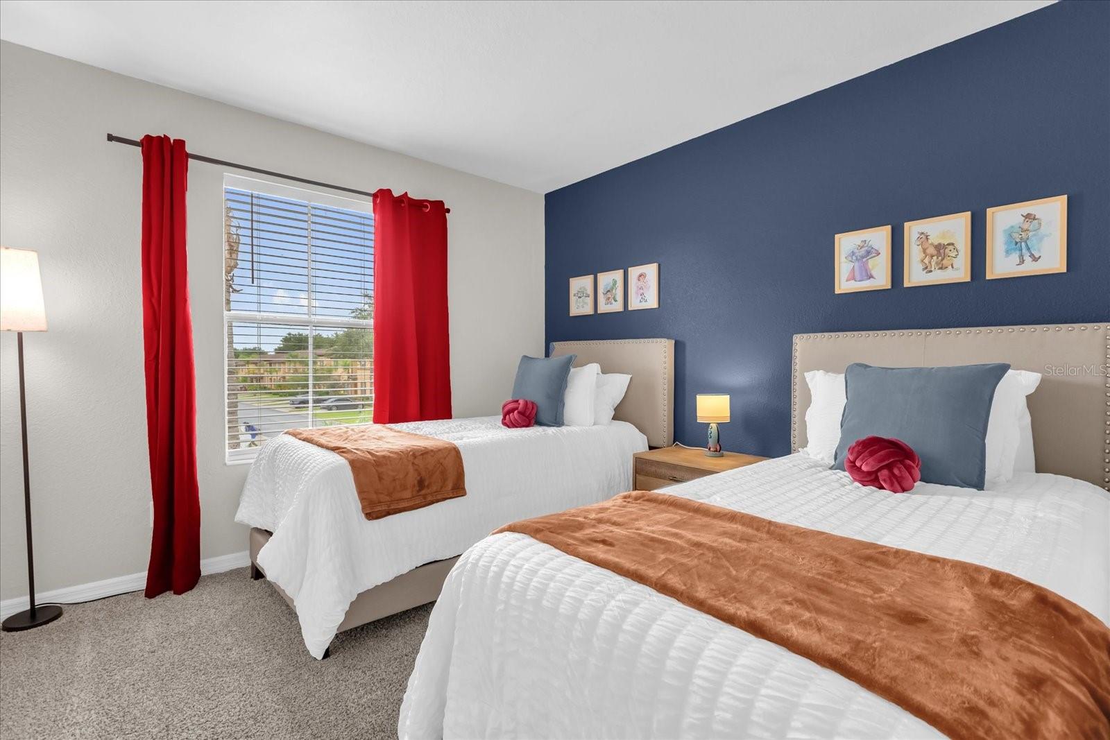 **OVER $$$100K BRAND NEW DESIGNER RENOVATION & FURNITURE***Welcome to paradise where everyday resort-style living meets family-fun! This 4 bed/3 bath home is nestled in the gated Regal Palms Resort! Located just 7 miles away from Walt Disney World Resort, and just a car ride away from restaurants, Legoland, Universal Studios, major water parks and other attractions. Turn-key, move-in ready, pristine & UNUSED; everything inside is untouched and BRAND NEW! House has the following: Split floor plan; 2 MASTER suites and 2 other bedrooms; Master has HUGE, deep-soak, two person tub. Kitchen has NEW, solid wood, wht, shaker cabinets w/ 36" uppers & crown molding; Breakfast bar; All NEW Samsung gourmet stainless steel appliances; all NEW 3 tone paint inside; All new faucets, toilets, fixtures, giant ceiling fans & LED lighting; All new vinyl plank flooring thru-out; NEW two-tone plush carpet & pad; Inside laundry. Home has been decorated by a professional interior designer. Experience resort lifestyle living every day! Community offers : • Aquatic Pavilion - a deluxe swimming area that includes a heated pool, lazy river, water slide, outdoor hot tub, and tiki bar. • Fitness Center - offers a range of cardio and strength options •Indoor hot tub • Sauna • Steam room • Spa and Nail Salon • Restaurant operated by Frankie Farrell's, where owners receive a discount • Pirate Themed Arcade- has an array of fun games for all ages. • Indoor playground •Volleyball Court •Five BBQ areas with charcoal grills and complimentary Wi-Fi. *According to HOA, a new roof is on the way! This unit is scheduled to be re-roofed end of August-ish 2025. .This place has it all!