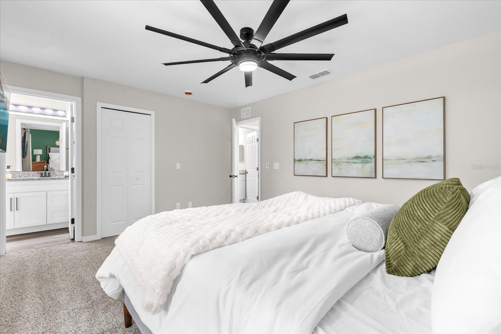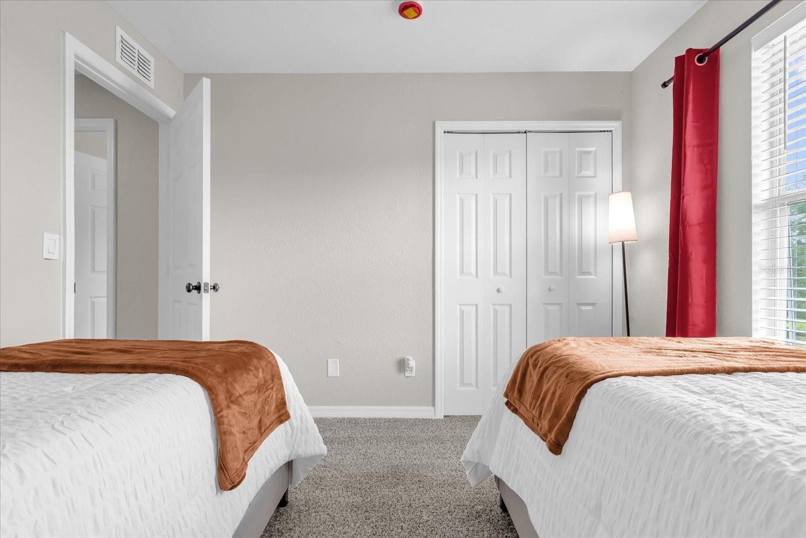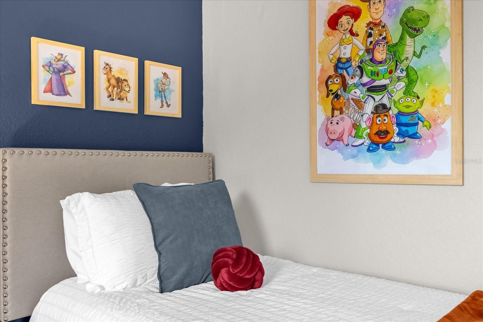 **OVER $$$100K BRAND NEW DESIGNER RENOVATION & FURNITURE***Welcome to paradise where everyday resort-style living meets family-fun! This 4 bed/3 bath home is nestled in the gated Regal Palms Resort! Located just 7 miles away from Walt Disney World Resort, and just a car ride away from restaurants, Legoland, Universal Studios, major water parks and other attractions. Turn-key, move-in ready, pristine & UNUSED; everything inside is untouched and BRAND NEW! House has the following: Split floor plan; 2 MASTER suites and 2 other bedrooms; Master has HUGE, deep-soak, two person tub. Kitchen has NEW, solid wood, wht, shaker cabinets w/ 36" uppers & crown molding; Breakfast bar; All NEW Samsung gourmet stainless steel appliances; all NEW 3 tone paint inside; All new faucets, toilets, fixtures, giant ceiling fans & LED lighting; All new vinyl plank flooring thru-out; NEW two-tone plush carpet & pad; Inside laundry. Home has been decorated by a professional interior designer. Experience resort lifestyle living every day! Community offers : • Aquatic Pavilion - a deluxe swimming area that includes a heated pool, lazy river, water slide, outdoor hot tub, and tiki bar. • Fitness Center - offers a range of cardio and strength options •Indoor hot tub • Sauna • Steam room • Spa and Nail Salon • Restaurant operated by Frankie Farrell's, where owners receive a discount • Pirate Themed Arcade- has an array of fun games for all ages. • Indoor playground •Volleyball Court •Five BBQ areas with charcoal grills and complimentary Wi-Fi. *According to HOA, a new roof is on the way! This unit is scheduled to be re-roofed end of August-ish 2025. .This place has it all!