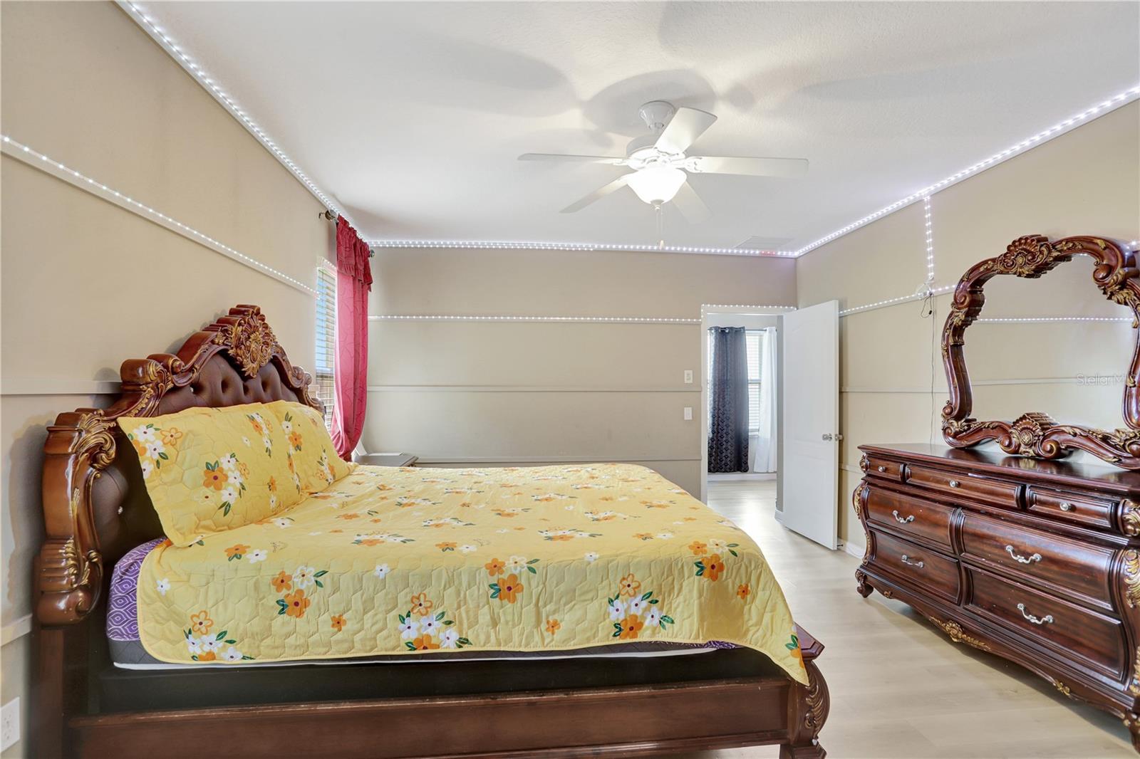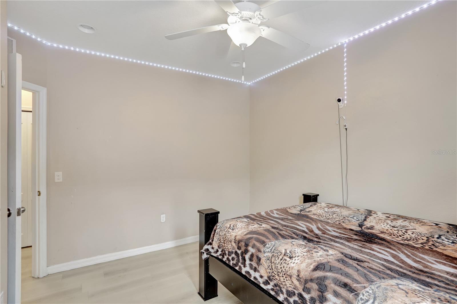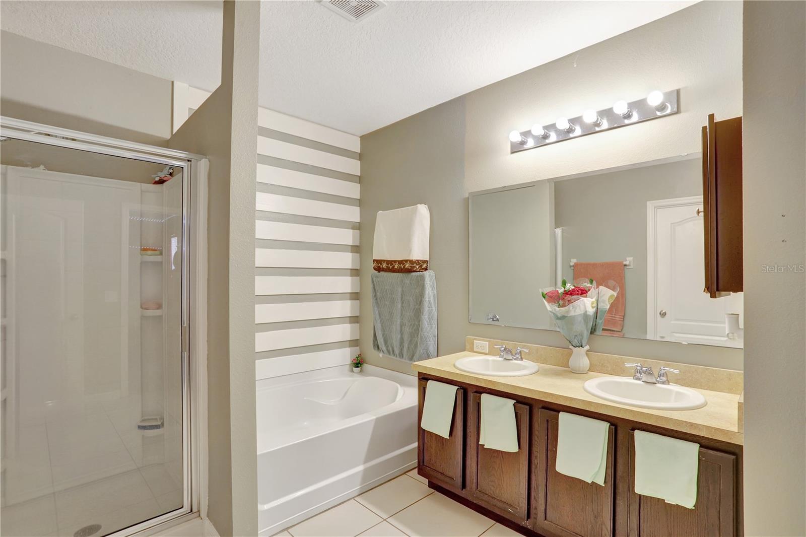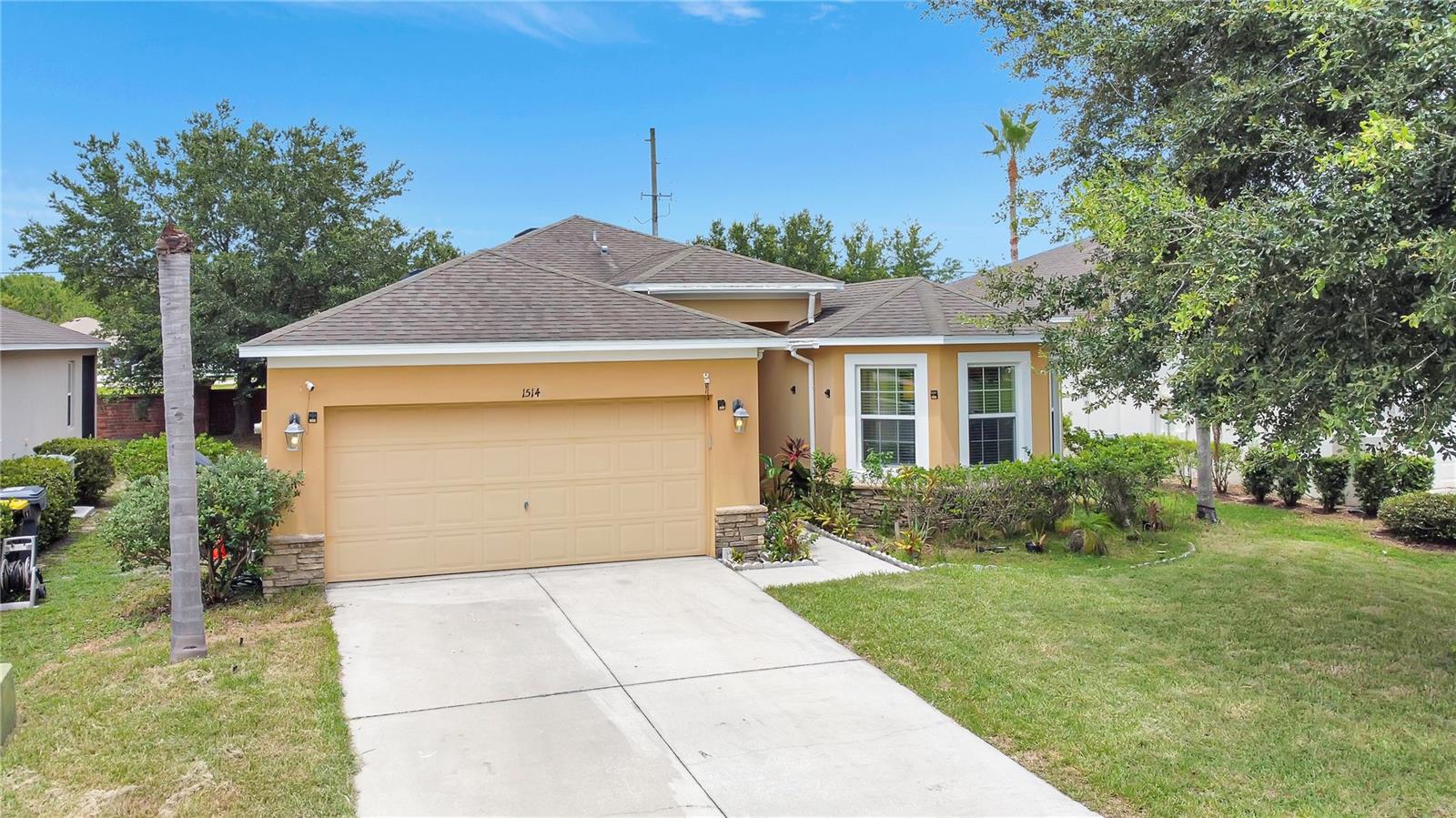 Price Improvement + Seller Contributing to Buyer's Closing Costs! Freshly painted interior and brand-new luxury vinyl plank flooring throughout (no carpet). This 3-bedroom, 2-bath home in the gated community of Sereno offers 1,763 sq ft, a split floor plan, solid surface kitchen counters, updated appliances, and tile in wet areas. The primary suite features a walk-in closet, a double vanity, a soaking tub, and a separate shower. Enjoy a covered lanai, fenced backyard, 2-car garage, and indoor laundry. Community pool, playground, low HOA, no CDD, and easy access to I-4, shopping, and Disney. Move-in ready and priced to sell!