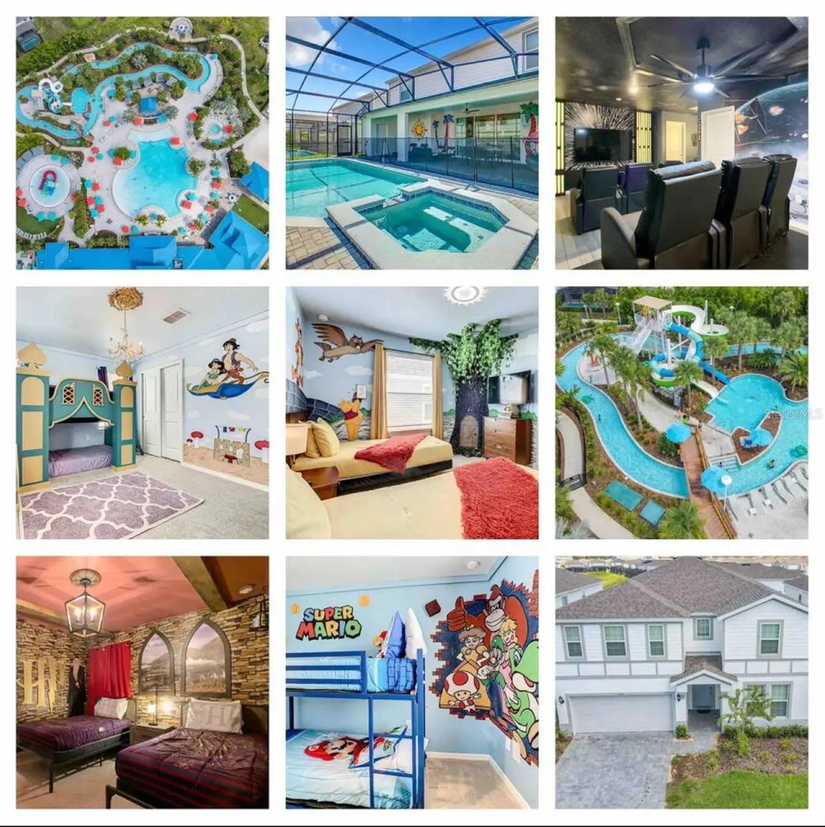 Unbeatable location! This is the closest 10-bedroom home to the resort-style clubhouse in Windsor Island Resort—just a 3-minute walk away! Truly the best spot in the entire community, offering unmatched convenience for guests and exceptional rental appeal. This beautifully upgraded and fully furnished 10-bedroom, 8-bathroom pool home is a rare find. The owner invested over $140,000 in custom upgrades and high-end finishes to make this home stand out. From designer lighting and accent walls to luxury flooring and themed bedrooms, every detail was thoughtfully selected for style and comfort. Enjoy a spacious open-concept layout with an oversized granite island, stainless steel appliances, and generous living and dining areas that flow seamlessly to the covered lanai and screened-in pool—perfect for entertaining or relaxing after a long day at the parks. The owner’s suite features direct pool access and a spa-style bath with dual vanities. Multiple en-suite bedrooms provide privacy and convenience, while creatively themed kids’ rooms deliver that “wow” factor for vacation guests. Located in the highly desirable Windsor Island Resort, just minutes from Disney, with top-tier amenities including a lazy river, water park, mini golf, arcade, fitness center, and more. Whether you're seeking a premium vacation home or a high-performing investment property, this is the best-located, most upgraded 10-bedroom home in the community—sold fully furnished and 100% rental-ready.