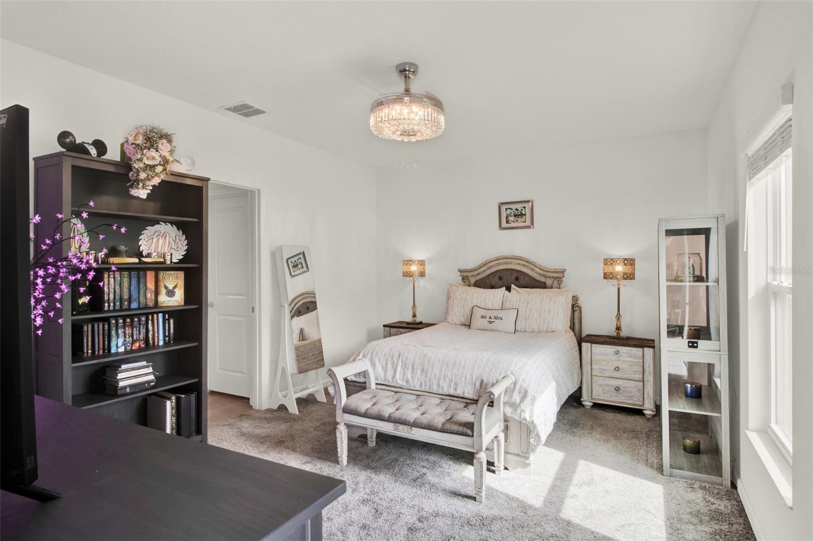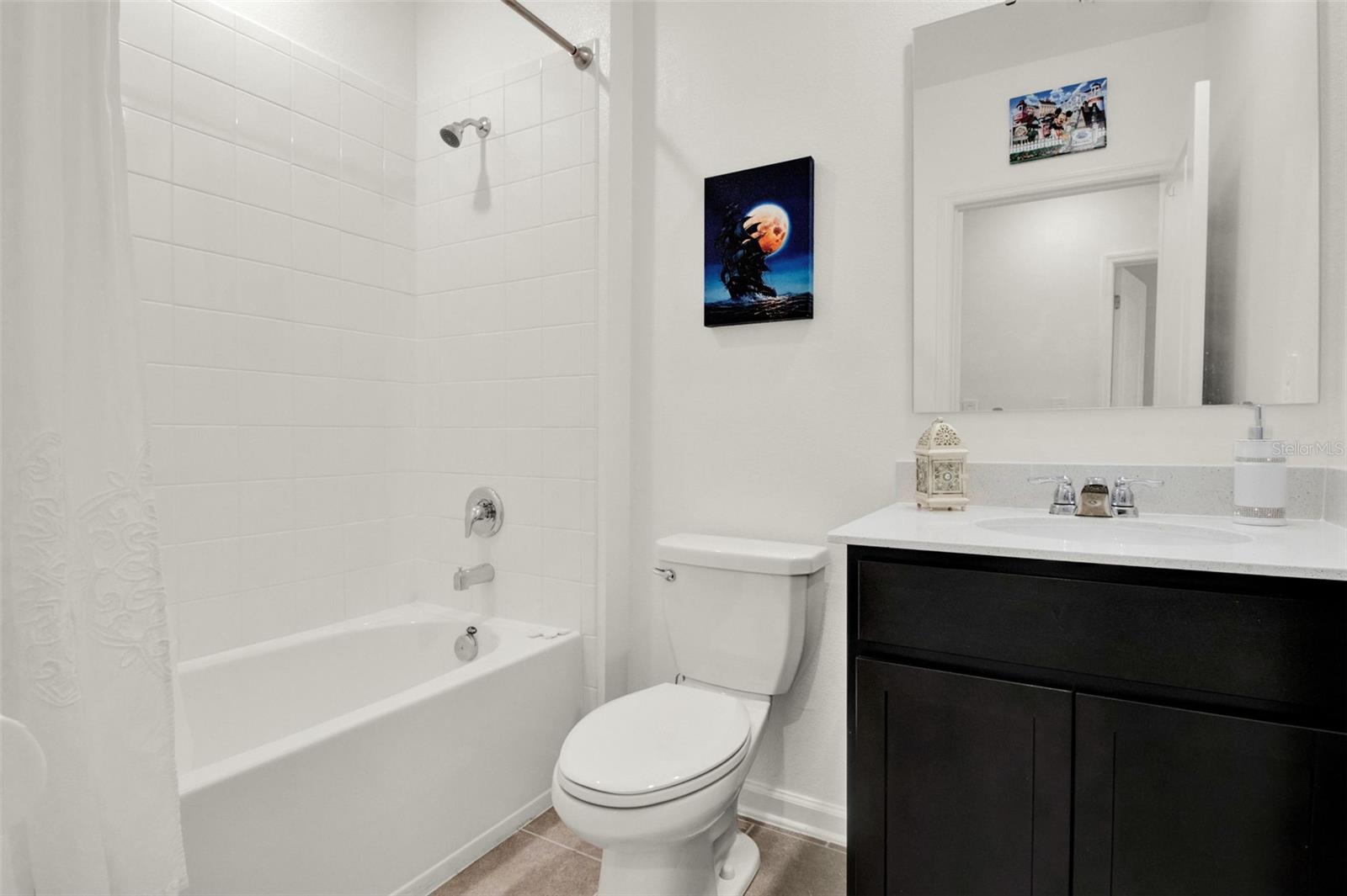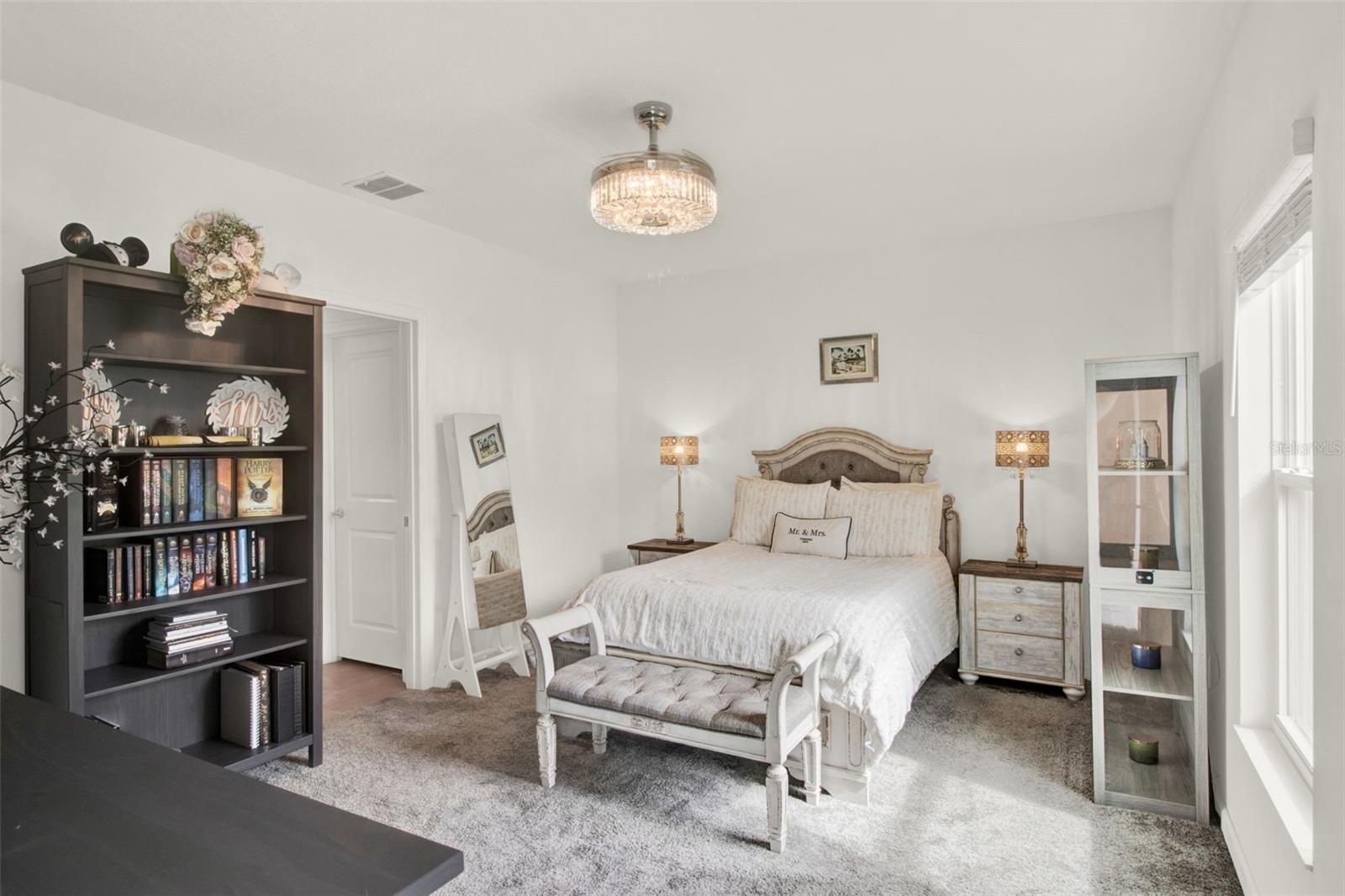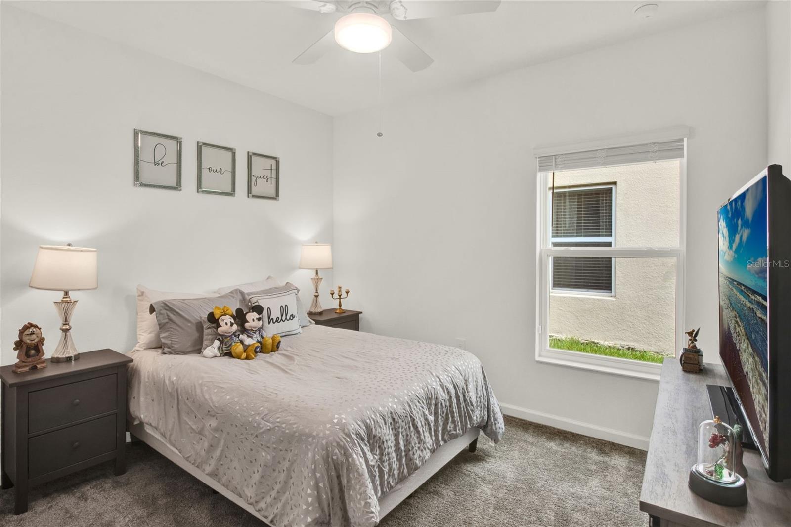 Welcome to 439 Cool Summer Lane in Davenport—a beautifully upgraded, nearly new home that blends comfort, convenience, and smart living. Only 3 years old, this open-concept design features a spacious kitchen with an oversized island, quartz countertops, updated backsplash, espresso-colored cabinets, GE stainless steel appliances, and ceramic tile floors throughout the main living areas. The family room and dining area flow seamlessly from the kitchen, creating an ideal space for entertaining. All bedrooms are carpeted and include ceiling fans and blinds, while the primary suite boasts a large walk-in closet with new built-in shelves, dual vanities, and a brand-new shower. Modern touches include a Ring doorbell and motion sensors, a SMART garage door opener with app connectivity, NEW LED exterior lighting, and solar panels for energy efficiency. The garage provides ample storage, extra ceramic tiles, and attic space. Outside, a fenced backyard offers privacy, while newly laid sod and an irrigation system enhance curb appeal. Washer and dryer are included, and internal pest control is simplified with a pest defense feed system. Adding to its appeal is the low HOA fee, along with easy access to community amenities and proximity to major shopping destinations like Posner Park, ensuring that entertainment, dining, and retail options are just minutes away. This move-in-ready home is packed with features to support a connected, comfortable lifestyle.