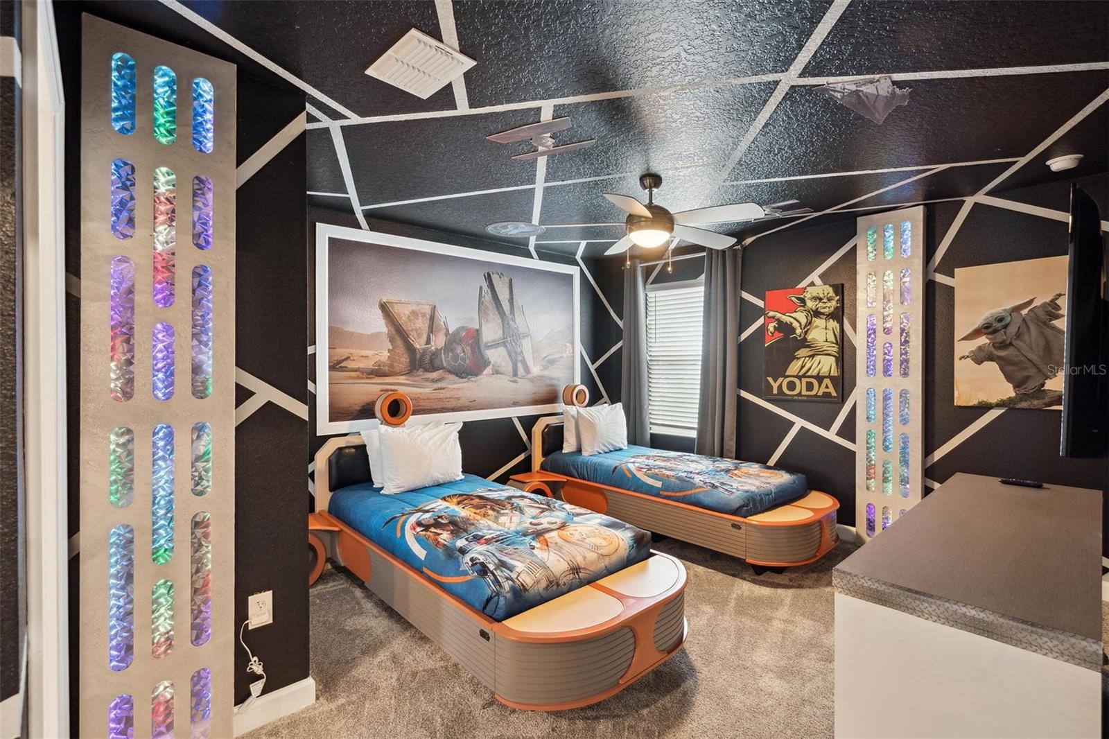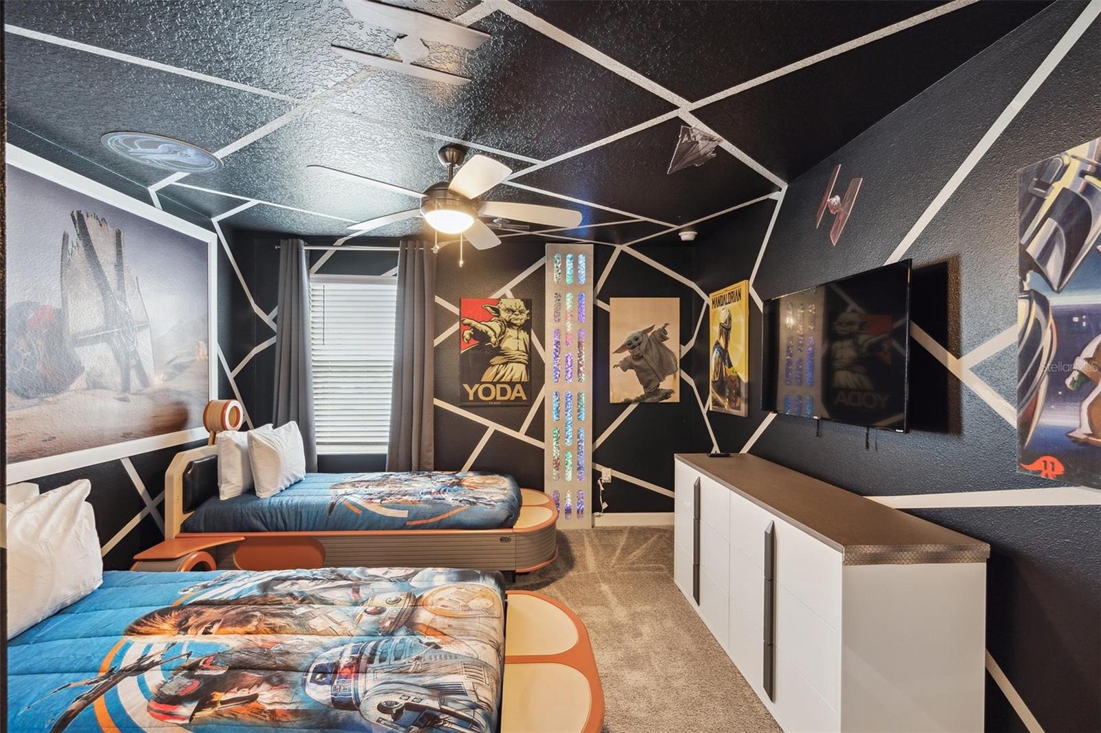 Fully Furnished Vacation Home with Private Pool – Minutes from Orlando Attractions! Discover the perfect blend of luxury, comfort, and investment potential with this turnkey, fully furnished short-term rental located just minutes from Central Florida’s top attractions. This exquisite resort-style home is designed to impress guests and maximize rental income from day one. At the heart of the home is a sleek, nice kitchen featuring stainless steel appliances and expansive counter space—ideal for quick breakfasts or gourmet dinners. The open-concept living and dining areas create a warm, inviting atmosphere perfect for entertaining or relaxing after a day of adventure. Endless entertainment awaits with a dedicated game room equipped with foosball and air hockey, while a Star Wars-themed loft offers a full cinematic experience, complete with a popcorn machine—perfect for unforgettable movie nights. Each bedroom is thoughtfully designed to combine comfort with flair, from the luxurious primary suite to the uniquely themed guest rooms that delight visitors of all ages. Step outside into your own private retreat. A heated pool and spa invite year-round enjoyment, while the spacious, screened-in patio offers the ideal setting for alfresco dining or lounging in the Florida sun. Whether you're looking for a high-performing vacation rental or a personal getaway, this home checks every box—location, amenities, and style. Don’t miss the opportunity to own a slice of paradise near the magic of Orlando!