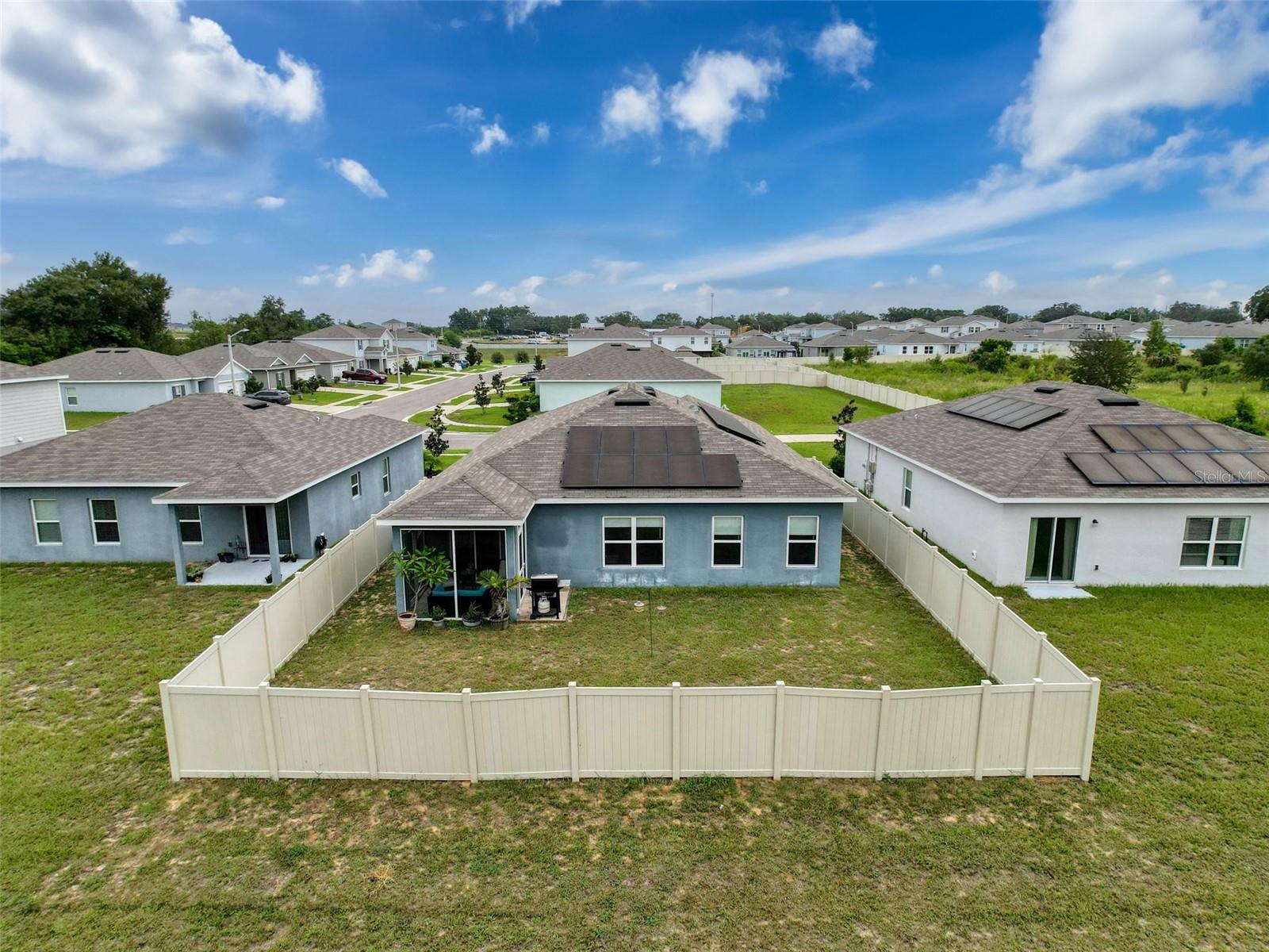 NO CDD and a LOW HOA of just $302 bi-annually make this 2021-built home, on a dead-end street, an incredible find, complete with a 10-year structural warranty and PAID OFF SOLAR PANELS-imagine the bragging rights when current peak summer electric bills have been under $121, offering impressive savings! This spacious 4-bedroom, 2-bath split floor plan offers an open layout with stylish ceramic tile flooring throughout the main areas, a Smart Nest thermostat and a Ring doorbell. The primary suite features an oversized walk-in closet and a beautiful en suite bath with dual vanities and a walk-in shower. The kitchen offers ample wood cabinetry, an island with a breakfast bar and a walk-in pantry. Start your mornings with coffee in the screened, covered lanai overlooking your vinyl-fenced backyard with NO REAR NEIGHBORS and a conservation view. Your new home is ideally situated between Orlando and Tampa, you’ll enjoy quick access to I-4, Posner Park shopping, Heart of Florida Hospital, Publix, and top attractions like Disney, Legoland, Universal, Bok Tower Gardens and local nature trails-offering the best of Central Florida. Be sure to explore the 3D walk-through link for an immersive virtual tour of this beautiful home! Schedule your showing today!