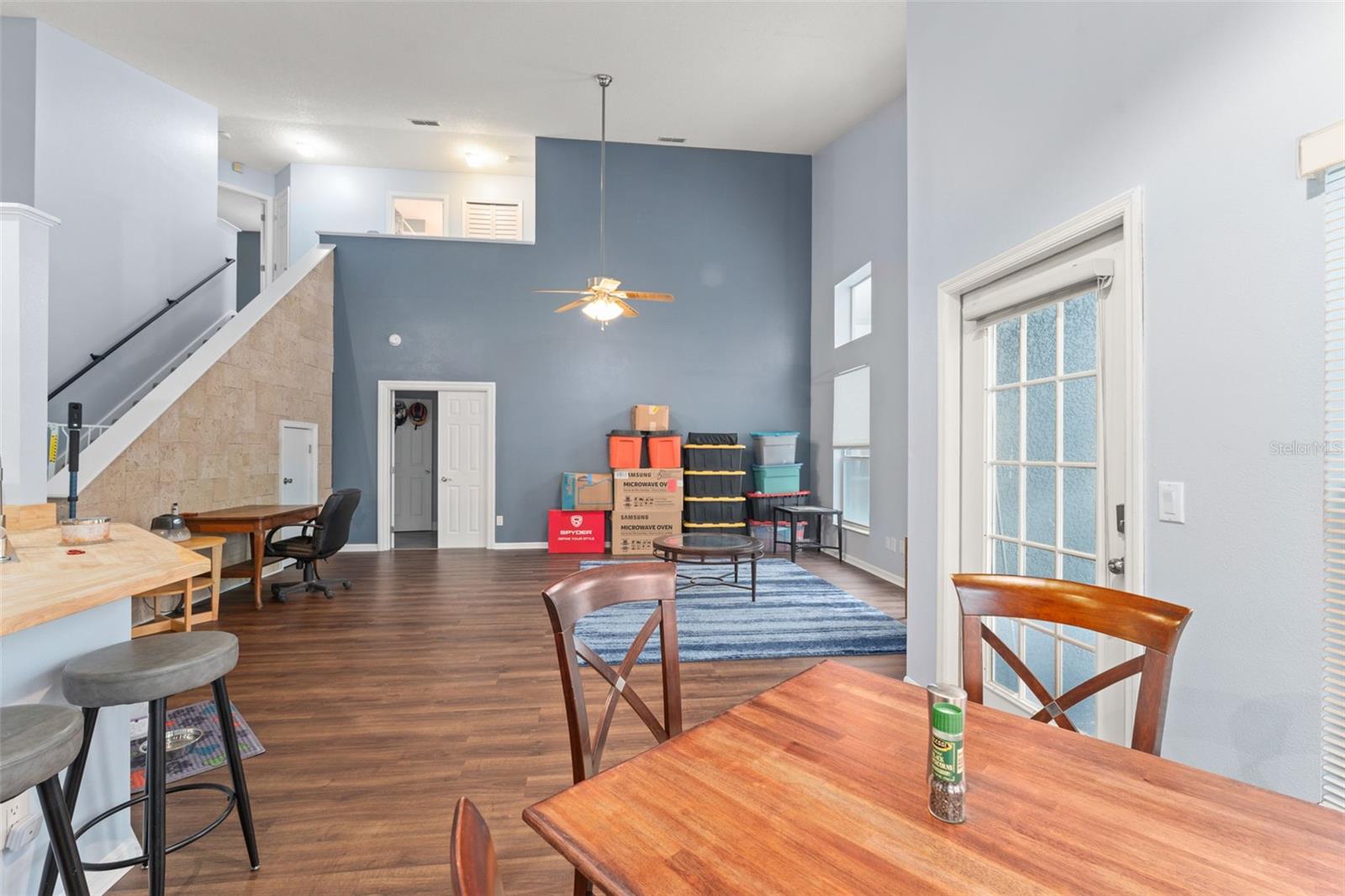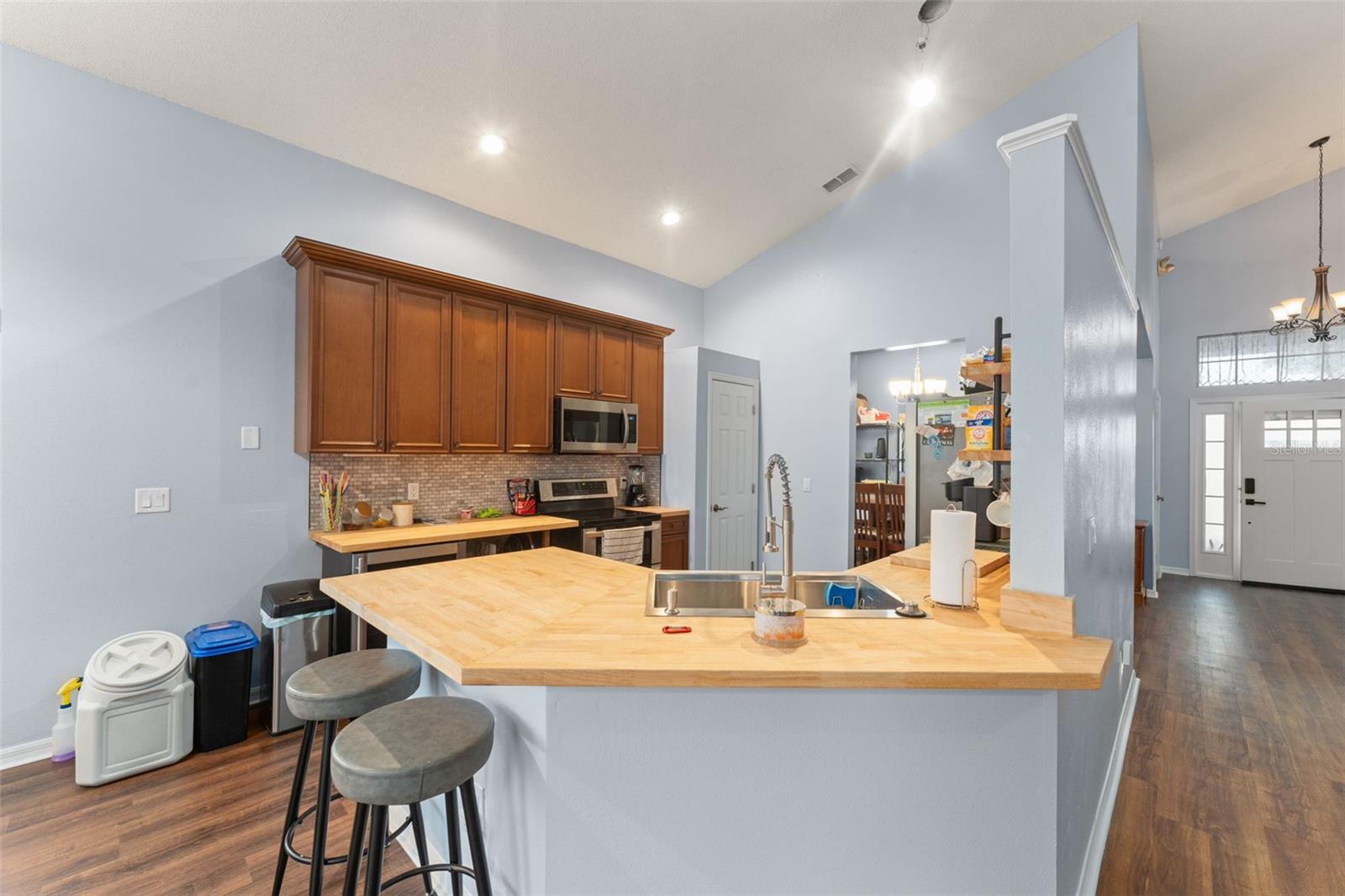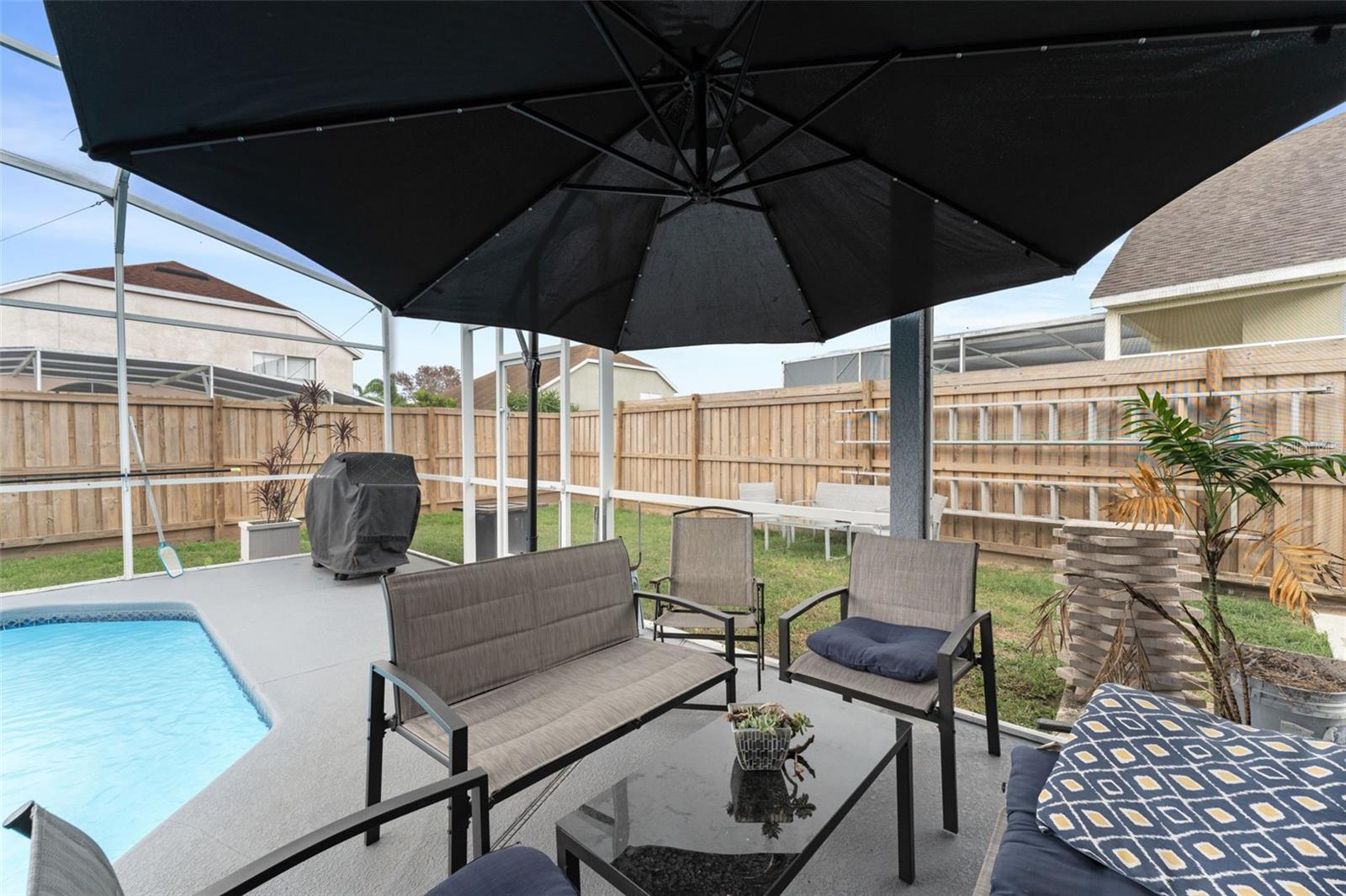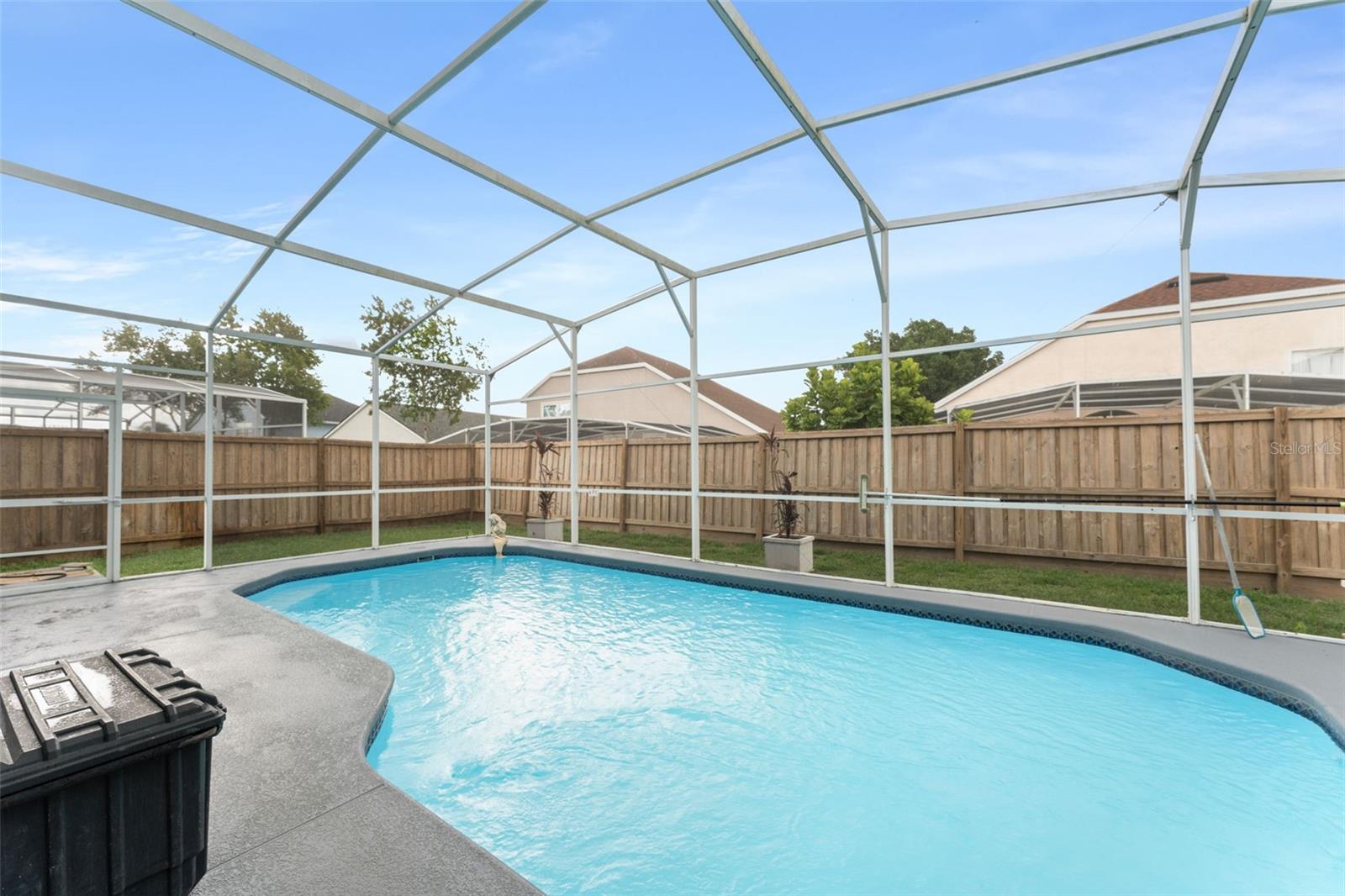 **This property qualifies for a closing cost credit up to $6,500 through the Seller’s preferred lender.** Welcome to a warm and inviting single-family retreat nestled in the heart of Davenport. This beautifully maintained 5-bedroom, 3-bathroom home with a 2-car garage offers the perfect blend of space, style, and comfort, creating an ideal setting for both quiet moments and joyful gatherings. As you step through the elegant front door flanked by dual sidelights, you're greeted by a welcoming foyer that offers a sneak peek of the heart of the home. To the right, the formal dining room boasts a tray ceiling and easy access to the kitchen, making it perfect for special occasions or intimate dinners. To the left, a hallway leads to the garage, laundry room, and a convenient full bathroom with a stand-in shower—ideal for guests or busy mornings. The renovated kitchen is a true centerpiece, featuring warm wood cabinetry, butcher block countertops, stainless steel appliances, and a breakfast bar perfect for casual meals or morning coffee. Just beyond the kitchen lies a sunlit breakfast nook surrounded by windows that frame lovely views of the patio and pool. Throughout the home, you'll find new flooring both upstairs and downstairs, adding a fresh, modern touch and complementing the home's inviting character. High ceilings and an open layout give the living room a sense of airiness and space, with large windows that pour in natural light. An accent wall draws the eye to the staircase, which leads to the second floor, where you'll find three cozy, carpeted bedrooms—all with built-in closets—and a full bathroom with a tub/shower combo. The primary suite is tucked just off the living room on the main floor, offering a peaceful retreat with French doors, backyard views, and a spa-like ensuite featuring a drop-in soaking tub, separate walk-in shower, and dual vessel sinks. Step outside and discover your personal oasis. The screened-in inground pool invites you to relax and unwind, while the spacious patio area is perfect for entertaining. Beyond the screen, a fully fenced backyard with a grassy area provides a safe play space or the perfect canvas for your garden dreams. This home is located in a short-term rental community, making it an excellent option not only as a primary residence or vacation home, but also as a smart investment property. From its thoughtful layout to its stylish upgrades, warm finishes, and outdoor sanctuary, 432 Downing Circle is more than just a house—it's a place to call home.