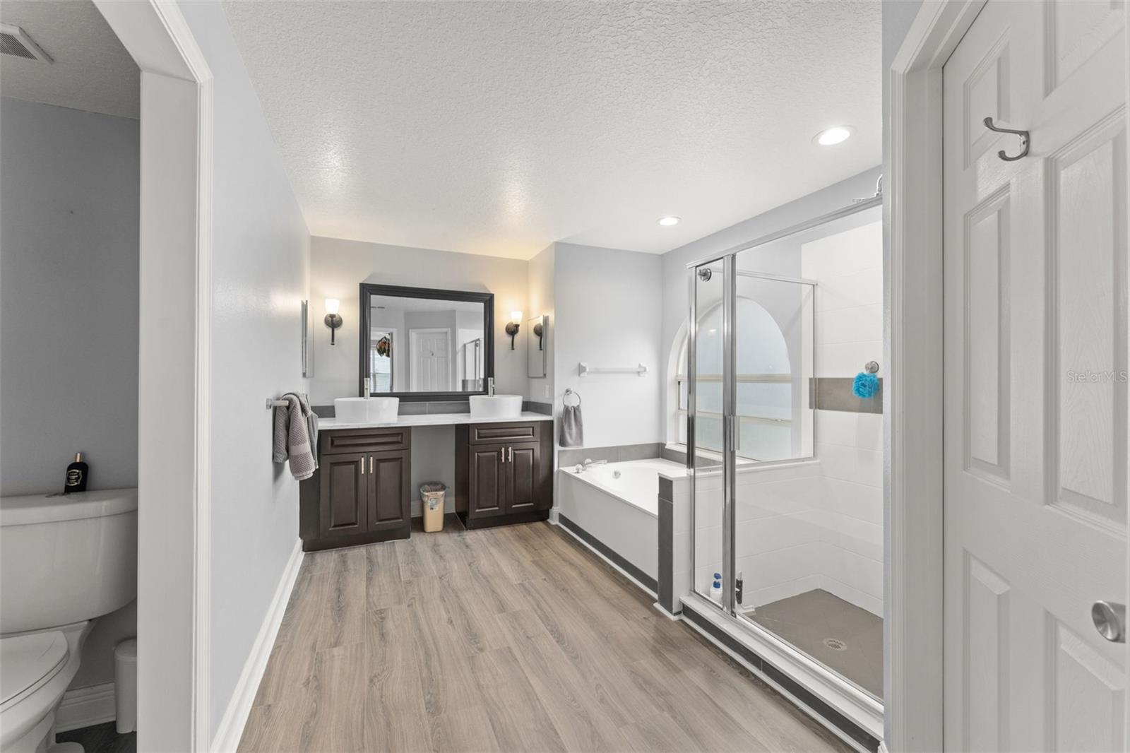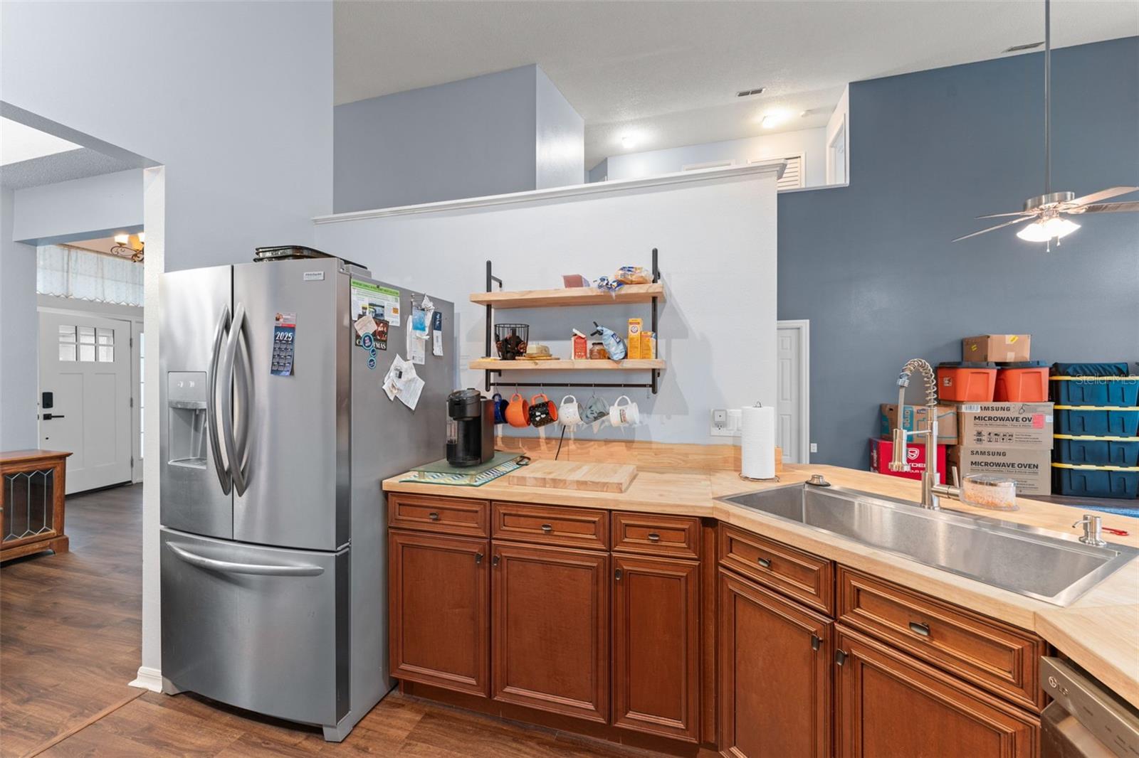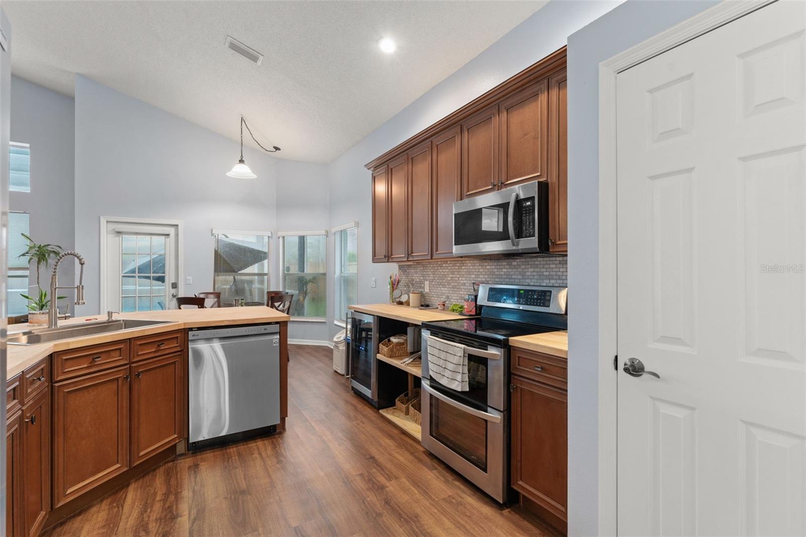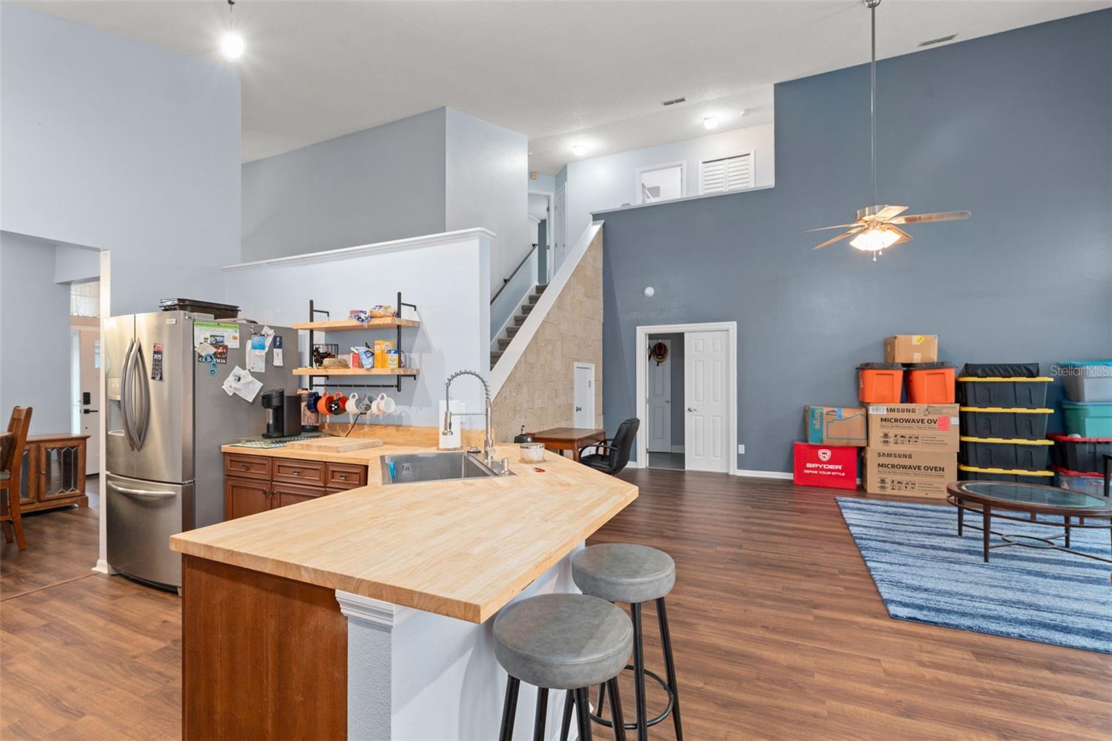 **This property qualifies for a closing cost credit up to $6,500 through the Seller’s preferred lender.** Welcome to a warm and inviting single-family retreat nestled in the heart of Davenport. This beautifully maintained 5-bedroom, 3-bathroom home with a 2-car garage offers the perfect blend of space, style, and comfort, creating an ideal setting for both quiet moments and joyful gatherings. As you step through the elegant front door flanked by dual sidelights, you're greeted by a welcoming foyer that offers a sneak peek of the heart of the home. To the right, the formal dining room boasts a tray ceiling and easy access to the kitchen, making it perfect for special occasions or intimate dinners. To the left, a hallway leads to the garage, laundry room, and a convenient full bathroom with a stand-in shower—ideal for guests or busy mornings. The renovated kitchen is a true centerpiece, featuring warm wood cabinetry, butcher block countertops, stainless steel appliances, and a breakfast bar perfect for casual meals or morning coffee. Just beyond the kitchen lies a sunlit breakfast nook surrounded by windows that frame lovely views of the patio and pool. Throughout the home, you'll find new flooring both upstairs and downstairs, adding a fresh, modern touch and complementing the home's inviting character. High ceilings and an open layout give the living room a sense of airiness and space, with large windows that pour in natural light. An accent wall draws the eye to the staircase, which leads to the second floor, where you'll find three cozy, carpeted bedrooms—all with built-in closets—and a full bathroom with a tub/shower combo. The primary suite is tucked just off the living room on the main floor, offering a peaceful retreat with French doors, backyard views, and a spa-like ensuite featuring a drop-in soaking tub, separate walk-in shower, and dual vessel sinks. Step outside and discover your personal oasis. The screened-in inground pool invites you to relax and unwind, while the spacious patio area is perfect for entertaining. Beyond the screen, a fully fenced backyard with a grassy area provides a safe play space or the perfect canvas for your garden dreams. This home is located in a short-term rental community, making it an excellent option not only as a primary residence or vacation home, but also as a smart investment property. From its thoughtful layout to its stylish upgrades, warm finishes, and outdoor sanctuary, 432 Downing Circle is more than just a house—it's a place to call home.