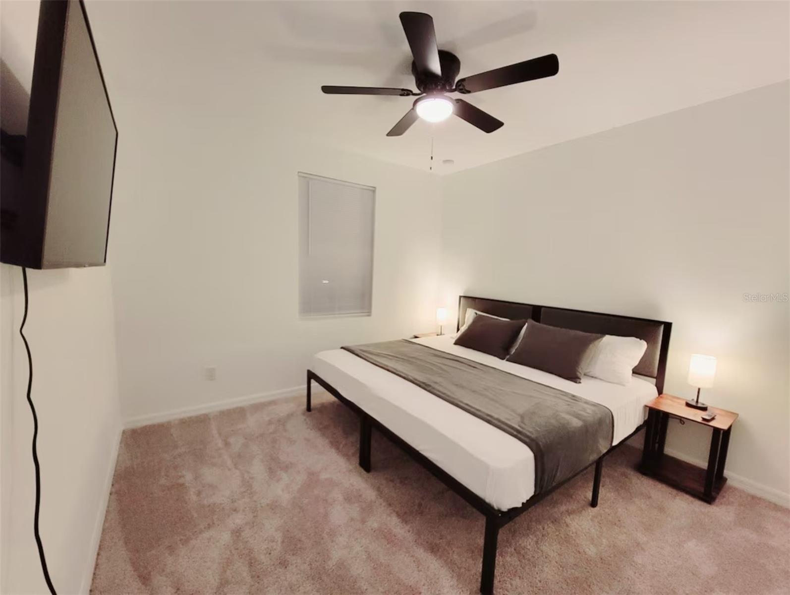 This gorgeous two-story home is located in the highly desirable Champions Gate area and features an exceptional layout with five bedrooms and four bathrooms, including two luxurious master suites. Thoughtfully designed for modern living, this home boasts a welcoming foyer that opens to a private den, perfect for a home office or study. The open-concept kitchen is beautifully upgraded with 42-inch gray cabinets, stainless steel appliances, and a large quartz-topped island that seamlessly connects to the great room and dining area, making it the ideal space for entertaining. The main living areas feature durable and stylish tile flooring, while the bedrooms are fitted with upgraded plush carpet for added comfort. On the main floor, you’ll find a guest bedroom and a full bathroom, offering convenience and flexibility for visitors or extended family. The great room flows naturally into the lanai, creating an inviting indoor-outdoor living experience. Upstairs, the home features two master suites, each with a spacious walk-in closet and private en-suite bathroom, providing a luxurious retreat for homeowners or extended family members. Two additional guest bedrooms, a shared full bathroom, and a versatile loft space complete the second level, offering endless possibilities for a secondary living area, media room, or playroom. A dedicated utility room on the second floor adds convenience to daily chores. This home is part of the Milan Essential Collection and offers access to exceptional community amenities, including a resort-style pool, fitness center, tennis courts, a playground, and a beach volleyball court. Conveniently located near Posner Park, Champions Gate Village, grocery stores, and world-renowned attractions like Walt Disney World, this property combines luxury, comfort, and convenience. With its premium upgrades, thoughtful design, and vibrant community setting, this home is the perfect place to create lasting memories.