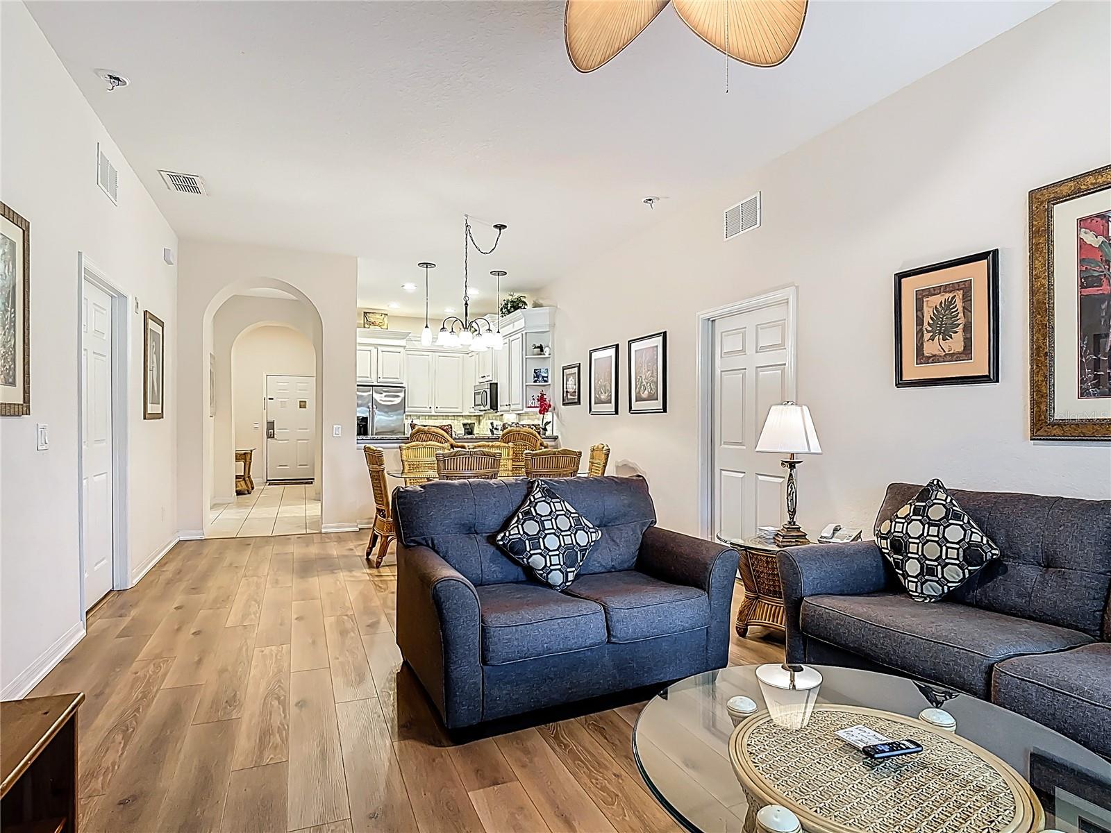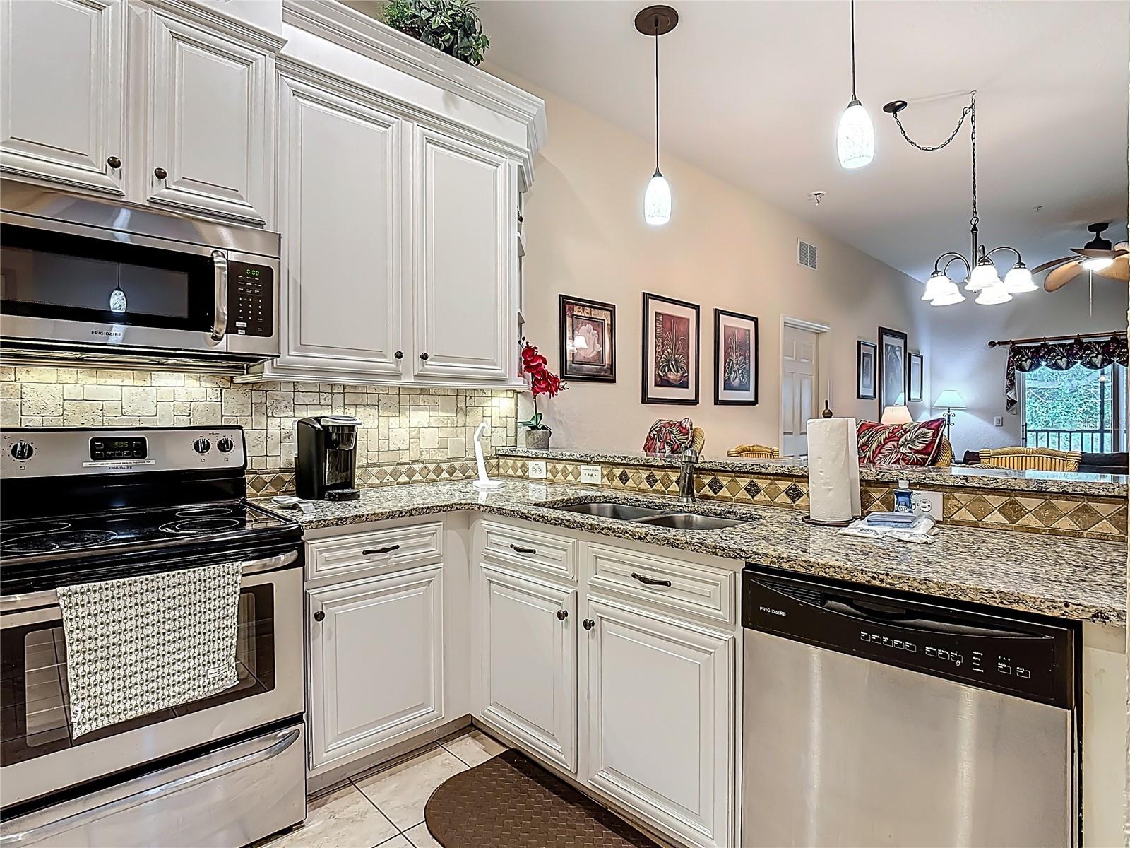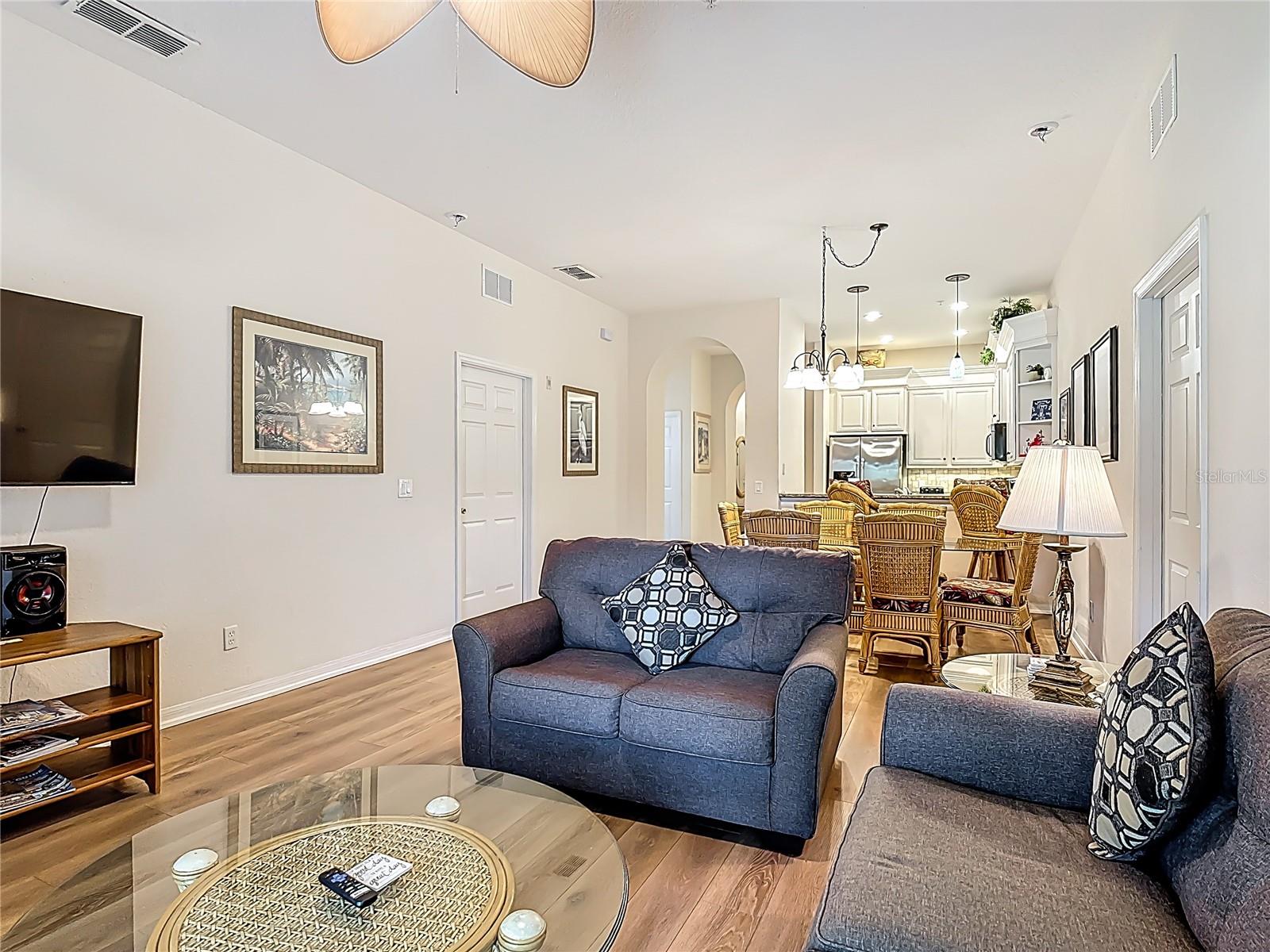 Welcome to Bahama Bay Resort & Spa! - Updated Price! Don't miss out on this one! This stunning GRAN BAHAMA 3 bedroom 2-bathroom 1655 square ft condo, located on the second floor offers a blend of vacation retreat and investment potential. This end unit is fully furnished and thoughtfully decorated offering a true Caribbean-style getaway while being just minutes from Disney! Spacious open concept living, the foyer effortlessly connects the living room and dining space, also a custom fully remodeled kitchen has everything guest will need while they enjoy the upgraded features including granite countertops, tile backsplash, cabinets with custom crown molding, under cabinet lighting and stainless-steel appliances. The large primary suite can’t be beat with en-suite bathroom complete with dual sinks, large garden tub, walk in shower, with lots of cabinets under the sinks, private balcony, ceiling fans and flat screen TV. Two large bedrooms each tastefully decorated connected with a jack and Jill bathroom with dual sinks, garden tub and walk in shower, ceiling fans, and TV. There is also a laundry room with side-by-side washer & dryer! Enjoy two private screened-in balconies the unit provides with serene atmosphere overlooking lush garden. Enjoy resort-style amenities Clubhouse, restaurant, fitness center, playground, 4 heated pools, a splash pad, 6 Jacuzzis, sporting facilities, beautiful walking paths, fishing, private dock, tennis, volleyball, pool tables, shuffleboard and 24 hour gated security. This property is designed for short-term rentals and can be managed by the resort or privately. This unit is turnkey and ready for guests, no rentals over six months, Property management is on site. HOA fee includes Wi-Fi, cable TV, water, sewer, trash removal, gated security, exterior pest control, outside maintenance of property. Recent upgrades, including a new HVAC system and durable laminate flooring throughout. The Resort & Spa is conveniently located near Polo Park East Golf Course, 10 miles from Walt Disney World, with plenty of local dining and shopping nearby. Disney Springs offers over 100 shops and 60 restaurants along with daily and nightly entertainment. Schedule your private tour today—this one won’t last long- Sellers are Motivated!