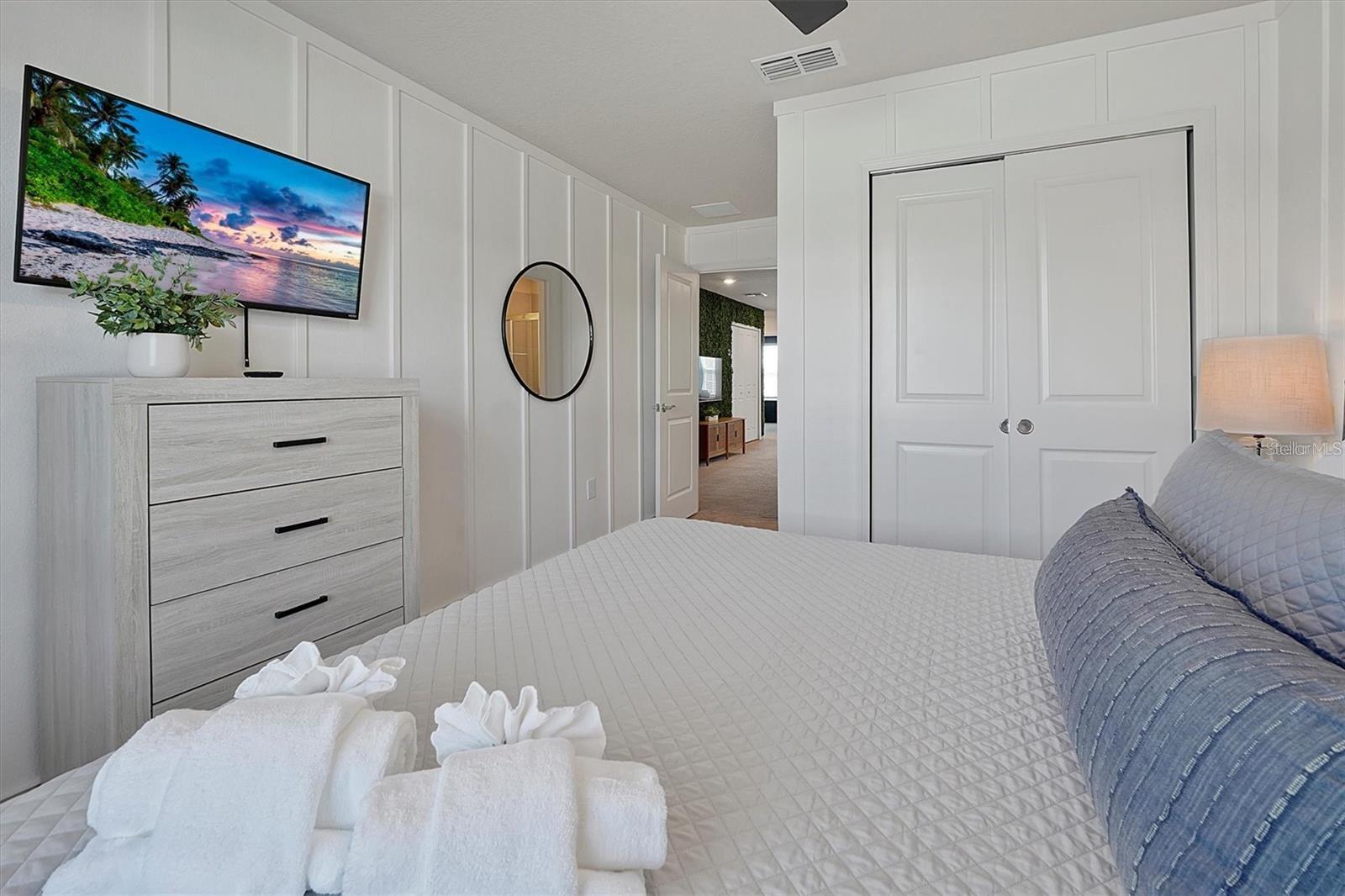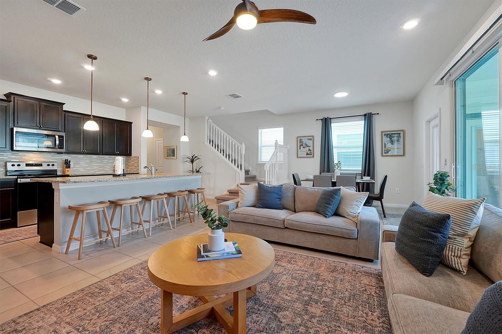 CORNER UNIT!! This FULLY FURNISHED 5 bedroom 4.5 bath townhome is located in sought after Windsor Island Resort, just a SHORT WALK FROM THE CLUBHOUSE. *Turnkey Ready* for immediate occupancy and rental. The property is fully equipped and professionally designed with thematic rooms, providing a welcoming "home away from home" experience. Its modern open floor plan is perfect for hosting gatherings, whether intimate or for larger groups. Step outside to the covered lanai, ideal for year-round enjoyment of the Florida lifestyle, and relax by the sparkling, screened pool with plenty of room for sunbathing. The resort amenities are truly exceptional, featuring a grand clubhouse with a guest check-in desk, a state-of-the-art gym, a resort-style pool complete with a lazy river, a splash pool, an indoor/outdoor restaurant and bar, an outdoor fire pit, sports courts, and a playground. Don’t miss this incredible opportunity to own your own vacation rental home! Call me today to schedule your showing!