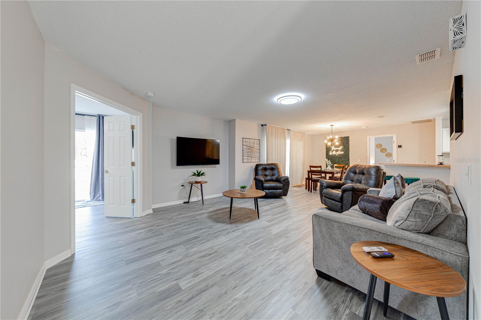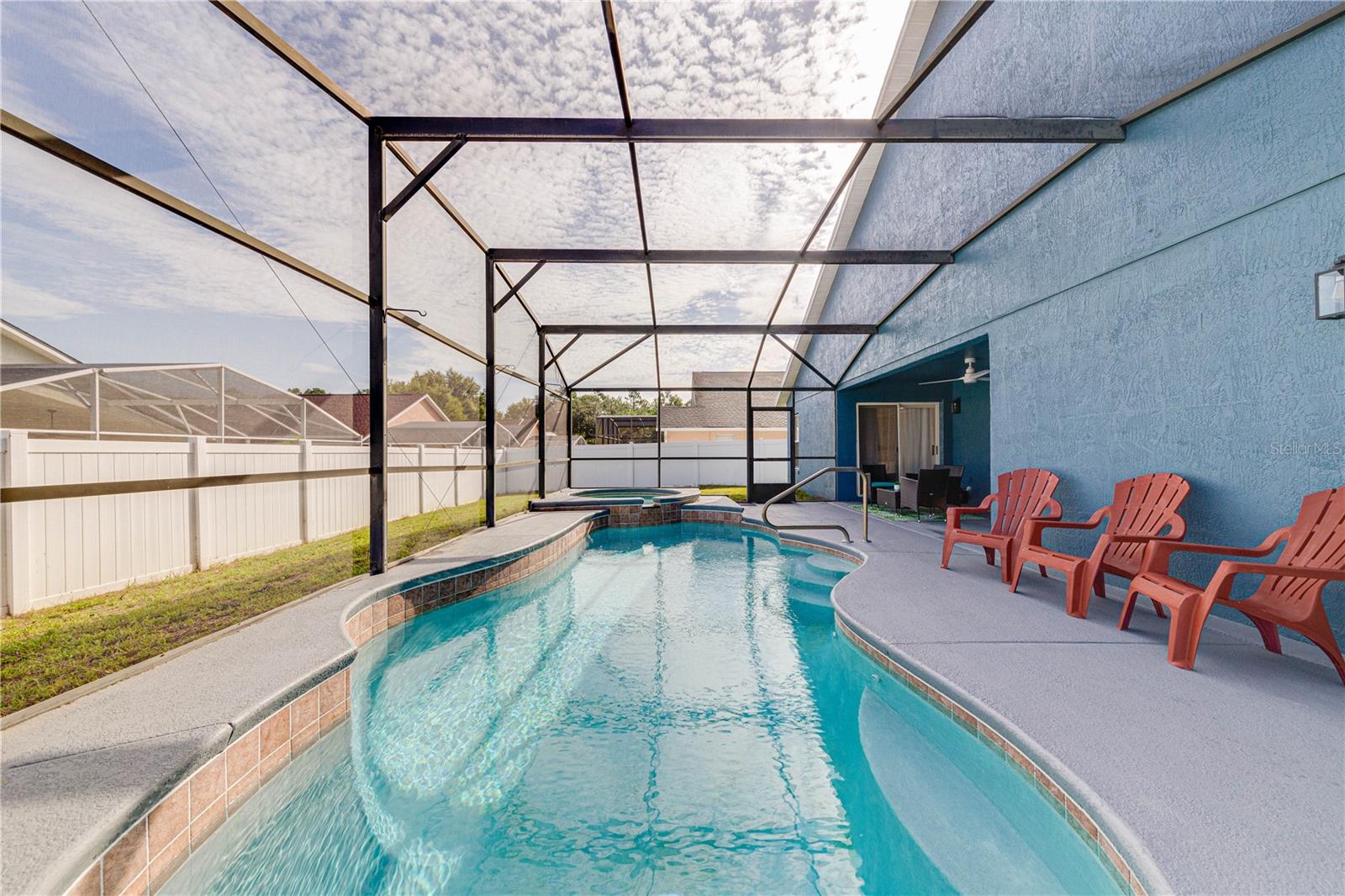 Modernized, Turnkey, 4/3 Pool Home – Fully Furnished, Airbnb-Ready & Close to Disney! Welcome to this beautifully updated and fully-furnished 4-bedroom, 3-bathroom home, ideally located just 15 minutes from Walt Disney World and numerous championship golf courses. Perfectly situated on a spacious quarter-acre corner lot in a quiet and established neighborhood, this one-story gem is move-in or rent-ready—with everything included to begin generating short-term rental income immediately. Step into your private Florida retreat with a screen-enclosed, heated/cooled pool and spa, expansive wrap-around fenced backyard, and a covered patio perfect for entertaining or enjoying the sunset. The home offers a rare blend of resort-style comfort and modern accessibility, making it ideal for both families and guests with mobility needs. Interior Highlights: Fully furnished with chic, modern décor ideal for short-term rentals or vacation use Open-concept layout with combined living, dining, and kitchen space Chef’s kitchen with breakfast bar and dedicated coffee nook Smart TVs in all 4 bedrooms and the living room Fiber Optic Internet perfect for streaming, gaming, or working remotely Living room with a queen-size sleeper sofa Ceiling fans with remotes throughout Bedroom Layout: Two en suite primary suites, both with direct access to pool deck First suite features an oversized garden tub, walk-in shower, and modern boho finishes. Second suite is mobility accessible, featuring a Heated Safe Step Walk-In Therapy Tub with water jets, lights, and remote control, plus a queen adjustable bed base. Third bedroom includes a stylish LED sleigh bed and LED accessories Fourth bedroom has full-size bunk beds, comfortably sleeping 2–3 guests Accessibility & Safety Features: Portable mobility ramp Grab bars in both en suite bathrooms and pool entrance Adjustable base bed and Safe Step therapy tub in second primary suite Outdoor Features: Screened-in pool and spa with seating area and sunset views Large fenced-in backyard on a corner lot—ideal for large families or pets Additional Info: Turnkey vacation rental—Airbnb-ready with rental history and setup This property is a rare find—whether you're looking to own a vacation home near Orlando's top attractions or invest in a profitable short-term rental. With over $30k in upgrades and amenities included, all you need to bring is your suitcase! *furniture is not included in purchase price but can be negotiated.