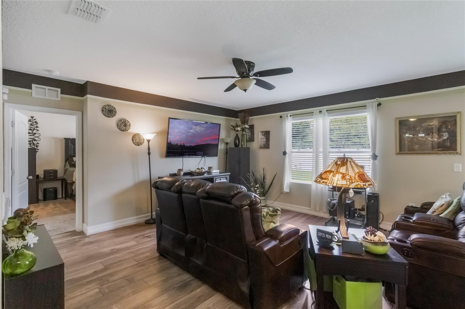 Welcome to this stunning 5-bedroom, 3.5-bath home nestled on a peaceful cul-de-sac in one of Davenport’s most desirable communities. Situated across from a lush green space with no front neighbors, this home offers both privacy and picturesque views. Step inside to beautiful wood-look tile flooring and an open-concept kitchen that seamlessly flows into the main living area—perfect for entertaining. The master suite is conveniently located on the first floor, offering comfort and convenience, while upstairs you’ll find a spacious bonus room ideal for a playroom, home office, or additional family space. With generously sized bedrooms and plenty of room to spread out, this home is designed for comfortable family living. Enjoy access to a gorgeous community pool and quiet surroundings that feel like a retreat—but you’re just 3.5 miles from I-4, providing quick access to Lakeland, Orlando, and all the nearby theme parks. Additional highlights include a roof less than two years old, excellent curb appeal, and a welcoming, family-friendly atmosphere. Don’t miss your chance to own this exceptional home in a prime location! Spacious 5-Bedroom Home on Cul-de-Sac in Beautiful Davenport Community
