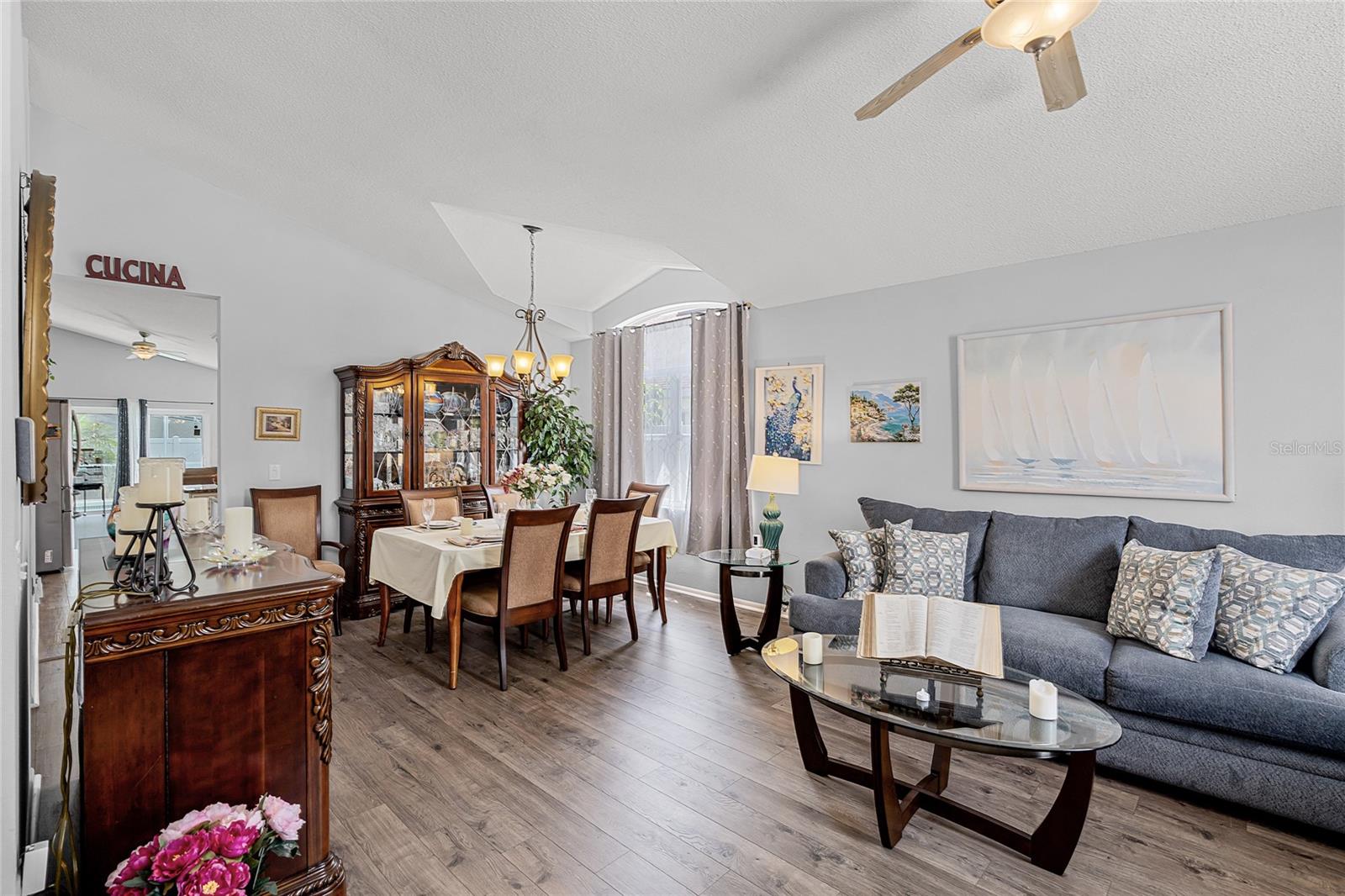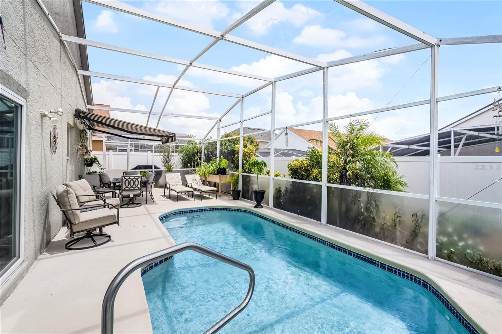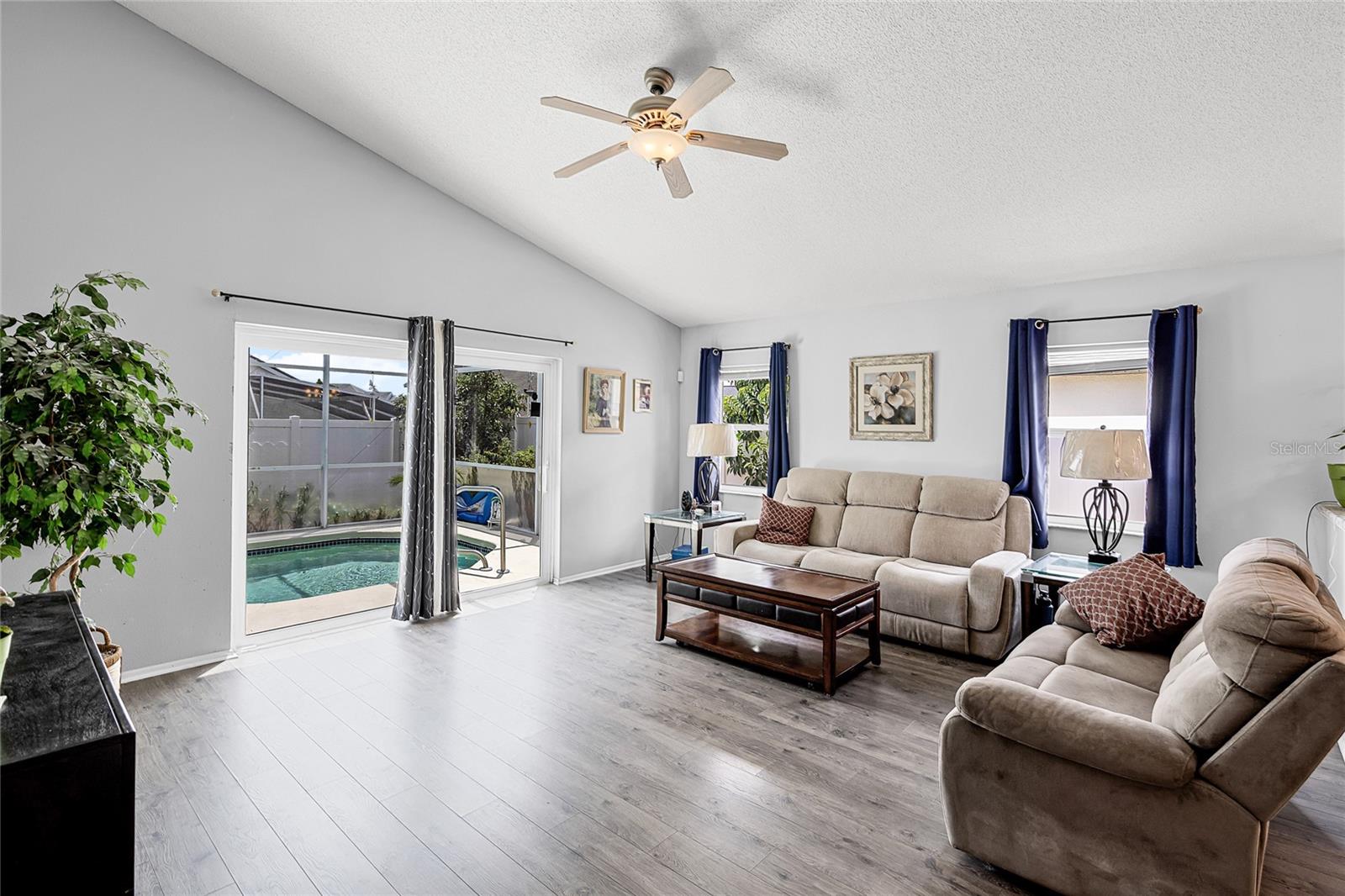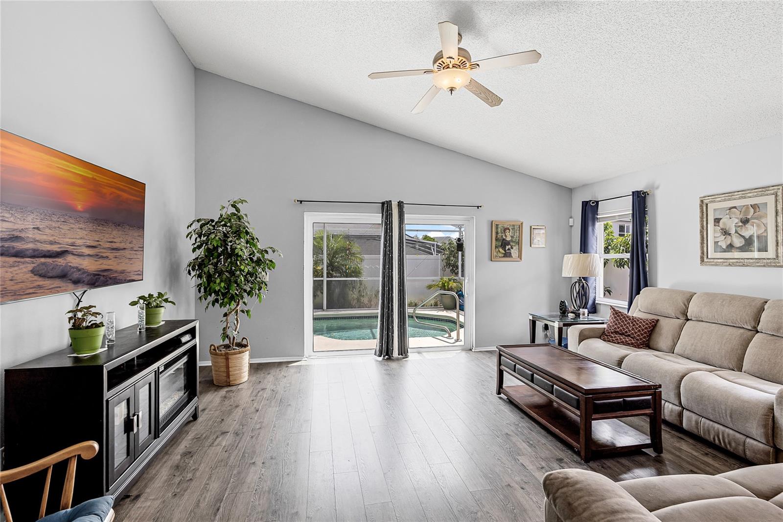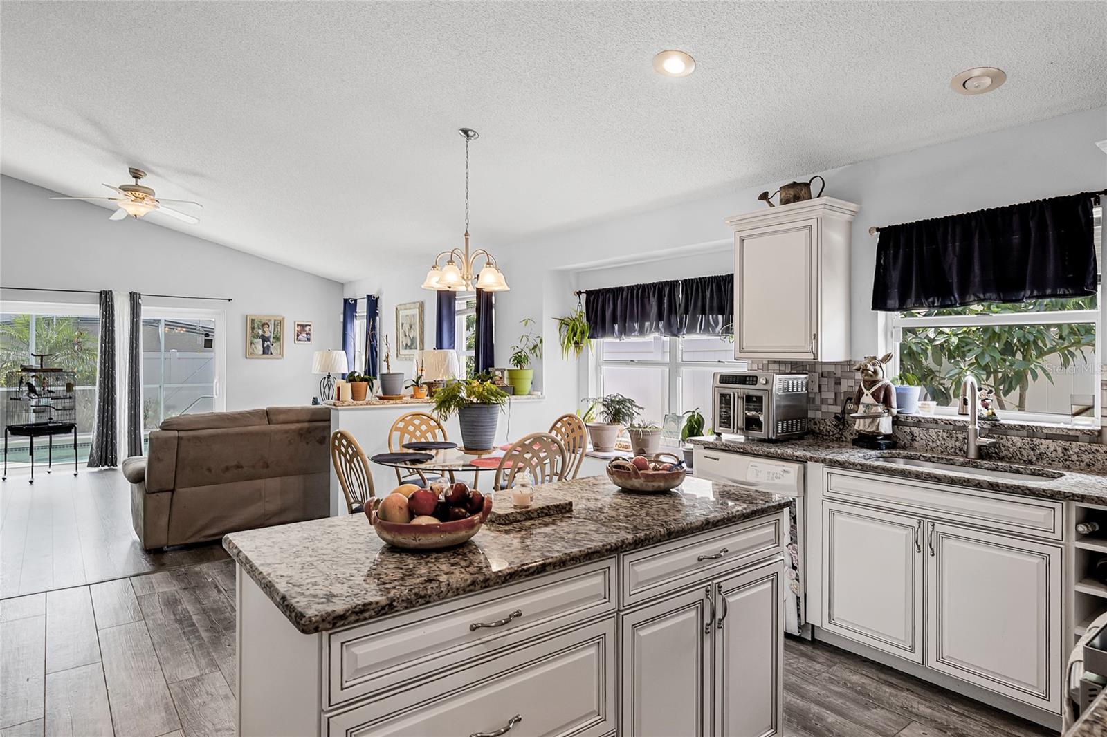 Is there a 4-bed home in Davenport with a pool and solar under $375K? Yes: this updated one-story home in Lake Davenport Estates has it all—paid-off solar panels, a private screened pool, and beautifully renovated kitchen and bathrooms. Set on a 5,611 square foot lot with mature landscaping and vinyl fencing, this home blends comfort, energy savings, and location. Inside, enjoy 1,908 square feet of living space with vaulted ceilings, a spacious 23x13 family room, a 16x18 living room, and a dining area that connects seamlessly to the open kitchen. The kitchen features a large island, breakfast bar, pantry, solid wood cabinets, and solid surface counters. The layout is ideal for gathering, with plenty of space and natural light. The primary suite offers a 14x14 bedroom with a walk-in closet and an updated bath featuring dual sinks and a walk-in shower. Three additional bedrooms each have built-in closets and share a fully updated guest bath. Additional interior features include ceramic tile, laminate, carpet, window treatments, and ceiling fans throughout. The laundry room is located inside, and all appliances—including washer, dryer, refrigerator, and water filtration system—are included. The private screened pool is solar heated with lighting and surrounded by a fully fenced yard. Fruit trees and mature landscaping create a serene outdoor retreat. A 2-car garage with opener adds storage and convenience. Lake Davenport Estates offers low HOA fees at just $41/month and includes access to a community pool, playground, tennis courts, sidewalks, and basketball. Located near shopping, dining, and the Disney corridor, this property is ideal for primary residents, vacation homeowners, or investors. Make your appointment now to make this yours.