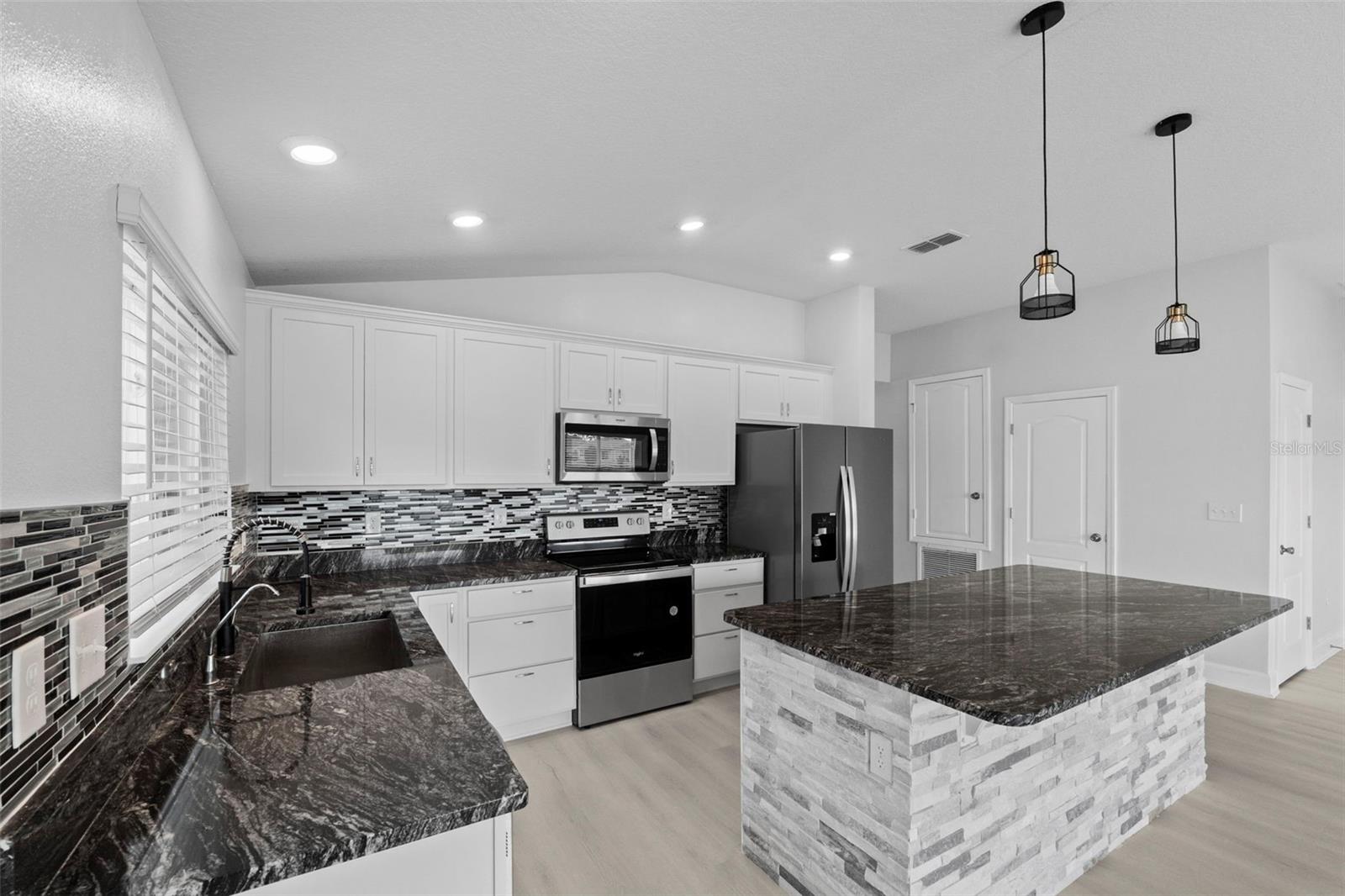 One or more photo(s) has been virtually staged. Escape to your dream home at 1351 Pompay Drive, a stunning waterfront property located in the highly desirable Tivoli Reserve community in Davenport, Florida. This 4-bedroom, 2-bathroom home, newly renovated in 2024, is an absolute masterpiece of modern design and comfort, offering an exceptional living experience. Step inside and be greeted by an open-concept layout bathed in natural light, showcasing the exquisite attention to detail. The heart of the home is the beautifully upgraded kitchen, a chef's delight featuring white shaker cabinets, elegant granite countertops, and a designer tile backsplash. It is equipped with brand-new, stainless-steel appliances, making it as functional as it is beautiful. The entire home is adorned with highly resilient luxury vinyl plank flooring, providing both durability and a sleek, contemporary feel. Each room is thoughtfully appointed with ceiling fans and light fixtures, creating a comfortable and inviting atmosphere. Beyond the impeccable interior, the true highlight of this home is the breathtaking lakefrontage, offering incredible, serene views from your own backyard. Imagine sipping your morning coffee or unwinding in the evening while enjoying the peaceful waterfront scenery. Location is everything, and this property delivers. Situated just 15 minutes from Walt Disney World, and a short drive to other major attractions like Universal Studios and SeaWorld, it's a prime location for those seeking convenience and entertainment. The Tivoli Reserve community provides residents with access to a sparkling community swimming pool, perfect for Florida's sunny days. Additionally, you'll find yourself close to a variety of local amenities, including nearby golf courses, a Publix plaza with shops and restaurants, and a 7-Eleven. Call today to schedule a visit!
