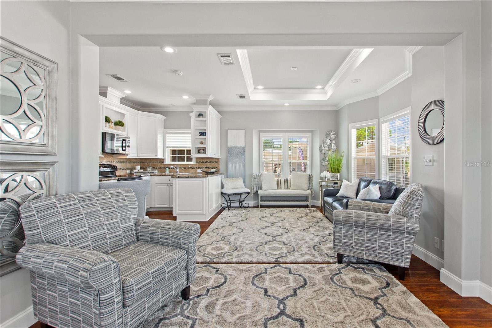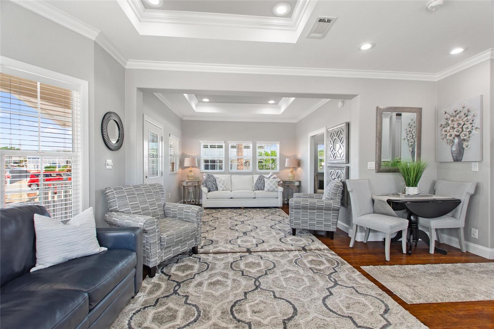 EXPERIENCE THE LIFESTYLE AT DEER CREEK RV GOLF & COUNTRY CLUB a 55+ community! Before you read on about the lifestyle take a moment to view the interior photos of this amazing and outrageously upgraded home!!! Deer Creek Resort offers a manned gate, an 18 hole Executive golf course, multiple clubhouses and within the main clubhouse is a Pro Shop, restaurant, event center for ongoing social events, a large pool and spa, Tennis, and Shuffleboard. In addition the main clubhouse this magnificent home, located within the Partridge Pines neighborhood, has its own clubhouse with pool and social activity room located almost across the street from this property. Both clubhouses are within walking distance from this property. At Deer Creek YOU OWN THE LAND and the HOA fees are very low. NOW LETS TALK ABOUT THIS AMAZING HOME! Beautifully decorated and in model perfect condition, high trey ceilings with recessed lighting, a modern kitchen with solid wood cabinetry, beautiful bathrooms with lots of solid wood cabinetry, Butlers pantry, large bedrooms with a sitting room off the Primary bedroom, den, and inside utility room. As you enter there is a family room and living room. Lots of space for you and or your guests. Beautiful Laminate flooring and crown molding throughout. The exterior of this home has insulated windows and doors and maintenance free vinyl siding. Deer Creek community is located very close to major shopping, (Posner Village), Advent hospital, an abundance of medical offices, restaurants, Hwy # 27 and I-4. Disney is located just a exits off I-4.