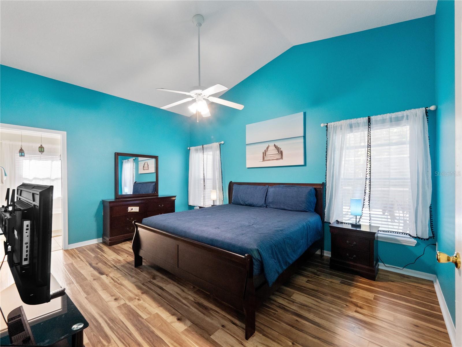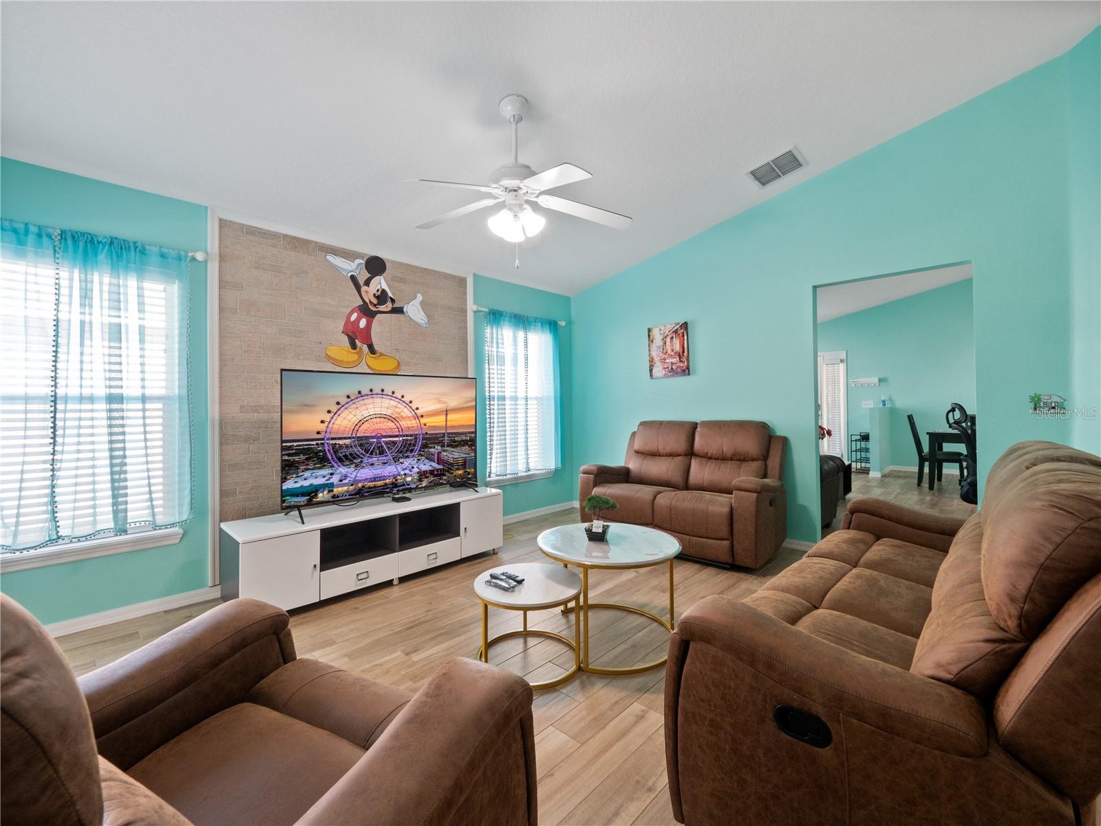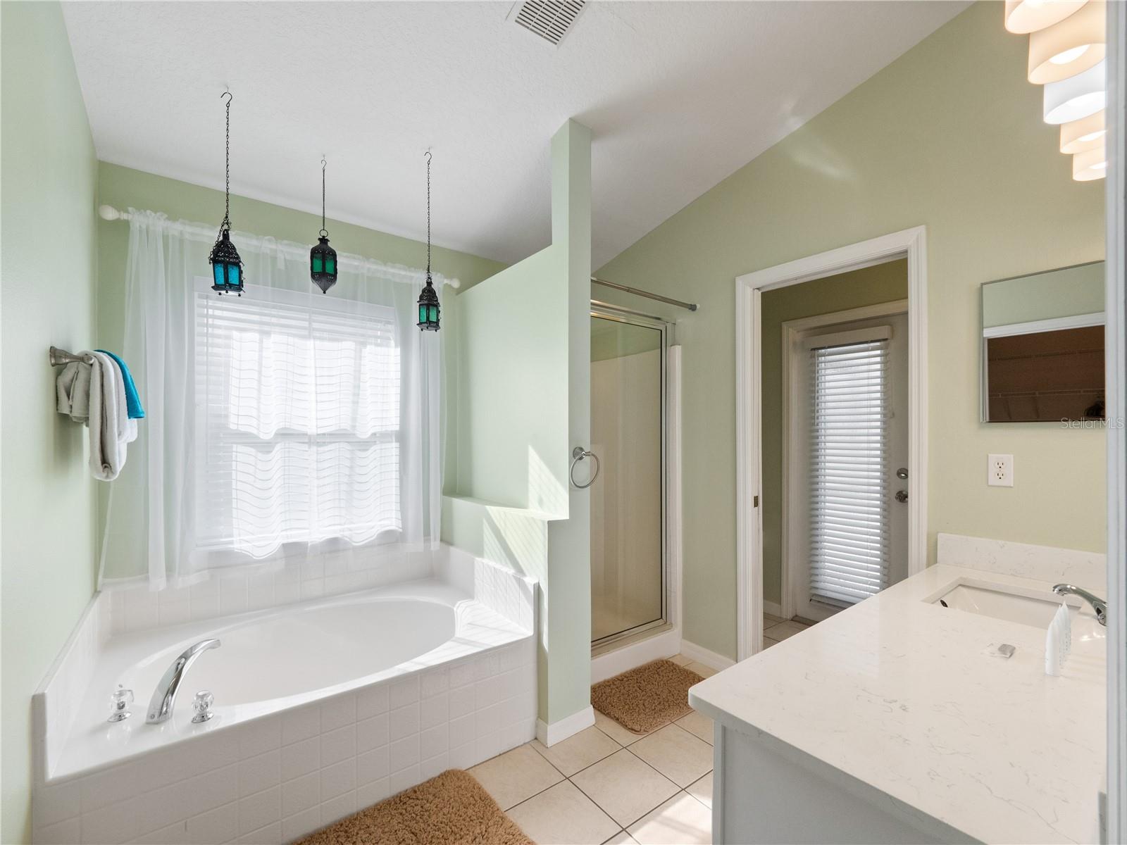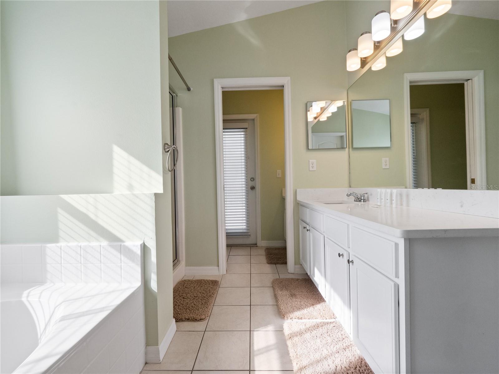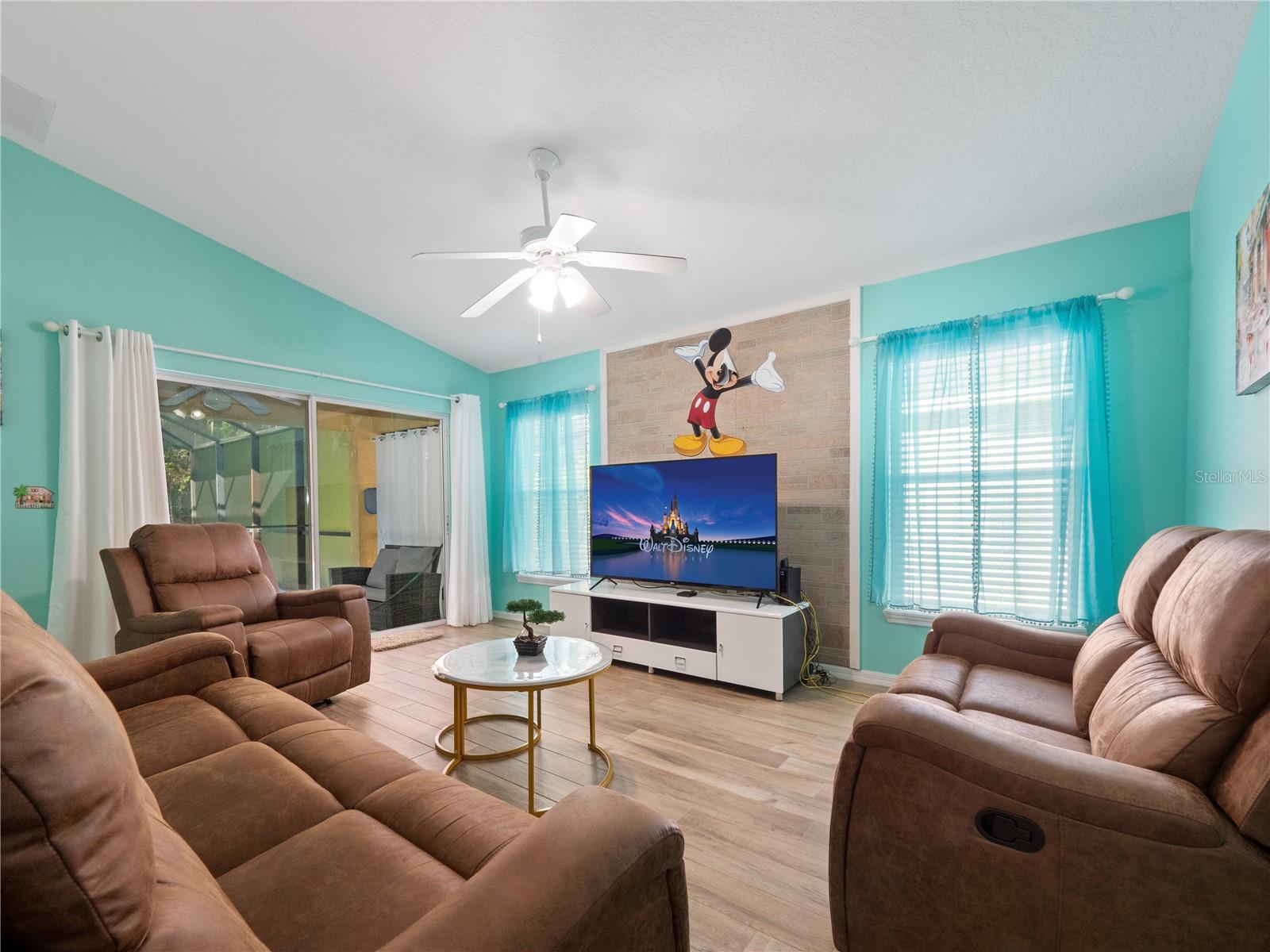 Beautifully updated 4-bedroom, 3-bath home in the sought-after Sandy Ridge community! This move-in ready property is being sold fully furnished and showcases a resurfaced pool and heated spa (2022) with privacy screens, no rear neighbors, and a peaceful conservation view, plus a brand-new roof (2021) for worry-free living. Inside, the open layout features two master suites on opposite sides of the home, an upgraded kitchen with wood cabinets, Corian-style counters, and stainless steel appliances, along with formal living and dining rooms for entertaining. Thoughtful upgrades include quartz bathroom countertops (2020), a Culligan water softener (2022), ceramic wood-look floors throughout (no carpet), vaulted ceilings, modern lighting, and window film for added efficiency. The primary suite offers direct pool and spa access through a covered lanai with a convenient pool bath. Additional highlights include extra storage in the master closet and laundry room, a spacious two-car garage, and HOA dues of just $108/month covering basic cable, internet, and playground upkeep. Super clean and well-maintained, this home is perfect as a short-term rental or full-time residence. Ideally located close to Champions Gate, Disney, Posner Park, Publix, shopping, dining, and just minutes to I-4 for quick access to Orlando, Tampa, and all Central Florida attractions. Schedule your showing today! This one won't last long!