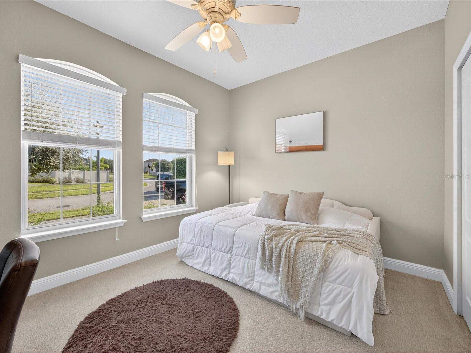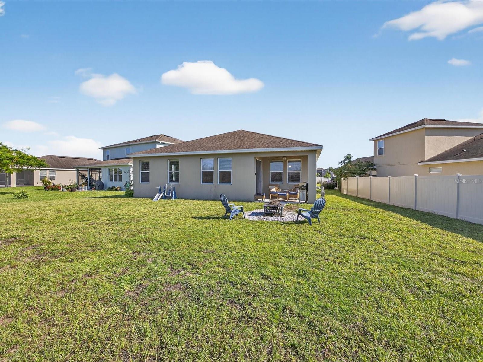 Price Reduced! A stunning open-concept home designed for both comfort and style, this single-story 3-bedroom, 2-bathroom residence was built in 2017 and offers modern finishes with a peaceful natural setting. The heart of the home is the spacious kitchen featuring rich dark cabinetry, granite countertops, and stainless steel appliances, seamlessly flowing into the living area with custom paneling, new light fixtures, and fresh interior paint. Tile flooring runs throughout, including all bedrooms, while bathrooms are accented with matching granite and dark cabinetry for a cohesive feel. Step outside to a covered lanai overlooking a large backyard with no rear neighbors and wooded views that capture beautiful sunsets every evening. Upgraded landscaping frames the property, creating an inviting outdoor retreat. The community itself adds to the lifestyle with a private clubhouse and pool, while the location places you minutes from ChampionsGate shopping and dining, Disney World, and major highways for effortless convenience. Stainless steel appliances convey, and furniture is negotiable, making this home move-in ready. Experience the blend of privacy, style, and location in person—schedule your private showing today