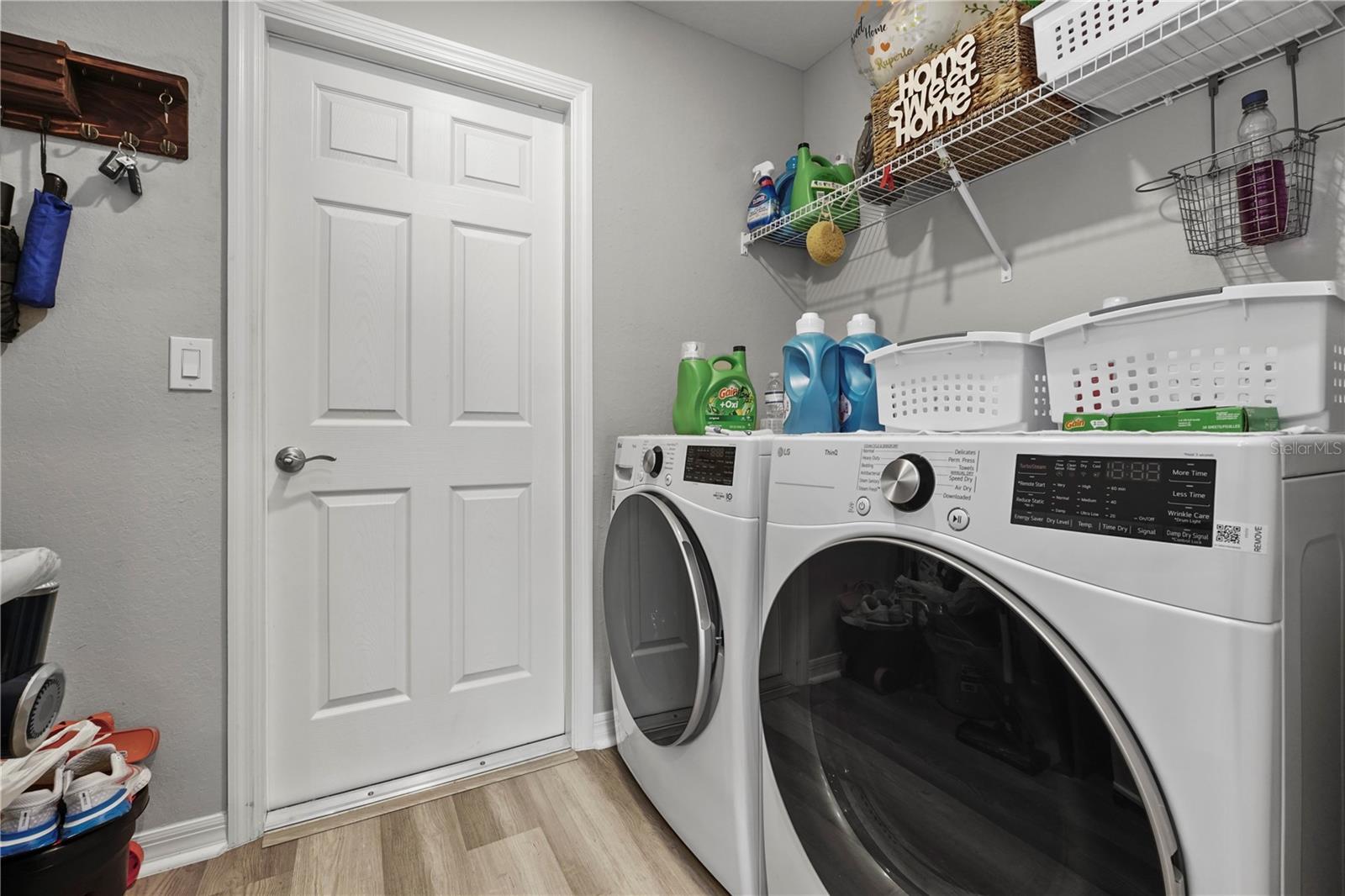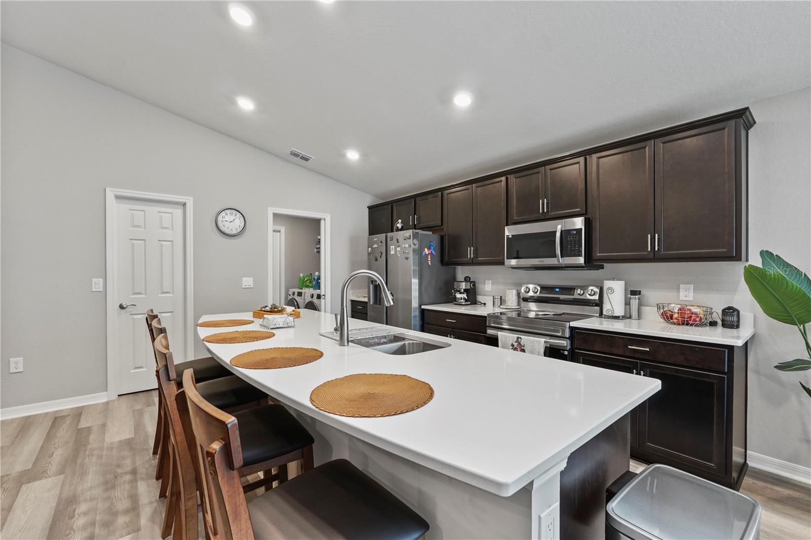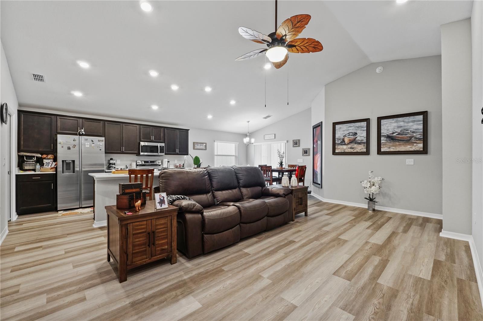 Welcome Home! This move-in ready, single-story home offers the perfect blend of style, comfort, and functionality with 3 spacious bedrooms, 2 full baths, and an open-concept living area designed for modern living. The chef-inspired kitchen is a showstopper with quartz countertops, stainless steel appliances, a walk-in pantry, and a large counter-height island—ideal for entertaining and everyday dining. Throughout the home, enjoy the beauty and durability of luxury wood vinyl plank flooring—even in the bedrooms! Your private owner’s suite features a walk-in closet, dual vanities, a tiled shower. Step outside to relax under the covered lanai, and take advantage of the 2-car garage. Additional upgrades include custom-fit window blinds, energy-efficient windows, architectural shingles, and epoxy-coated lanai and garage floors for easy maintenance and long-lasting style. With its modern upgrades, open layout, and thoughtful design, this home checks all the boxes for today’s buyer—don’t miss your chance to make it yours! Property is also available for RENT (O6345635)