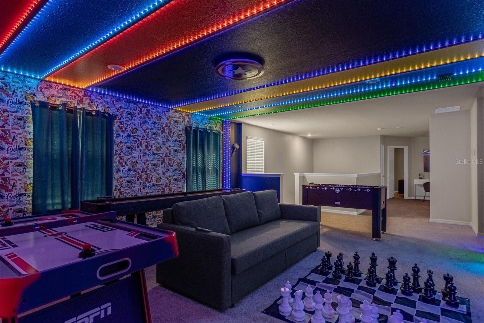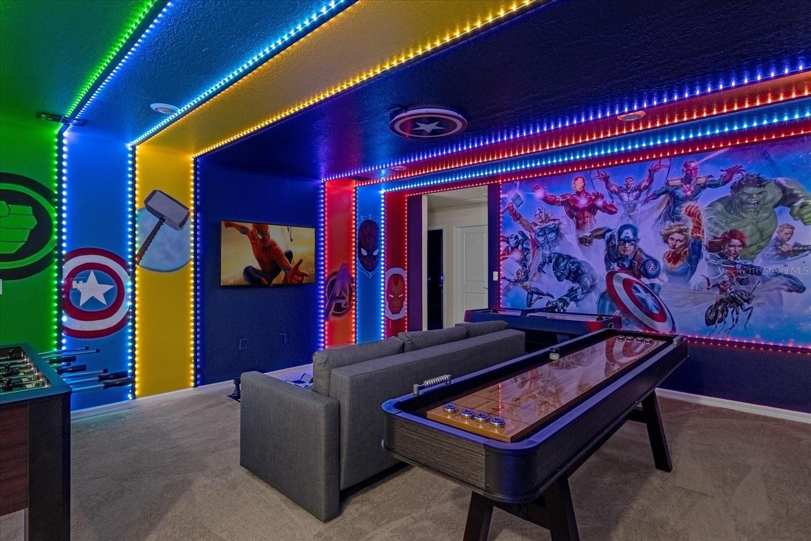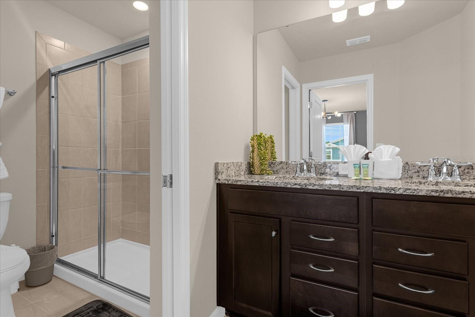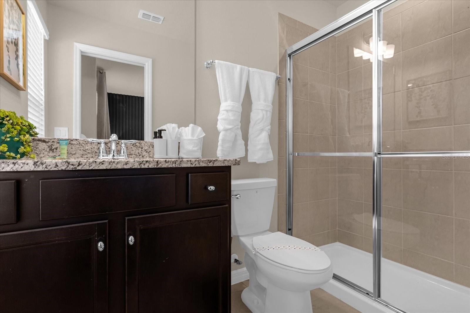 This professionally designed, fully furnished 7-bedroom, 5.5-bath vacation retreat offering over 3,200 square feet of upgraded living space in one of Central Florida’s most sought-after resort communities. This turnkey property blends upscale finishes with functional design, ideal for investors and vacationers alike. Step inside to discover a spacious open-concept layout perfect for large groups. The gourmet kitchen features rich espresso cabinetry, granite countertops, stainless steel appliances, and a generous center island with seating that's ideal for casual dining and entertaining. The main-level primary suite offers direct pool access and a spa-inspired en suite bath with dual sinks, a garden tub, and walk-in shower. Upstairs, a sprawling loft has been transformed into a private game and movie room, surrounded by six additional bedrooms and four full baths, providing ample space for guests and family. Outside, enjoy your own private oasis with a heated pool and spa, covered lanai, and plenty of seating for sun-soaked relaxation or evening gatherings. Located in Windsor Island Resort, just minutes from Disney, this community is packed with world-class amenities: a zero-entry resort pool, lazy river, water slide, splash pad, clubhouse with concierge and arcade, fitness center, mini golf, playground, firepit with Disney fireworks views, and the Blue Marlin Grille restaurant. With short-term rentals allowed and high demand year-round, this property offers both lifestyle and income potential.