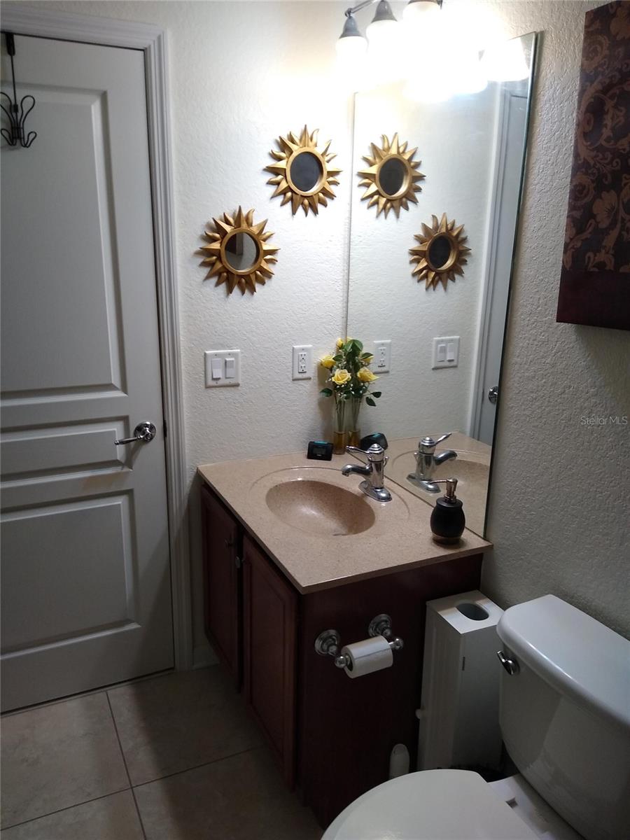 This spacious 3-bedroom 2-bath town house style condo offers 1,893 square feet with beautiful water and fountain views. It is located on the 2nd floor, is move-in ready and provides resort style living in the highly sought-after community of Bella Trae at Champions Gate. This is a Del Webb community designed to keep you active. The great room features cathedral ceilings and an open layout leading to the large screened lanai with triple sliding glass doors, perfect for viewing the Omni Hotel fireworks and enjoying the water views. It has a formal dining space located just outside the kitchen. The kitchen has solid-surface countertops, wood cabinetry, newer stainless steel appliances and a breakfast bar. There are cabinets with a butcher block top for extra storage and counter space. The adjacent laundry room includes an oversized washer and dryer. The spacious primary suite has a large walk-in closet, beautiful water views and a remote control ceiling fan. The en-suite bath features dual sinks with plenty of cabinet space, a glass-enclosed shower with bench seating and a private toilet room. There are two other bedrooms with closets and access to the second full bath. They can easily be used as guest rooms, home office, or flex space. There are extra closets and plantation shutters throughout the unit. The AC and windows are about 4 years old. The unit has a one car attached garage and driveway parking. There is also parking for guests throughout the community. There is no street parking allowed. The HOA fees include high speed internet (1gig up and 1 gig down), cable with 2 boxes, a router with a mesh extender, and 80 hours of DVR service. It also includes pest control (inside and outside), lawn and tree care (including sprinklers and the water for it). For a maintenance-free living experience, the HOA takes care of all the exterior including paint and roof. The HOA also comes with use of the Bella Trae 12,500 sq ft clubhouse offering a state-of-the-art fitness center with showers and lockers, billiards, library, outdoor kitchen with grill, meeting spaces, ballroom, yoga/dance studio, lounge areas and heated lap pool and spa. The community has a putting green, bocci, corn hole, tennis and pickleball courts. All peripherals to play are provided. The clubhouse hosts events such as trivia, bingo, karaoke, games, poker, book clubs, dances, pool & holiday parties as well as dance fitness and aqua fitness classes. There are many social gatherings and outings scheduled monthly. Monthly online and physical calendars are available. Location is minutes to I-4, shopping, dining, and world-class entertainment. It is just 20 minutes from the Disney theme parks.