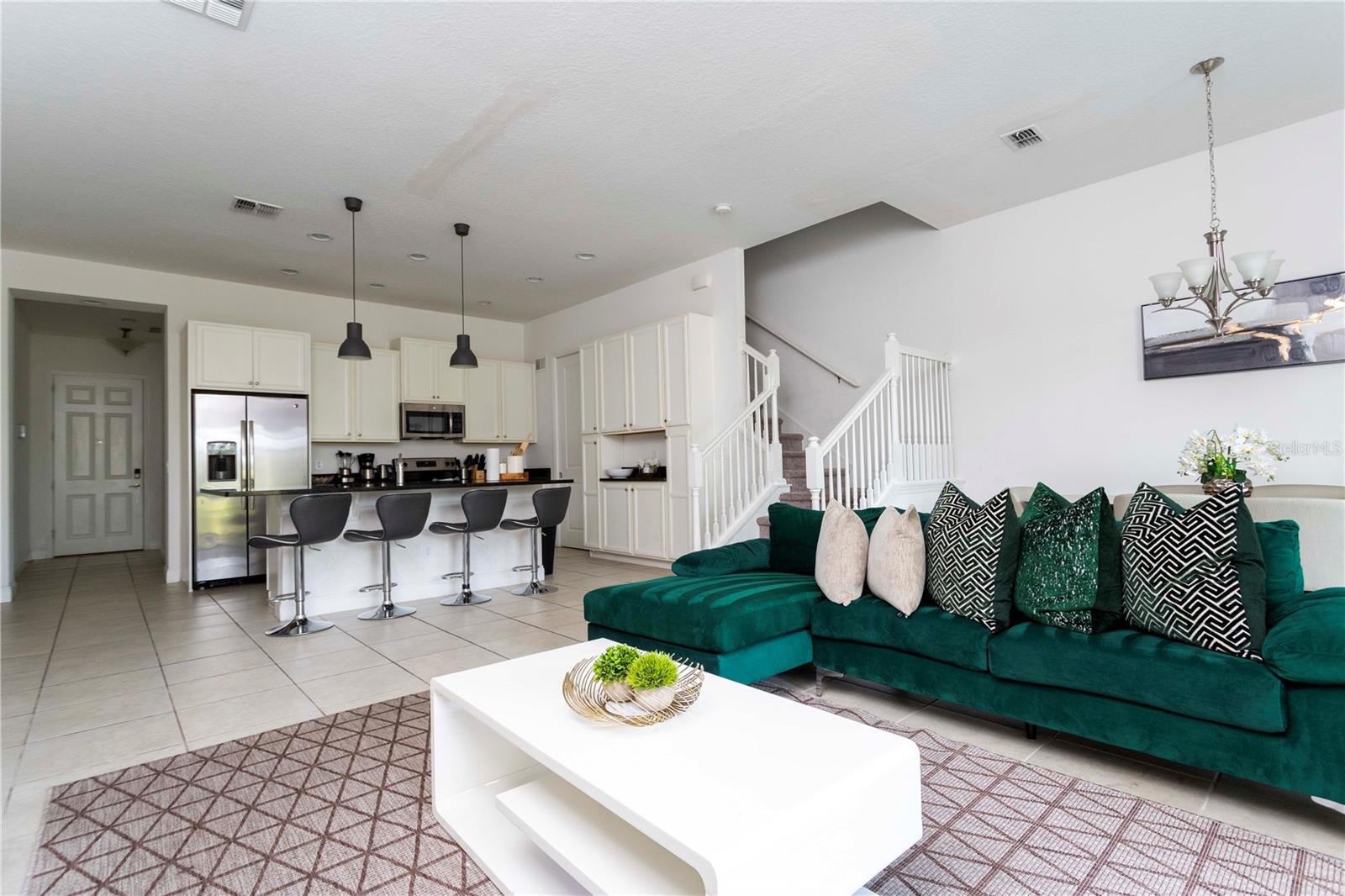 Welcome to your dream and beautiful home well maintaned and well decorated! This exquisite fully furnished 5-bedroom, 5.5-bath townhouse, short-term rental community, perfect for both relaxation and investment. Step inside to discover an open-concept living space flooded with natural light, featuring modern finishes and elegant furnishings. The spacious kitchen is equipped with stainless steel appliances, quarts countertops, and ample storage, making it ideal for entertaining family, friends and guests. Ensuring privacy and comfort for all guests. Outside, enjoy your private oasis with a sparkling pool, perfect for sun-soaked afternoons and evening gatherings. The community offers a wealth of resort-style amenities, including a clubhouse, fitness center, playgrounds, pools and walking trails, ensuring there's always something to do. Whether you're looking for a personal escape or a lucrative rental opportunity. Don’t miss your chance to own a slice of paradise!