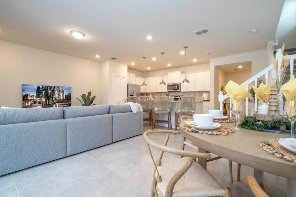Welcome to Windsor Island Resort where everyday luxury meets vacation living! This immaculate 5-bedroom, 4.5-bath townhouse offers over 2,200 sq. ft. of thoughtfully designed living space and comes fully furnished, turnkey, and Airbnb-ready, ideal as a personal retreat or an investment property. Built just 3 years ago, the home feels like new and is located within a guard-gated community offering world-class amenities. Inside, an open floor plan with easy-to-maintain ceramic tile flooring creates a bright, inviting flow. The first floor features a spacious guest bedroom with an adjacent full bath, plus a convenient half bath with direct access to the pool. The heart of the home includes the kitchen, dining, and living area, opening to your own private pool and patio—perfect for relaxing after a day at the parks. Upstairs, you’ll find two primary suites, one with a generous walk-in closet and en suite bath, and a second bedroom with its own private en suite. A versatile loft area separates the suites and offers additional gathering space, while two more bedrooms share a full bath. A second-floor laundry closet with washer and dryer adds everyday convenience. Just outside your door, Windsor Island’s resort-style amenities await: a lagoon-style pool, lazy river, splash pad, double water slides, hot tub, poolside bar and restaurant, free 9-hole mini golf and arcade, plus basketball, volleyball, pickleball, and a state-of-the-art fitness center. The HOA includes cable, internet, trash, exterior maintenance, landscaping, ensuring a truly hassle-free lifestyle. All of this, just 20 minutes to Walt Disney World and close to Universal Orlando, Margaritaville Resort, Posner Park, championship golf courses, shopping, dining, and entertainment along US-192 and I-4. Whether you’re searching for a turnkey short-term rental, a vacation getaway, or a low-maintenance home near Orlando’s top attractions, this Windsor Island gem has it all. Schedule your private showing today!