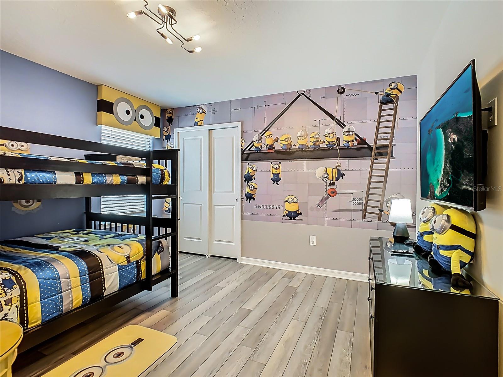 Stunning 7-bedroom, 5.5-bath Windsor Island Resort home — turnkey luxury and investment potential. This meticulously maintained property is ready to start generating rental income immediately, with furnishings and decor curated for high occupancy. Its prime location is steps from the clubhouse, offering quick access to resort amenities while ensuring privacy for downtime. Themed Minion and Mickey Mouse rooms create immersive, family-friendly experiences that guests love. A gaming loft provides space for gatherings and movie nights, ideal for families and groups. No rear neighbors mean enhanced privacy and tranquil evenings on the extended lanai complete with summer kitchen. Gorgeous blue cabinetry throughout and a custom coffee bar add bright, contemporary touches and daily luxury. The 7 bedrooms and 5.5 bath Seashore Model offers ample sleeping capacity and privacy for all guests. Fully turnkey with high-quality furnishings, the home appeals to short-term rental guests and private escapes alike. Modern appliances and durable finishes reduce maintenance while elevating guest experience, and the resort perks—clubhouse access, Guard Gated, and a premier location—enhance appeal. Proximity to dining, shopping, entertainment, and major highways adds convenience. This property blends premium design with a prime location and immediate move-in readiness. Don’t miss the opportunity to own a Windsor Island standout ready to perform from day one.