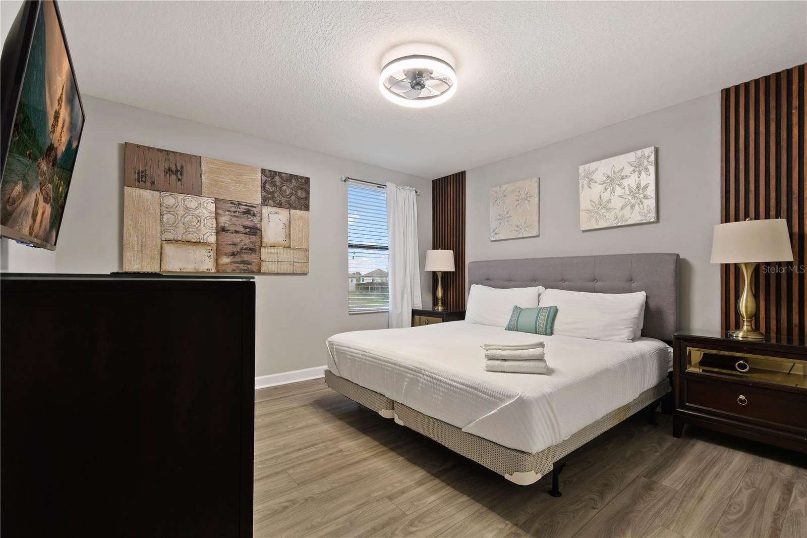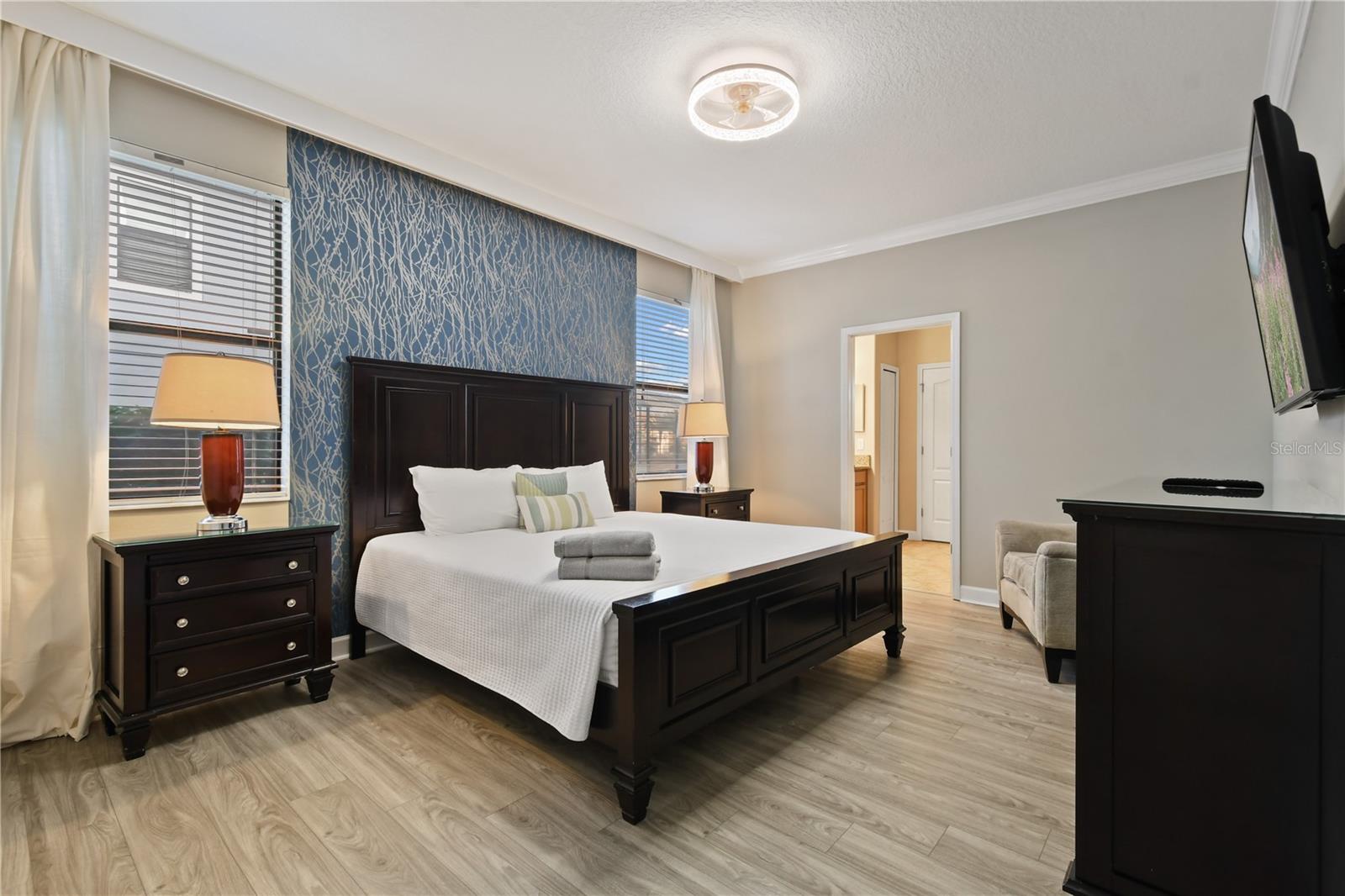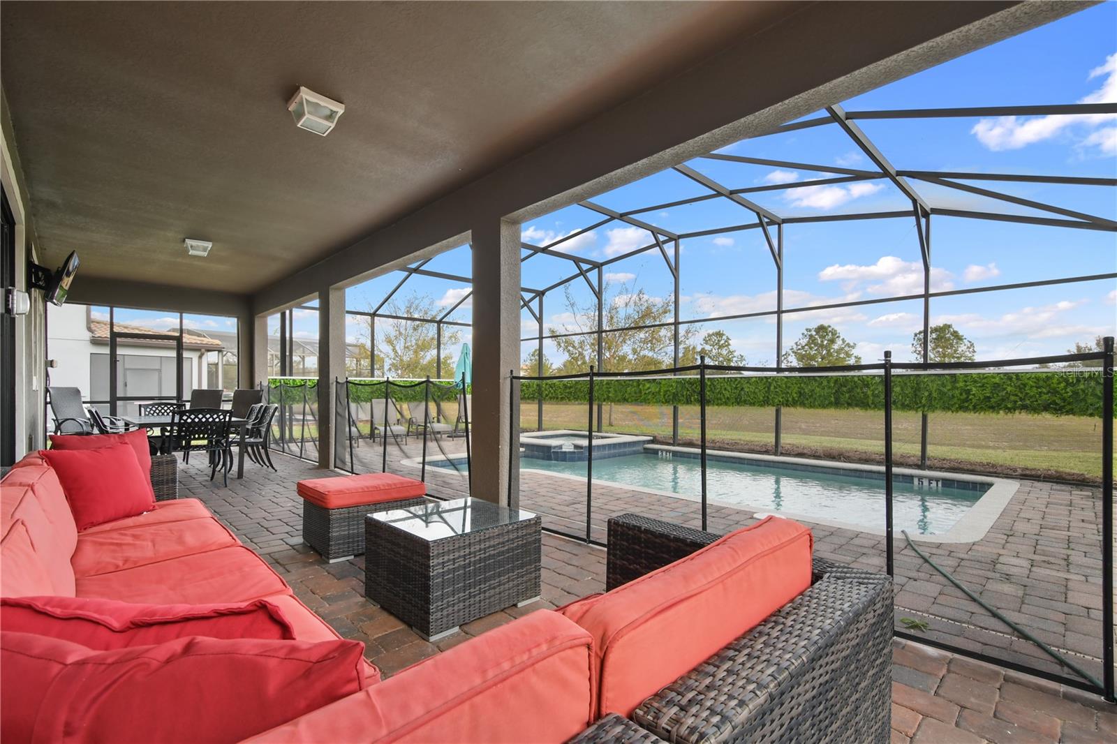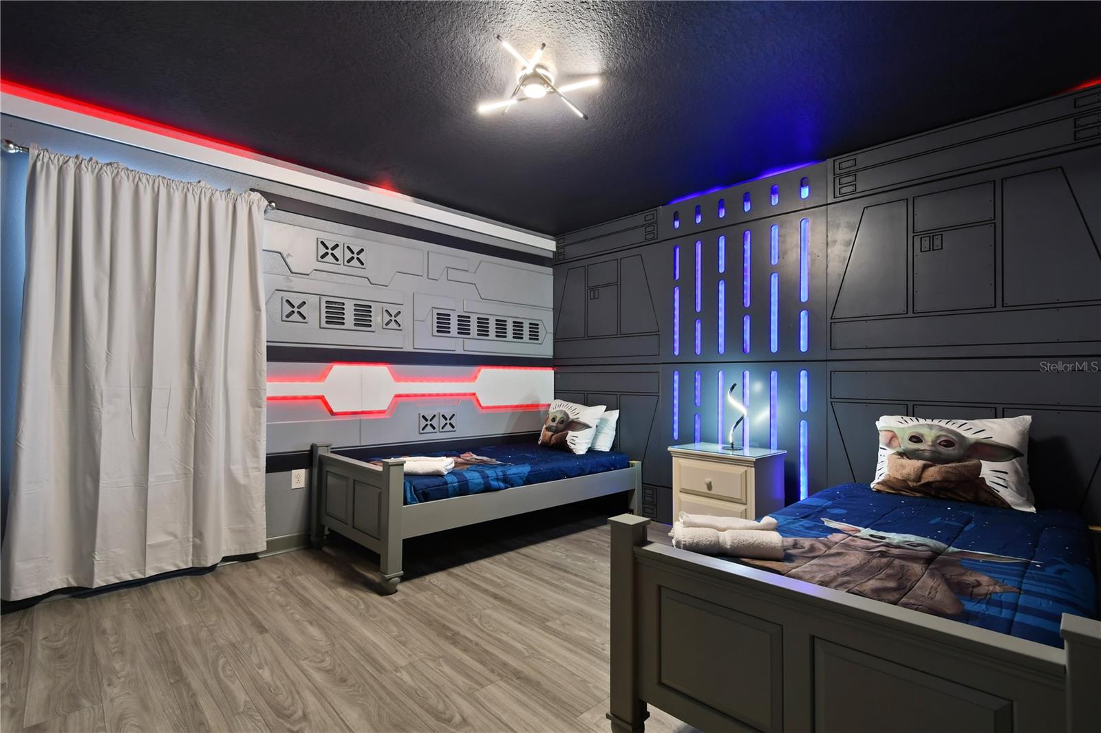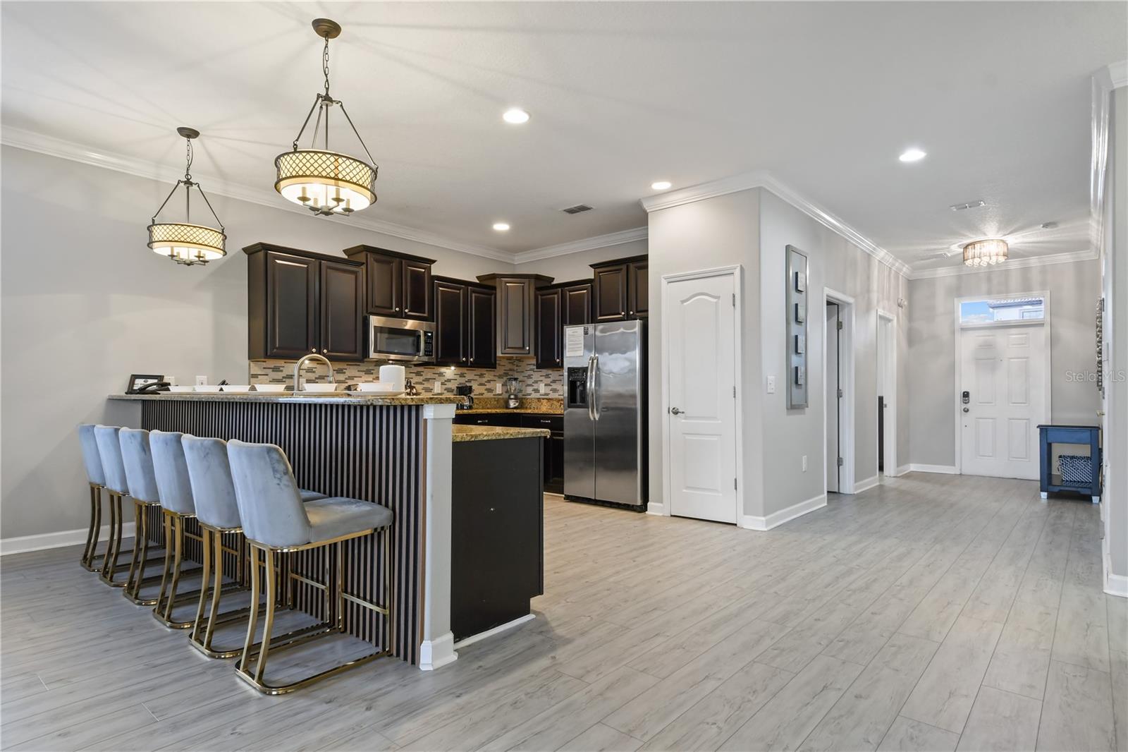 Welcome to your dream vacation home in ChampionsGate Resort—one of Central Florida’s most sought-after gated communities. This luxurious 8-bedroom, 5-bath villa was fully renovated in November 2022 and shines with elegant finishes, modern comforts, and an unbeatable location—just a short walk to the Oasis Clubhouse, yet offering complete backyard privacy with no rear neighbors. Step inside to discover brand-new luxury vinyl flooring (installed in 2024) throughout (except in the bathrooms which feature tile, and carpet in the theater room) , two new AC systems installed in 2022, and a custom Avatar-themed theatre room that turns every movie night into an unforgettable experience. On the main floor, you’ll find a spacious primary suite and an additional guest bedroom, perfect for multi-generational stays. Upstairs, a large loft has been converted into a vibrant game room, while each bedroom is generously sized and uniquely themed to delight guests of all ages—featuring Star Wars, Frozen, Harry Potter and Mickey Mouse designs. Designed for both comfort and performance, this property is being offered fully furnished and turn-key ready, making it an excellent choice for a second home or successful short-term rental investment. The open-concept floor plan seamlessly connects the expansive living area to a chef-inspired kitchen with stainless steel appliances, quartz countertops, and direct access to the screened-in private pool and spa overlooking peaceful open views. Residents and guests enjoy access to the world-class ChampionsGate Oasis Clubhouse, featuring a lazy river, water slides, fitness center, restaurant & bar, movie theatre, and golf course access—all just minutes from your door. Whether you’re searching for a profitable investment or a personal luxury retreat near Disney, this home checks every box.