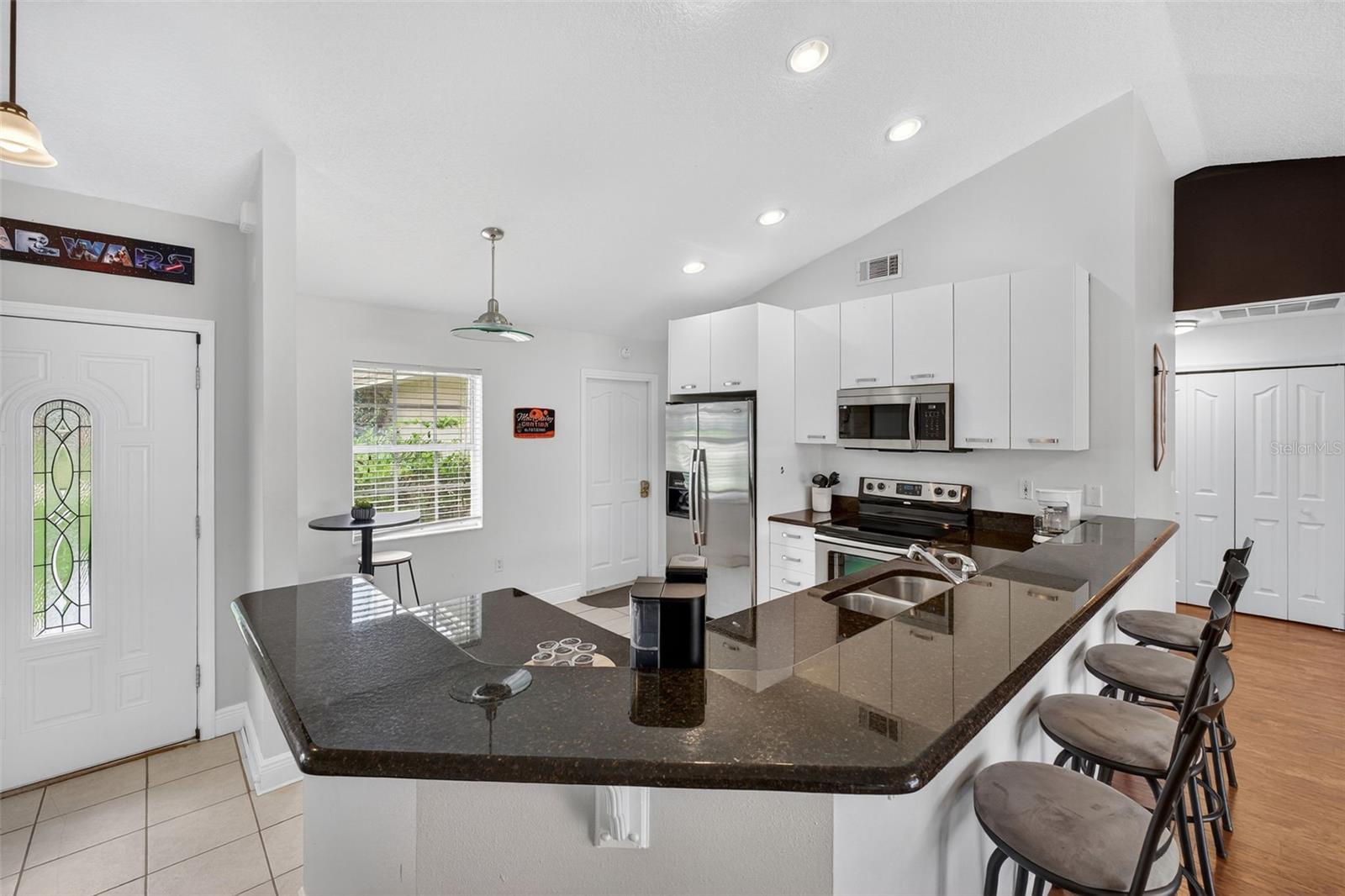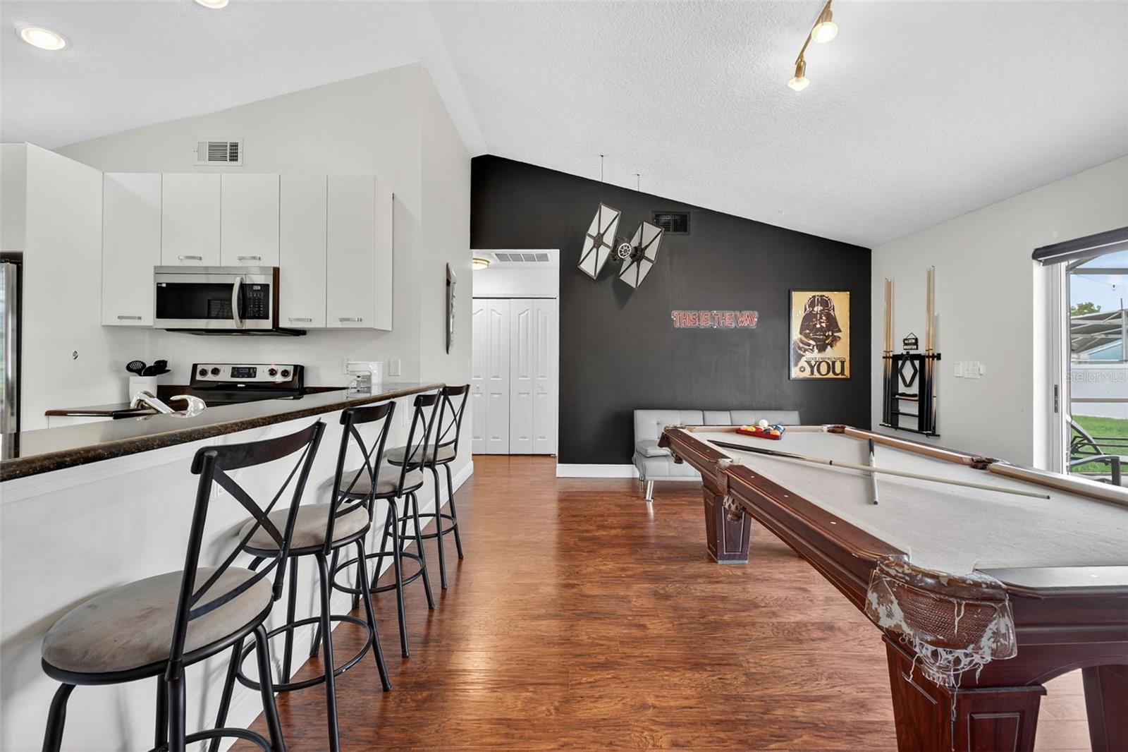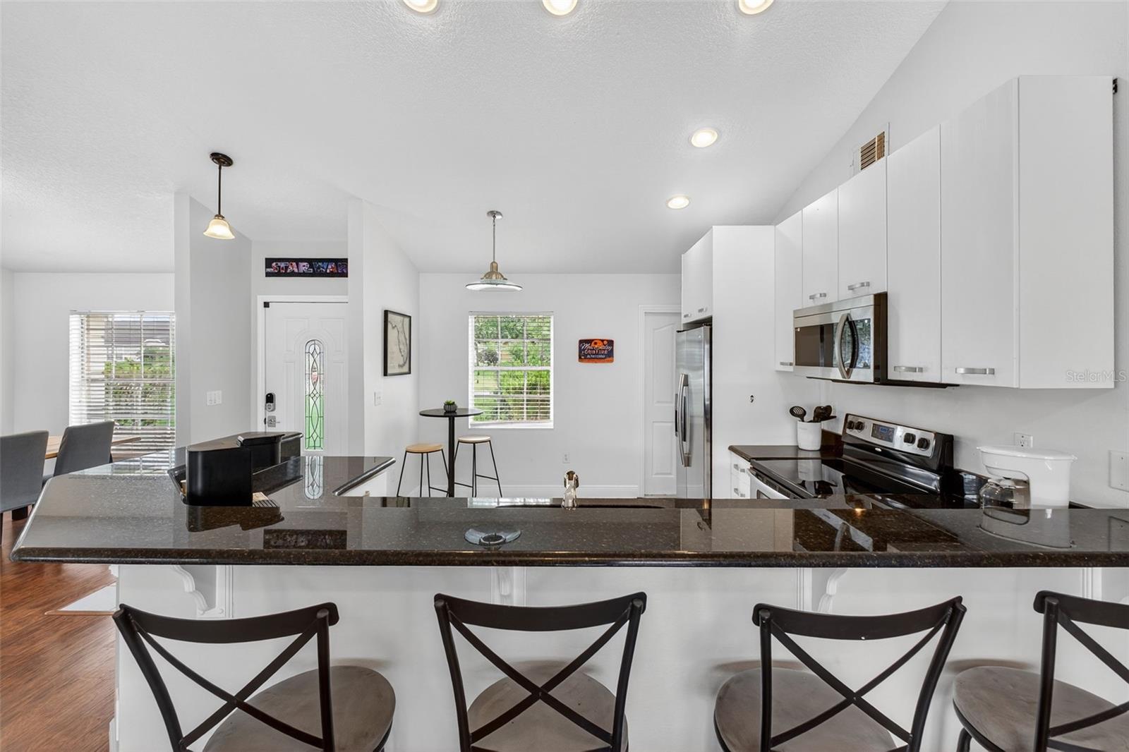 Welcome to your slice of Florida paradise! This immaculate Fully Furnished 3 bed, 2 bath pool home is located in the sought after Loma Vista community, just minutes from ChampionsGate Golf Club, world class dining, shopping, and Central Florida’s top attractions. With easy access to I-4 and Highway 27, convenience is at your doorstep. Step inside to a bright, open concept floor plan featuring a spacious living and dining area with laminate wood floors and sliding glass doors leading to your private screened in pool and patio, perfect for relaxing or entertaining guests. The kitchen showcases granite countertops, ample cabinet space, and a view that flows seamlessly into the living area. The primary suite offers laminate floors, and an en suite bath, while two additional bedrooms with cozy carpeting provide plenty of space for family or guests. Enjoy peace of mind with a newer roof (2021) and low maintenance living thanks to the incredibly low HOA, no CDD fees, and community amenities including a pool and tennis courts located just steps away. Whether you’re searching for a primary residence, vacation home, or short-term rental investment, this property delivers unbeatable value in one of Davenport’s most desirable locations.