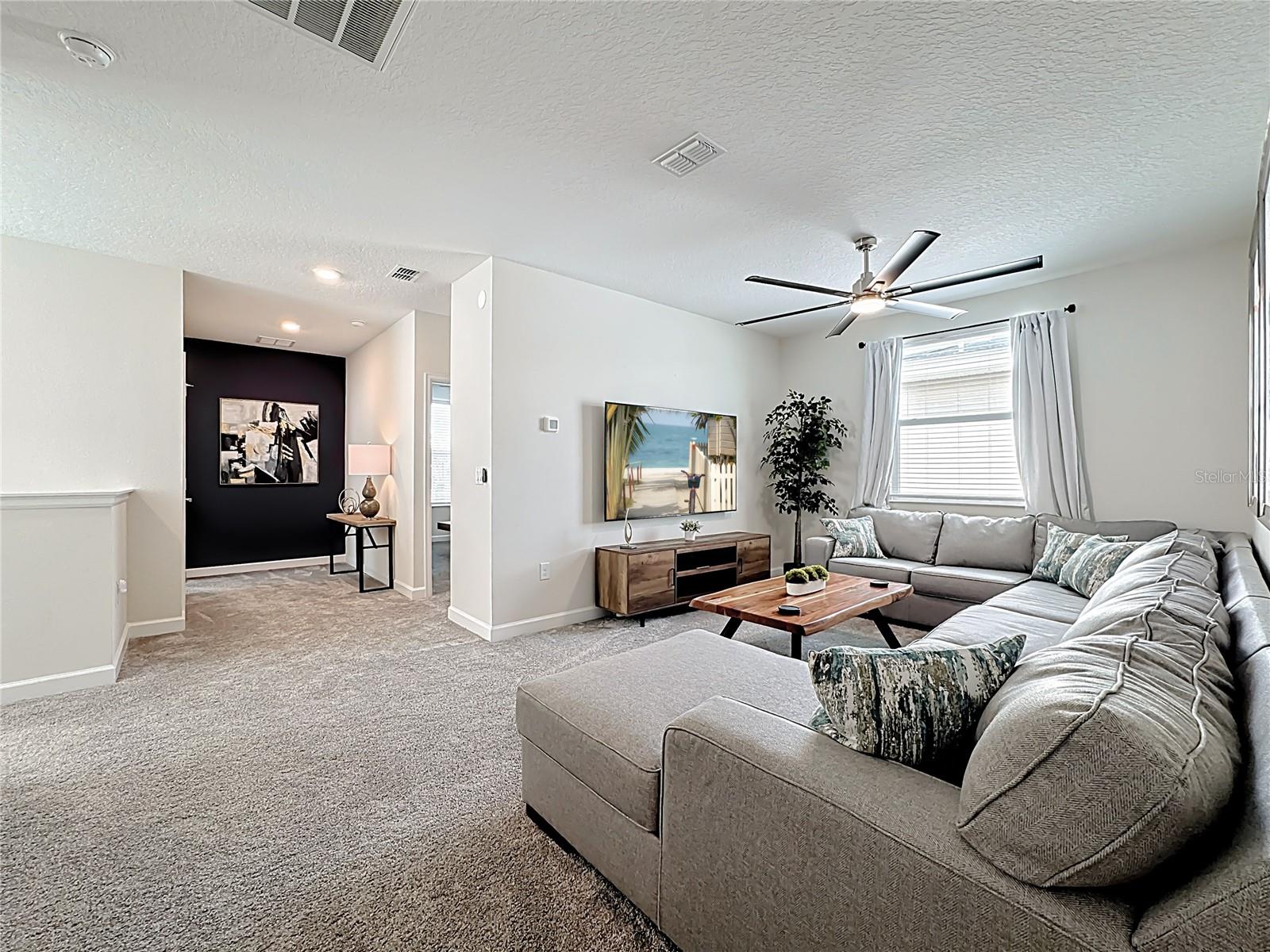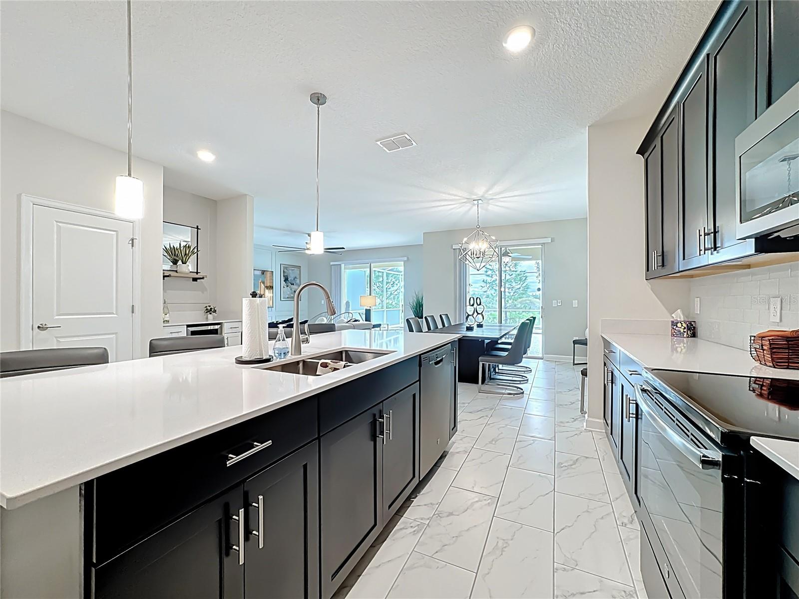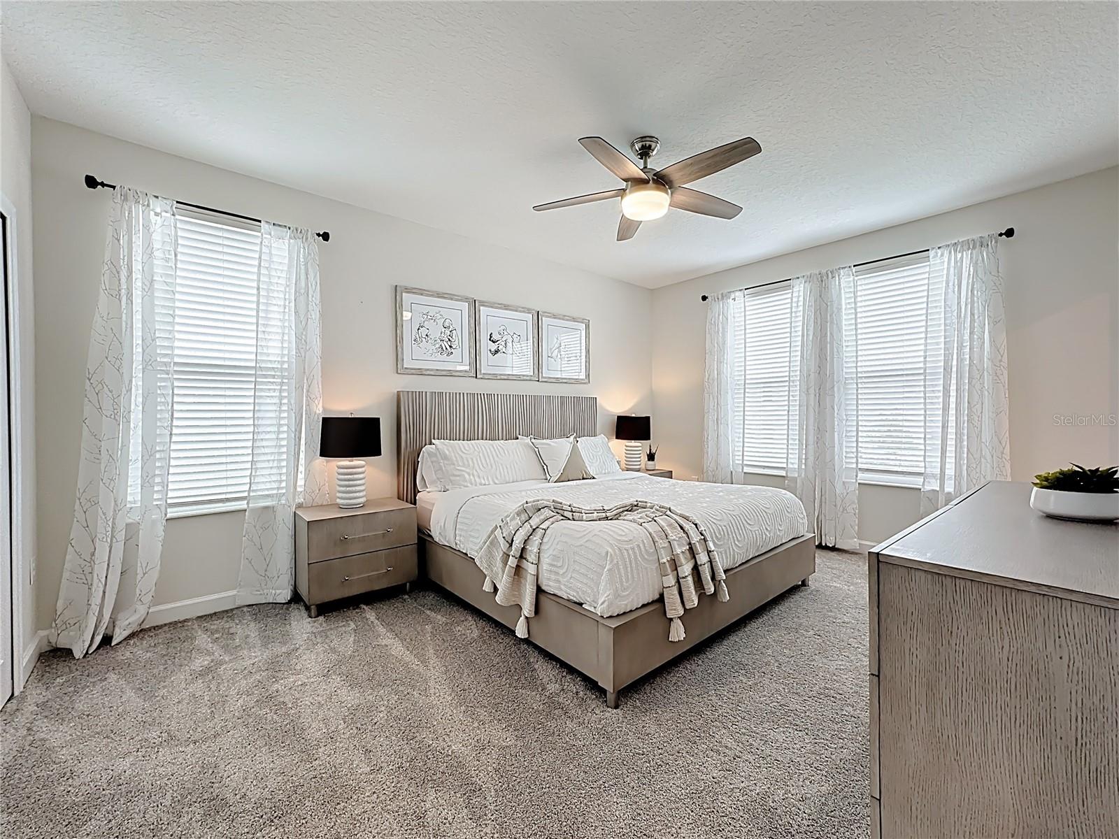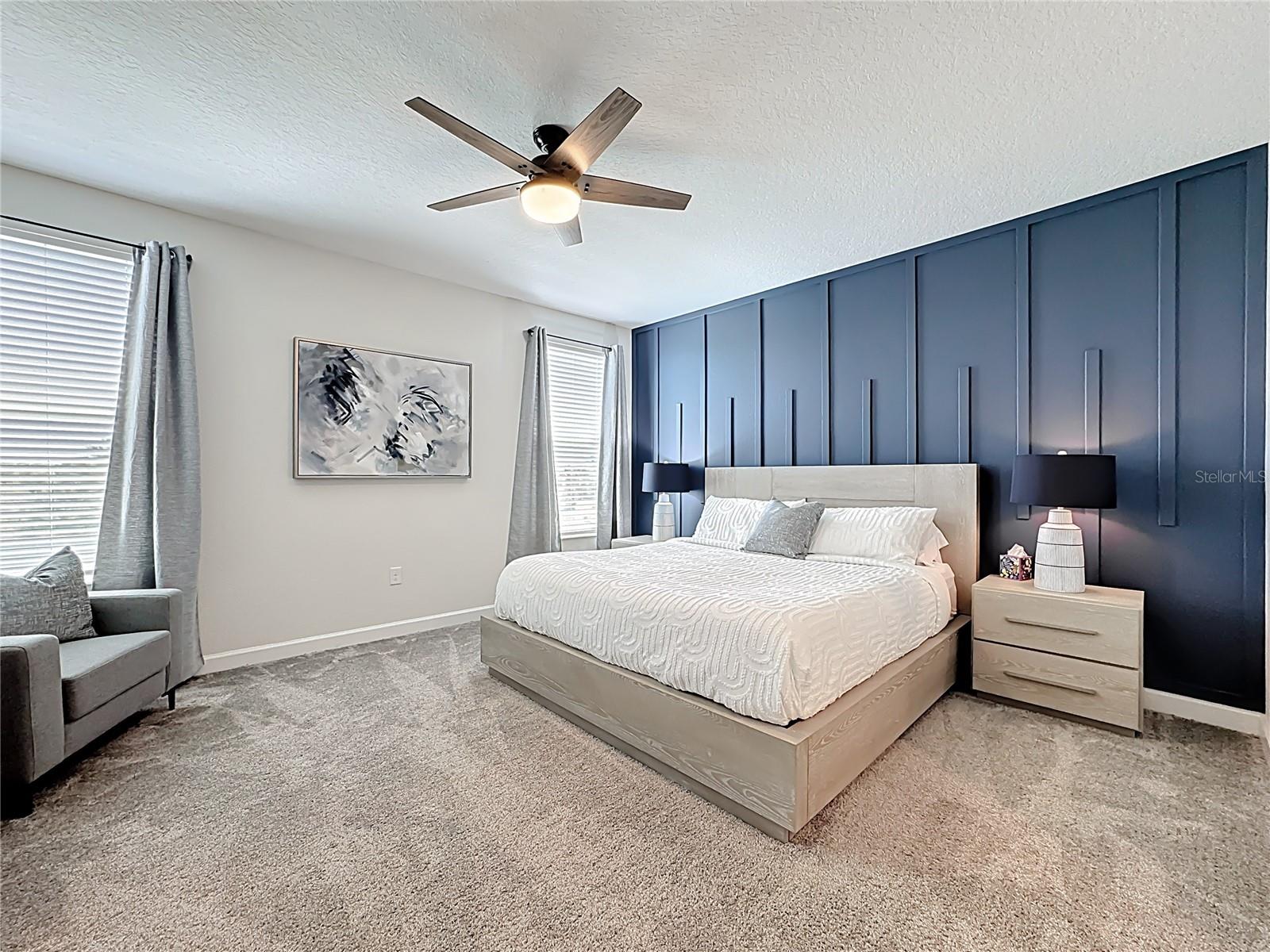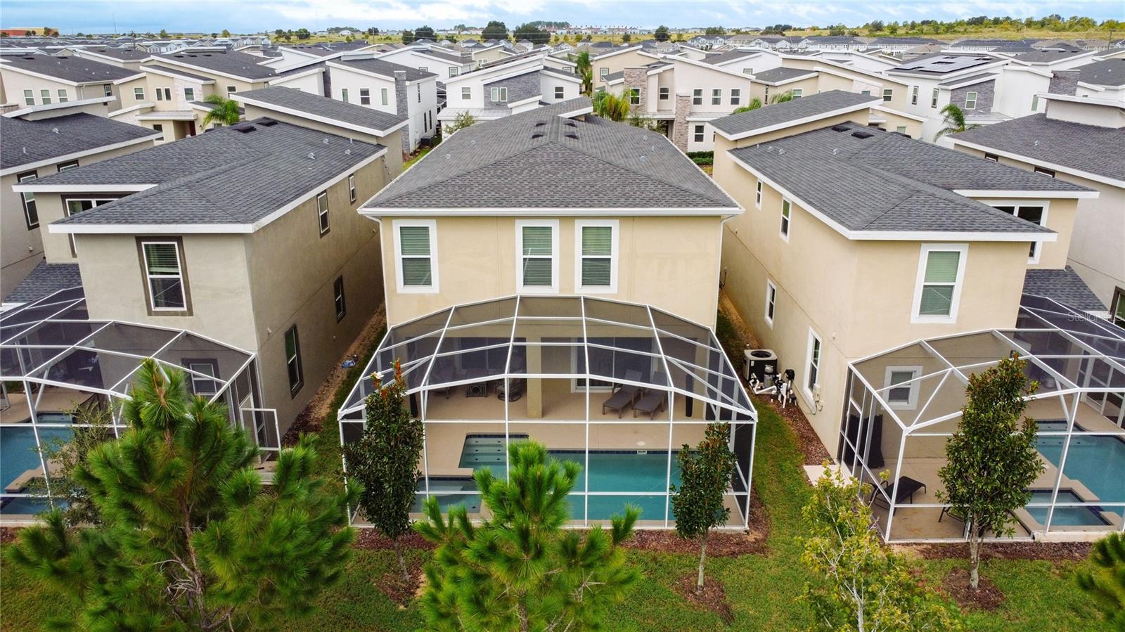 Experience prime luxury living in Champions Gate Resort with this turnkey sanctuary located in the highly coveted Luxury Resort community. Enjoy unparalleled access to major theme parks, dining, shopping, and major roadways, plus a 16,000 sq ft clubhouse and an array of resort amenities right at your doorstep. This home comes fully furnished in a sleek, modern aesthetic and features a private backyard that backs up to a tranquil pond, providing added privacy as you soak up the Florida sunshine. Boasting 3,291 sq ft of living space, it offers 6 bedrooms and 5 baths, an ideal layout for large families, groups, or short-term rental guests seeking space and comfort. The bright, open design welcomes you with a generous living area and a dedicated dining space, perfect for entertaining or family gatherings. The chef-ready kitchen is equipped with stainless steel appliances, an island, pendant lighting, and abundant prep and storage space. Upstairs, a large loft provides versatility for a theater room or extra living space, while the tranquil master suite features a spacious bedroom and a bath with a double vanity, garden tub, and a separate walk-in shower. Outside, you can swim in the pool or relax on the screened lanai, making the most of Florida’s sunny days. Currently used as a second home, this property is zoned for short-term rental as well. In addition to the private, pond-adjacent setting, residents gain access to Champions Gate’s world-class amenities, including pools, a lazy river, waterslides, golf, a fitness center, a splash pad, tennis, basketball, a theater, a game room, and 24-hour guard-gated security. Its superb location is minutes from theme parks and major roads, ensuring convenient access to all the action. This property stands out for its privacy, turnkey convenience, a versatile 6-bedroom layout with a flexible upstairs loft, STR zoning, and unrivaled resort amenities in a premier community.