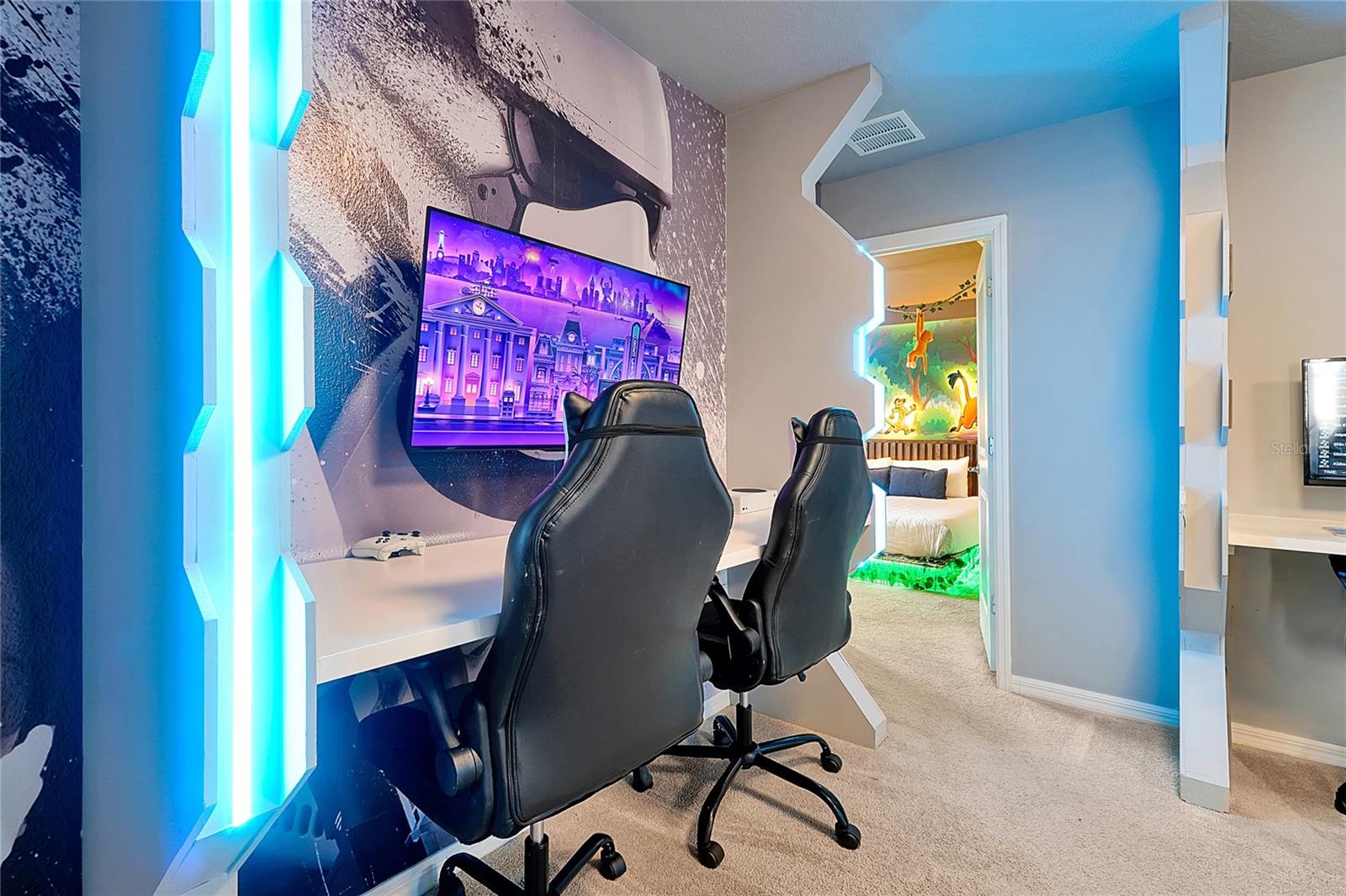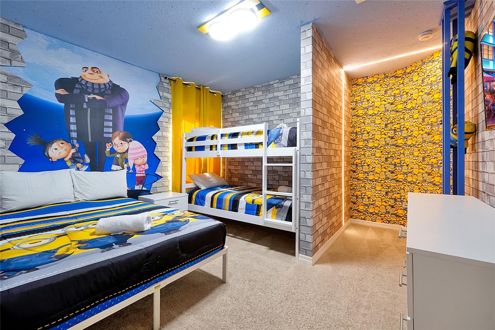 Luxurious Ten-Bedroom Home at Windsor Island Resort, Minutes from Disney World! This grand, fully furnished home built in 2023 offers exceptional rental income potential and is located at Windsor Island Resort, less than 10 miles from the Magic Kingdom. With 10 bedrooms, 8 bathrooms, and ample space to host guests, this home features an open kitchen, a private pool, spa, and a luxury-covered lanai. The two-car garage has been converted into a game room with insulation and AC/heater installed, providing additional entertainment space for guests. The home comfortably sleeps up to 22 guests, with each room professionally and thoughtfully themed-designed for guests of all ages. Enjoy a spacious living area, large kitchen, and dining space for the whole family. The pool screen has privacy film installed, providing guests with added privacy. Windsor Island Resort offers incredible amenities, including a 24-hour manned gated community, clubhouse with fitness center, splash pad, sports courts, full-service concierge & activities director, dual water slides, and a resort-style pool with lazy river & spa. Zoned for short-term rentals, the HOA includes lawn maintenance, landscaping, irrigation water, cable TV and 400MB unlimited high-speed internet. Experience the ultimate vacation home and schedule a showing today!