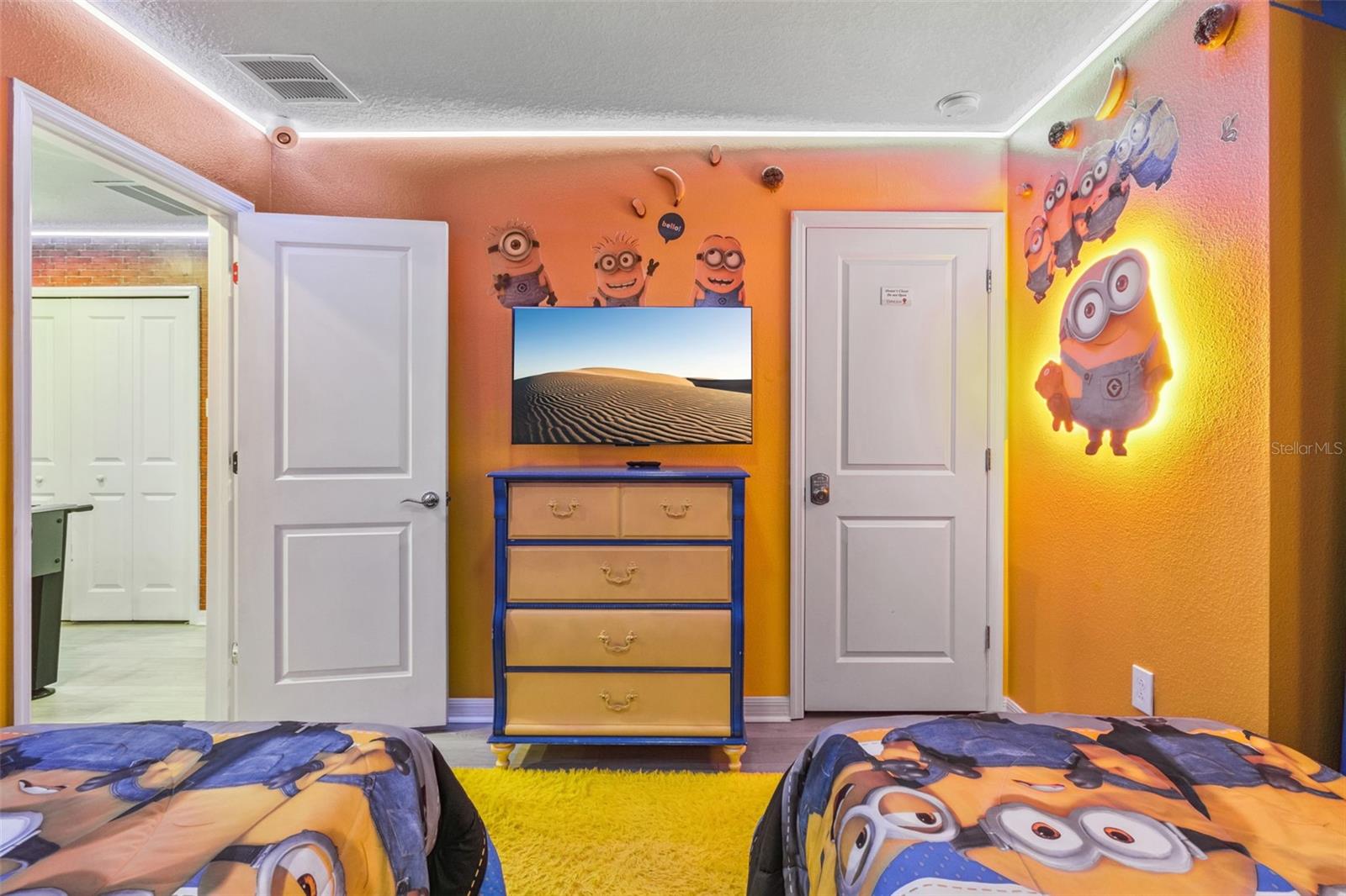 Epic listing!!! Discover one of the most exceptional 5-bedroom vacation townhomes in the coveted Windsor Island Resort. This professionally designed retreat features high-end finishes and immersive themed spaces throughout, creating a one-of-a-kind experience for guests of all ages. Every detail has been carefully curated by a luxury design team, from the custom wall treatments to the thoughtfully integrated lighting and decor. Themed bedrooms evoke the excitement of Harry Potter, Star Wars, Frozen, Mickey Mouse, and Minions—perfect for transporting families into the heart of their favorite worlds. The fun continues with a dedicated game room equipped with multiple arcade setups and entertainment areas, ensuring the house remains a highlight of every stay. The private screened-in pool area adds yet another layer of luxury, featuring unique grass wall accents and Mickey-inspired touches that make the outdoor space feel like an extension of the magic inside. As a turnkey, fully furnished short-term rental with strong historical and projected performance, this home offers income potential exceeding $60,000 annually. Whether you're seeking a top-performing vacation rental, a personal getaway near Disney, or a well-positioned investment property with lifestyle rewards and possible tax advantages, this is an opportunity not to be missed. Ideally situated within minutes of the Walt Disney World Resort and surrounded by world-class resort amenities—from the water park and lazy river to the clubhouse and dining—this townhome stands out as one of the finest offerings in Windsor Island. Schedule your showing today before this rare opportunity is gone.