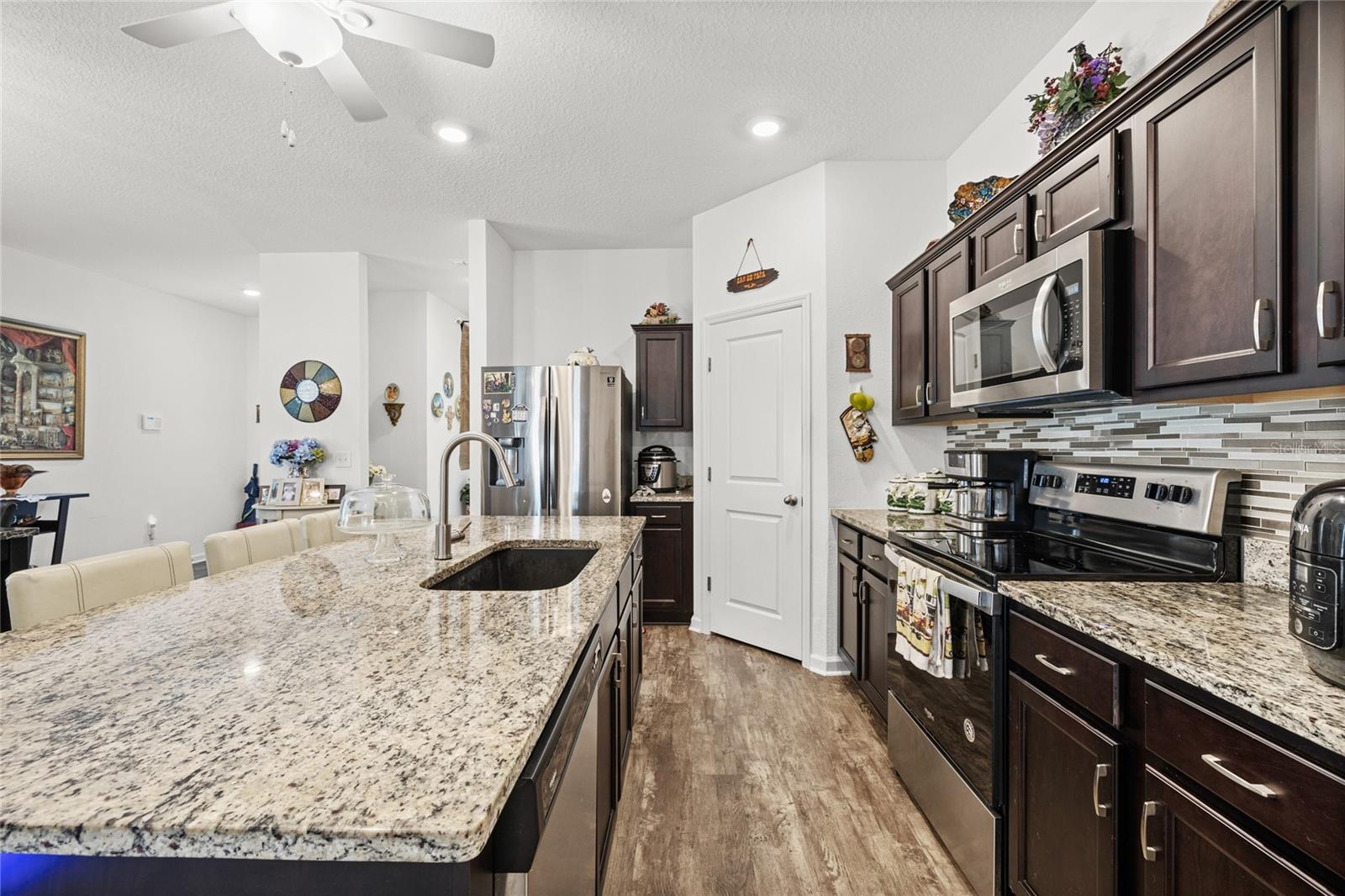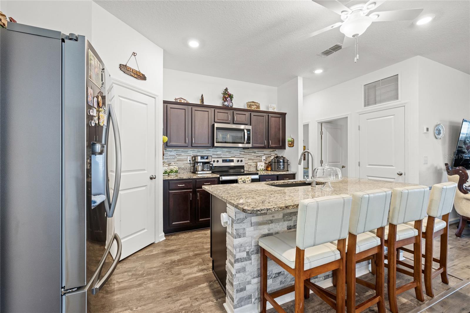 Welcome to 801 Orchid Grove Blvd in Davenport, a beautifully upgraded 3-bedroom, 2-bath home featuring over $80,000 in enhancements, including solar system with battery backups. Inside, enjoy luxury vinyl plank flooring throughout, granite countertops, 42” cabinets, upgraded appliances, and a stylish backsplash, plus new light fixtures and fans in every room. Both bathrooms feature upgraded walk-in showers, and the garage mini-split A/C with added insulation overhead provides valuable under-air square footage perfect for a gym or workshop. Step outside to a screened-in lanai overlooking your fully fenced backyard with a renovated wood deck, electrical hookups, beautiful landscaping, and a tranquil waterfall feature—your ideal outdoor oasis. With stonework detailing and stone walkway, a modern exterior, and resort-style community amenities including a pool, clubhouse, and fitness center, this home delivers the perfect blend of comfort, efficiency, and luxury Florida living. Schedule your private showing today and experience the lifestyle 801 Orchid Grove has to offer!