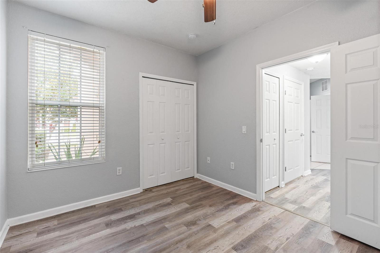 One or more photo(s) has been virtually staged. Welcome to The Promenades of Bella Trae, just moments from Champions Gate! This beautifully maintained 2 bedroom / 2 bathroom residence with a flex room perfect for a den, office, or third bedroom offers comfort and space. The freshly painted interior features beautiful laminate flooring throughout, with cozy carpet in flex room and ceiling fans throughout, keep it at a comfortable temperature, and an open concept living and dining area ideal for entertaining. With a Brand New Water Heater 2026. The spacious kitchen includes an eat-in breakfast area, abundant counter space, and modern appliances including a New Dishwasher 2026, Refrigerator, Microwave, and Oven. From the kitchen, step out to your screened in porch perfect for morning coffee, evening relaxation, or gatherings with friends. The primary suite offers a serene retreat with tranquil views of lush greenery, the en-suite offers dual vanities, New Lighting 2026, an enclosed walk-in shower, a custom-built closet with carpet, and an additional storage closet for towels or linens. The laundry room is generously sized and includes a full size Washer and Dryer. Garage space for 1 vehicle, Newly Finished Garage Floor 2026. Residents enjoy resort style amenities, including a sparkling pool and spa, tennis and pickleball courts, mini golf, a fitness center, yoga room, billiards room, media and reading rooms, and inviting indoor and outdoor lounge areas. The guard gated community provides peace of mind, while the HOA Covers landscaping, irrigation, pest control, cable, high-speed internet, and roof maintenance for truly low-maintenance living. Conveniently located near I-4, major toll roads, and world class attractions like Walt Disney World and Universal Studios Orlando, this home combines luxury, comfort, and location. Don’t miss your chance to enjoy the beautiful Bella Trae lifestyle!