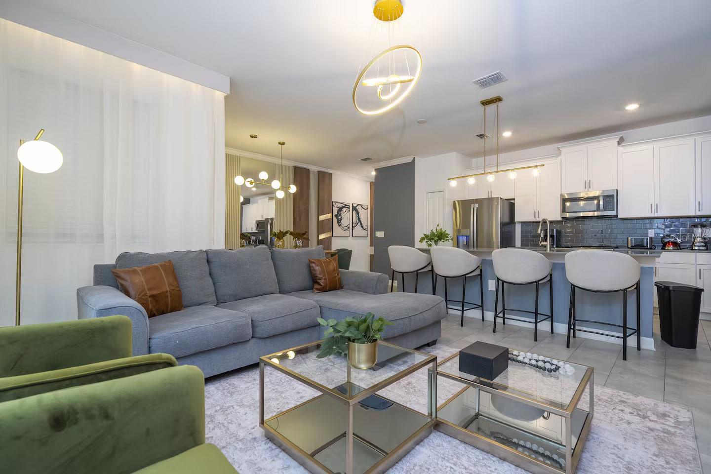 Welcome to luxury resort living and Central Florida excitement at 1114 Kingsbarn St, a beautifully decorated, fully furnished 4-bedroom, 3-bathroom townhome located in the highly sought-after ChampionsGate Resort. Whether you're a vacation home buyer, savvy investor, or seeking a stunning primary residence, this turnkey property is ready to exceed expectations. Featuring stylish décor, themed Mario Bros. and Minions bedrooms, stainless steel appliances, and complete furnishings, this home is AIRBNB-ready—perfect for immediate rental income or an effortless move-in experience. Residents and guests enjoy full access to the world-class Oasis Club, offering a lazy river, water slide, resort-style pools, fitness center, movie theater, tiki bar, and much more. Ideally located just minutes from Walt Disney World, fine dining, premium shopping, and endless entertainment, this townhome delivers the ultimate blend of convenience and adventure. Don’t miss this opportunity. Schedule your showing today!