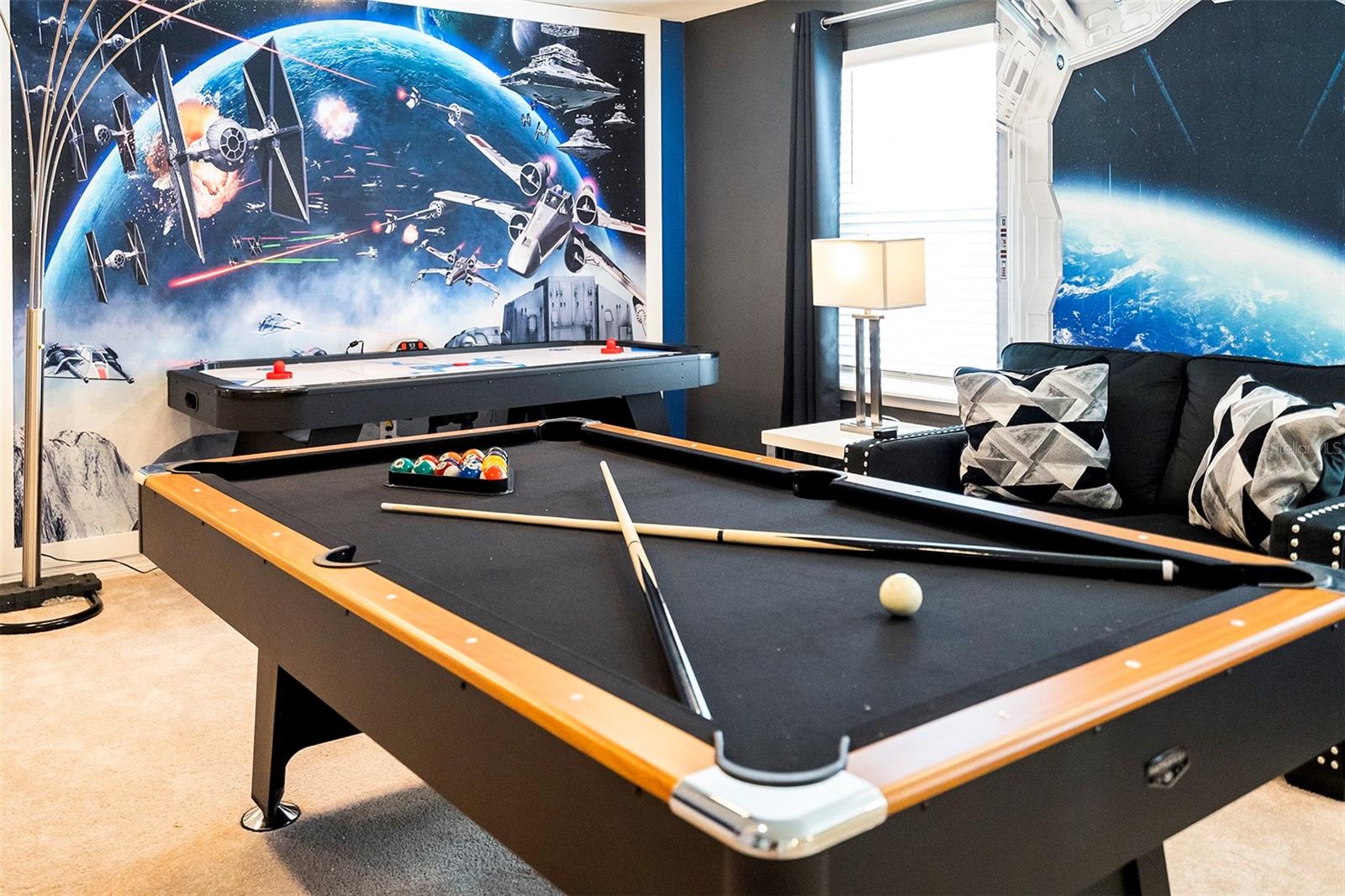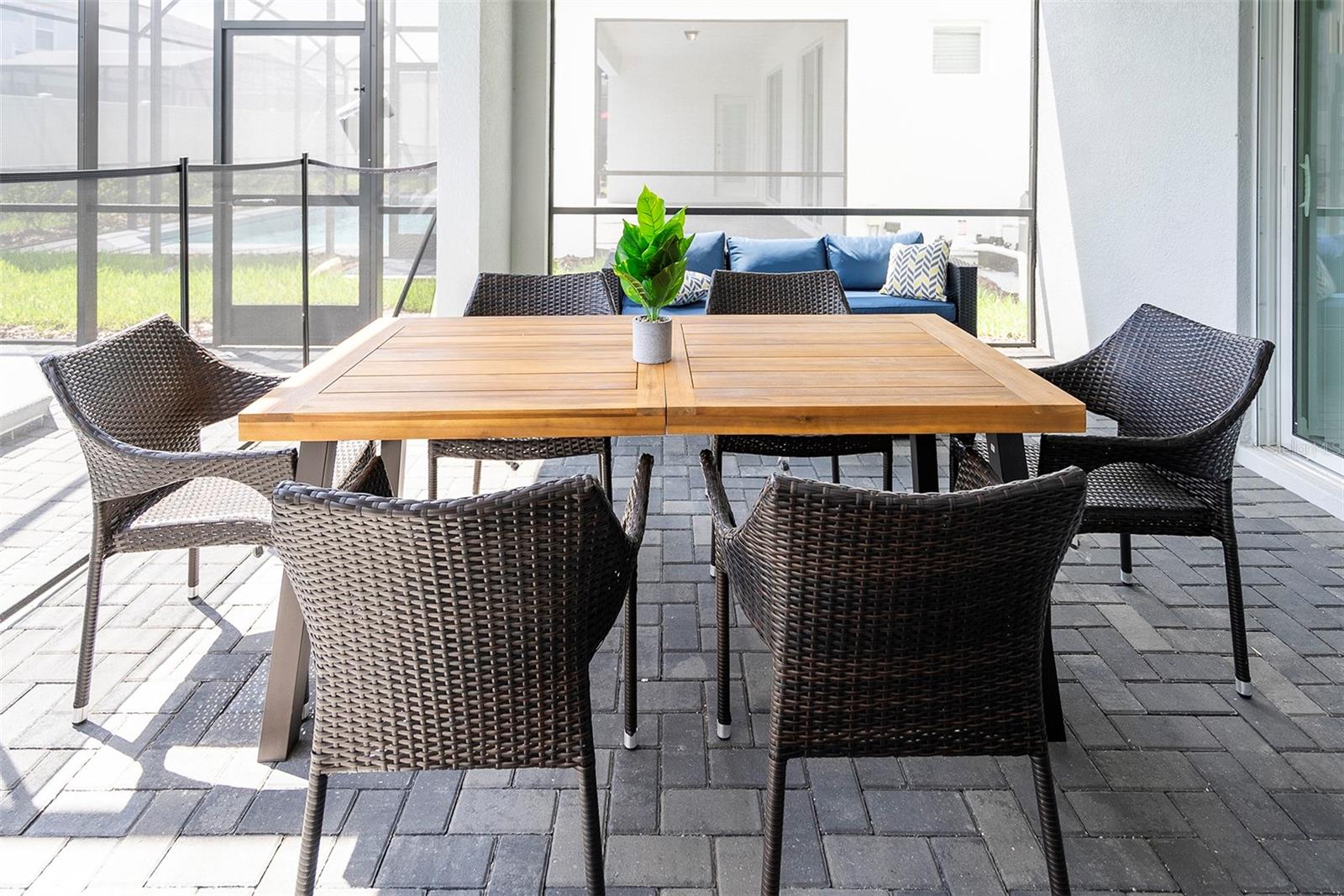 Welcome to your dream vacation home, just minutes away from the magic of Disney! This stunning 7 bedroom, 5.5 bathroom pool home offers the perfect blend of luxury, comfort, and privacy, making it an ideal short-term rental or personal getaway. Fully furnished and move-in ready! Step inside and be greeted by beautiful updated flooring and natural lighting that flows throughout. The open-concept living and dining areas are spacious and inviting, perfect for gathering with loved ones or entertaining guests. The fully equipped kitchen features modern appliances, ample storage, and a large island that makes meal prep a breeze. One of the standout features of this home is its dual primary suites, one on the ground floor and one upstairs, offering flexibility and convenience for multi-generational families or groups. Both suites are complete with large en-suite bathrooms. Upstairs, you’ll find a cozy loft that serves as an additional living space, ideal for movie nights, gaming, or just relaxing with a good book. The remaining bedrooms are spacious and beautifully appointed, ensuring everyone has their own comfortable space to unwind. Step outside to your own private backyard oasis, where a sparkling pool and spa await. With no rear neighbors, you'll enjoy some privacy while you soak up the Florida sun or relax under the covered patio. This peaceful outdoor space is perfect for lounging, entertaining, or simply taking in the beautiful surroundings. Located just a short drive from Disney, this home is not only a prime short-term rental investment but also a fantastic vacation home for personal use. With easy access to world-class attractions, dining, shopping, and entertainment, guests will love the convenience and comfort this home provides. Don’t miss the opportunity to own this incredible 7-bedroom pool home near Disney!