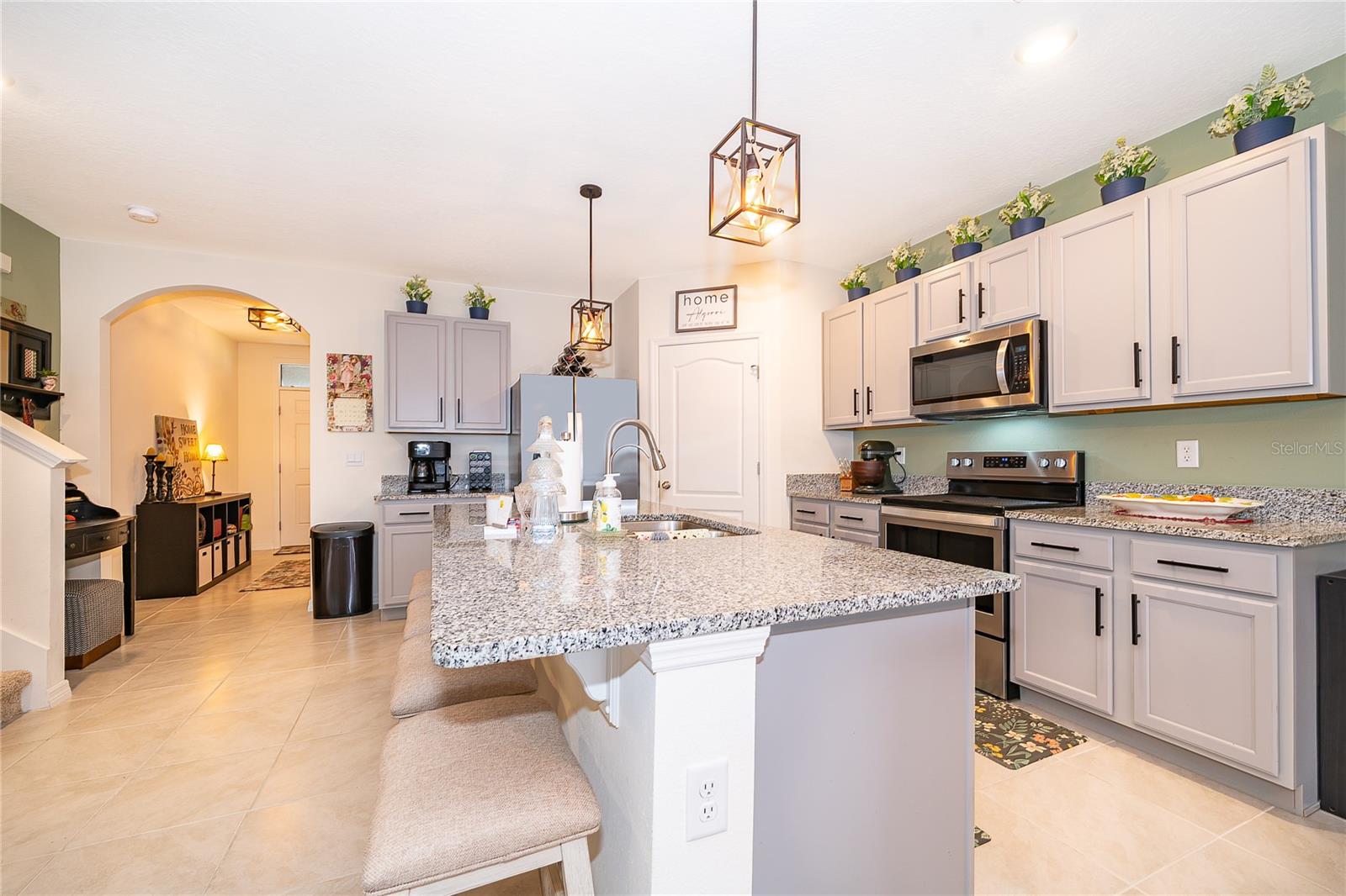 STOP – Before considering new construction, take a look at this 4-years-new waterfront home that already includes the thousands of dollar's worth of upgrades buyers usually have to add themselves: Outside enjoy a fully fenced yard and gutters on entire house, mature and professional upgraded landscaping in front and back yards, a fabulous firepit to enjoy the lake views and a 12x40 screened room with sun shades and fans to enjoy that true Florida living. Inside, appreciate interior lighting upgrades and ceiling fans added to each room as well as modern cabinet handles throughout, and additional closet and laundry room shelving added! Finished interior selections beyond standard builder offerings. This well-maintained 5-bedroom, 3 full-bath home offers a functional and desirable layout, including a main-floor guest bedroom, an open great room plan, loads of kitchen cabinetry and ample walk-in pantry space. The upstairs loft space with closet could be walled in for an ADDITIONAL 6th(!) bedroom. A convenient upstairs laundry! This home offers excellent indoor-outdoor living. Located on Lake Saint Charles, the property provides an oasis like setting with peaceful water views at the back of the community for quiet enjoyment. Truly the best lot in the neighborhood! This very active community has a resort like pool, soccer field, playground and is a great walking neighborhood with ponds around every corner to enjoy Florida's wildlife. Conveniently located 4 miles from I-4 and 15 miles from Disney this home is in a prime location. Y?ou'll be thrilled at how much home you get for your money! Property Features: • Waterfront lot with views of Lake Saint Charles • 5 bedrooms / 3 full baths • Guest bedroom located downstairs Upstairs laundry • Large primary suite • Open great room floor plan • Large screened-in porch • Fully fenced yard