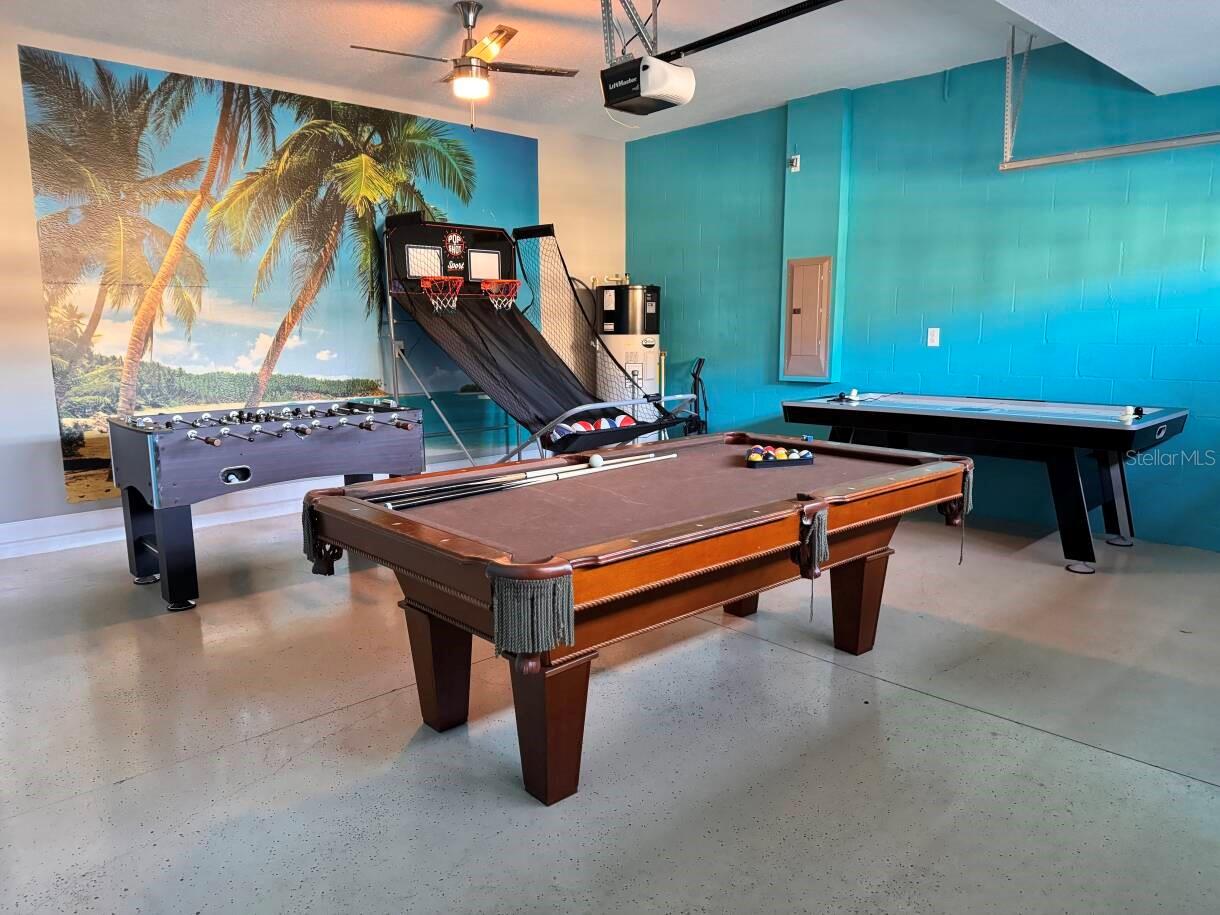 Welcome to this fully furnished and extremely well-maintained Luxury Vacation Home with Private Heated Pool! This stunning property offers a perfect combination for living, vacations, and/or investments; with 6 bedrooms and 6 bathrooms located in the heart of Central Florida’s premier resort community Champions Gate Resort. As you step into this beautiful home, you'll find a fully equipped kitchen with stainless steel appliances, allowing you to prepare delicious meals during your stay. The living room features a Smart TV with cable and a ceiling fan, providing a comfortable space to relax and unwind. The dining room boasts a dining set that can accommodate 8/12 persons, perfect for enjoying meals together. Two master suites and four additionally beautifully designed bedrooms ensure privacy and comfort for your family or guests. Step outside onto the south-facing balcony, with its private heated pool and spa — ideal for fun and relaxation. The garage, converted into a games room, offers fun beyond imagination, where you can enjoy family time with games and fun activities. This resort offers easy access to Disney World, just a 15-minute drive away. The condominium itself is full of amenities, such as a resort-style heated pool with beaches and water slides, a spa, a gym, tennis and volleyball courts, a bar, a games room, a movie theater, 24-hour security with a concierge, and much more. The condominium includes cable TV, internet, garden maintenance, garbage collection, access to the club and amenities. All these just minutes from I-4, fine dining restaurants, shops, supermarkets, gas stations, and Orlando's famous theme parks. If you are looking for property to live in or rent for a Short-Term Vacation, or a long-term investment, this house meets all your needs.