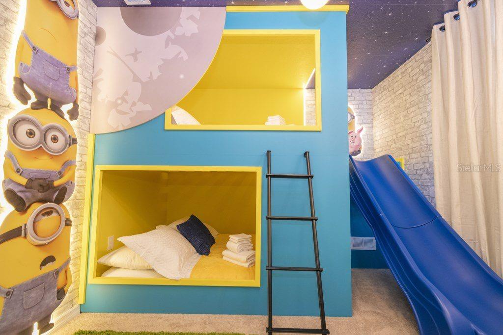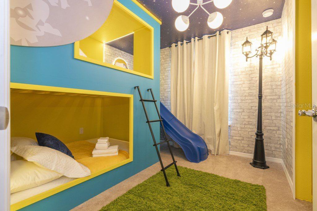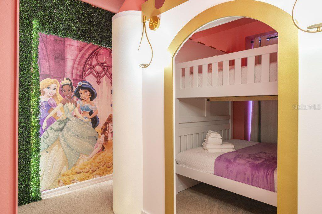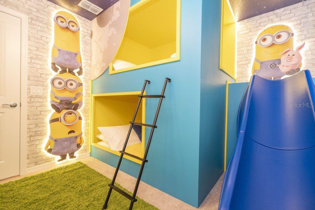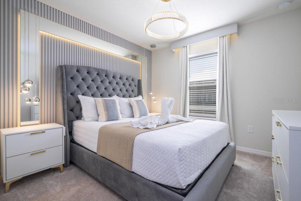 Welcome to this stunning 5BR/4.5BA turnkey home (built in 2023) in the highly desirable Windsor Island Resort. Professionally decorated with popular themed bedrooms designed to boost short-term rental income, this property offers elegant finishes while remaining cozy and inviting. The open-concept layout provides ample space for family and guests, plus a spacious loft ideal for movie nights. Enjoy your private heated pool, perfect for relaxing after a day at the parks. Windsor Island offers resort-style amenities including multiple pools, lazy river, water slides, splash pad, clubhouse with fitness center, arcade, mini golf, sports courts, poolside bar & restaurant, cabanas, fire pit, jacuzzi, and 24-hour gated security. FULLY FURNISHED, turnkey, and Airbnb-ready—ideal for investment or vacation living.