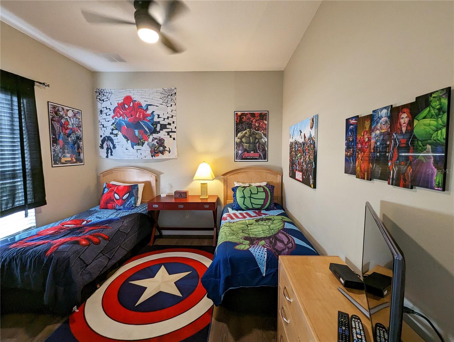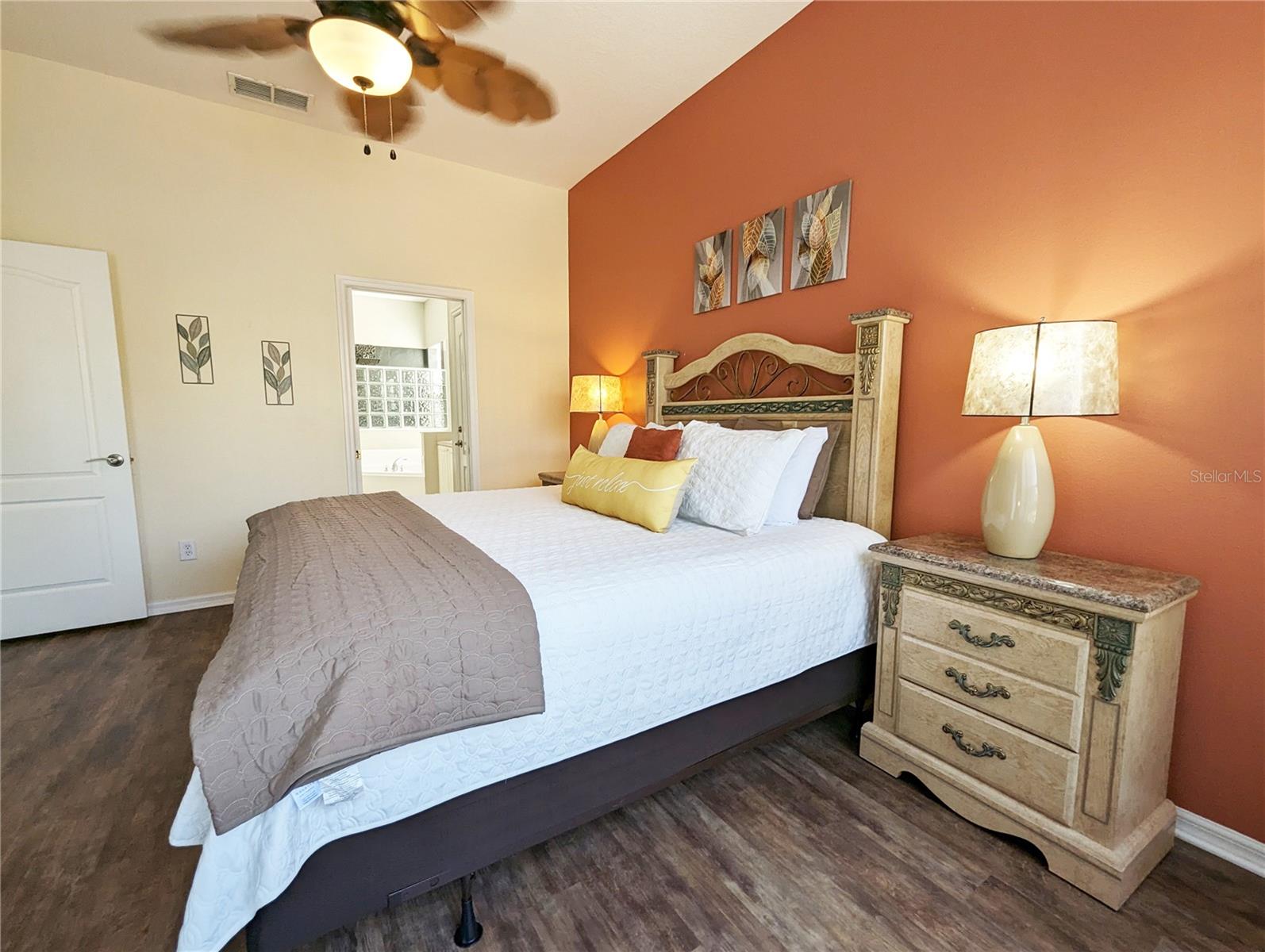 Beautiful 4 bedroom/3 bathroom single-level pool home featuring a large private pool deck with pool and spa, 4 bedrooms (2 with en suite bathrooms), a double garage and driveway for two vehicles. This lovely home comes fully furnished and ready to go. It has updated floors, an open-plan living space with a lounge, formal dining area, a spacious fully fitted kitchen, four bedrooms, three bathrooms, games room in the garage and a fantastic private pool deck. The attractive family room has a vaulted ceiling, sofas, a large Smart TV, ceiling fan and sliding doors out to the spacious pool deck. The stylish kitchen comes with everything you need for at-home dining including newer stainless-steel appliances - fridge freezer, dishwasher, oven and hob, microwave and a reverse osmosis system, plus coffee maker, kettle, toaster, blender, cooking utensils, crockery etc. The formal dining area comfortably seats eight guests. Step through to the king bedroom suite with a king bed, a Smart TV, ceiling fan and a door leading out to the beautiful pool deck. This bedroom has a spacious en suite bathroom complete with two separate vanity sink areas, WC, a double L-shaped bath for two, walk-in closet and an updated large shower. Bedroom 2 is an attractive nautical-themed queen room with a Smart TV, ceiling fan and an en suite bathroom with tub/shower, WC and updated sink vanity. Bedroom 3 has a fun superhero theme and bedroom 4 has a Disney theme. Both rooms have twin beds, Smart TVs and a ceiling fan. The family bathroom has a bath/shower, sink and WC. The screened-in pool deck has a shaded seating/dining area with ceiling fan, loungers, child safety fence and views over the lovely pool and spa. The garage has been converted into a games room featuring table tennis, air hockey table and high-top seating with stools plus lockable storage closet and garage door opener. There is also a laundry room with a washer, dryer and ironing equipment. At the front of this single-level home is a private paved driveway with parking for two vehicles. This home is being sold As Is with all furniture, appliances, linen, kitchen items etc included. It will make the ideal home for long-term residents, as a vacation home or as a short-term rental property - it is a long-standing Super Host home on AirBnB with 42 reviews averaging 4.8 stars. The popular Tuscan Hills community is in a convenient location just 8 miles from Disney World and close to all the grocery stores, restaurants, takeouts and amenities on the US Hwy 27.